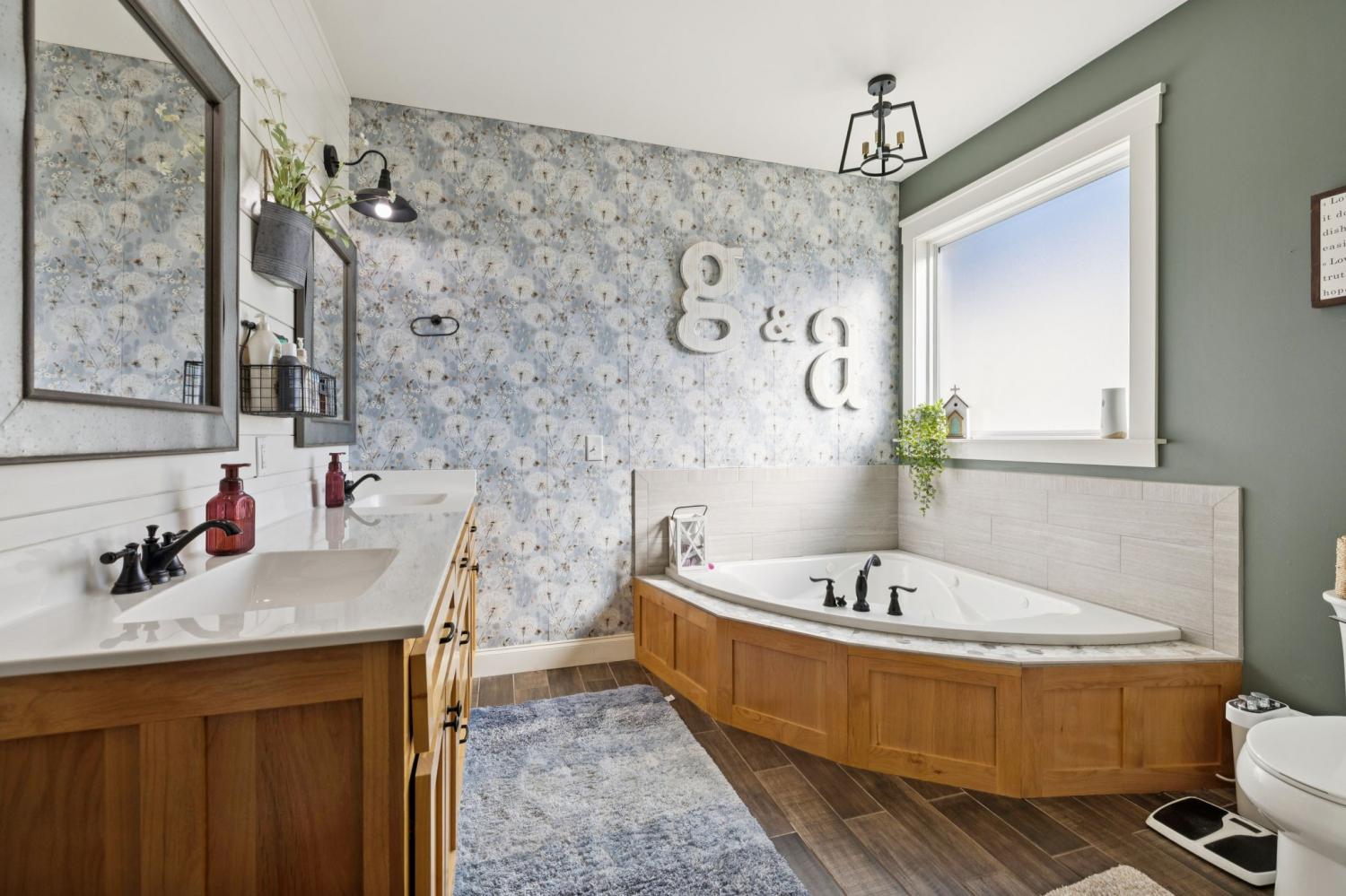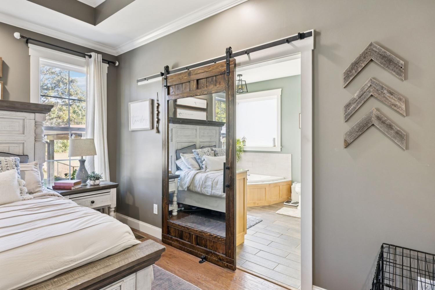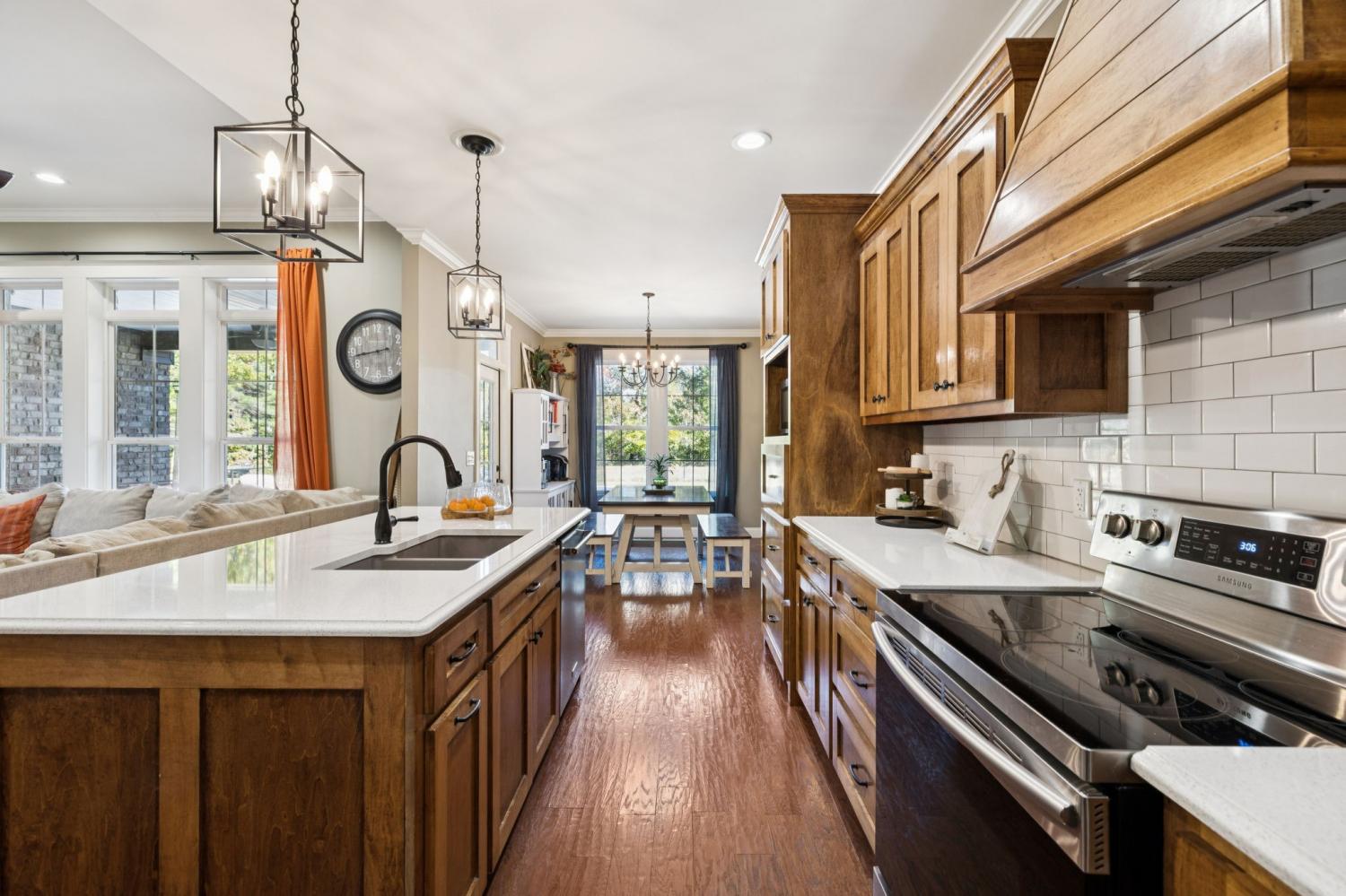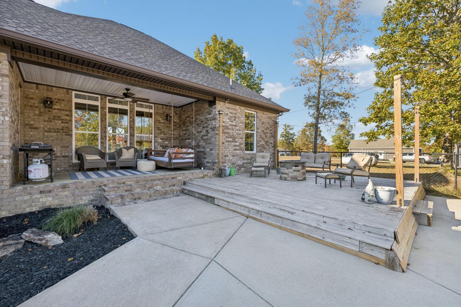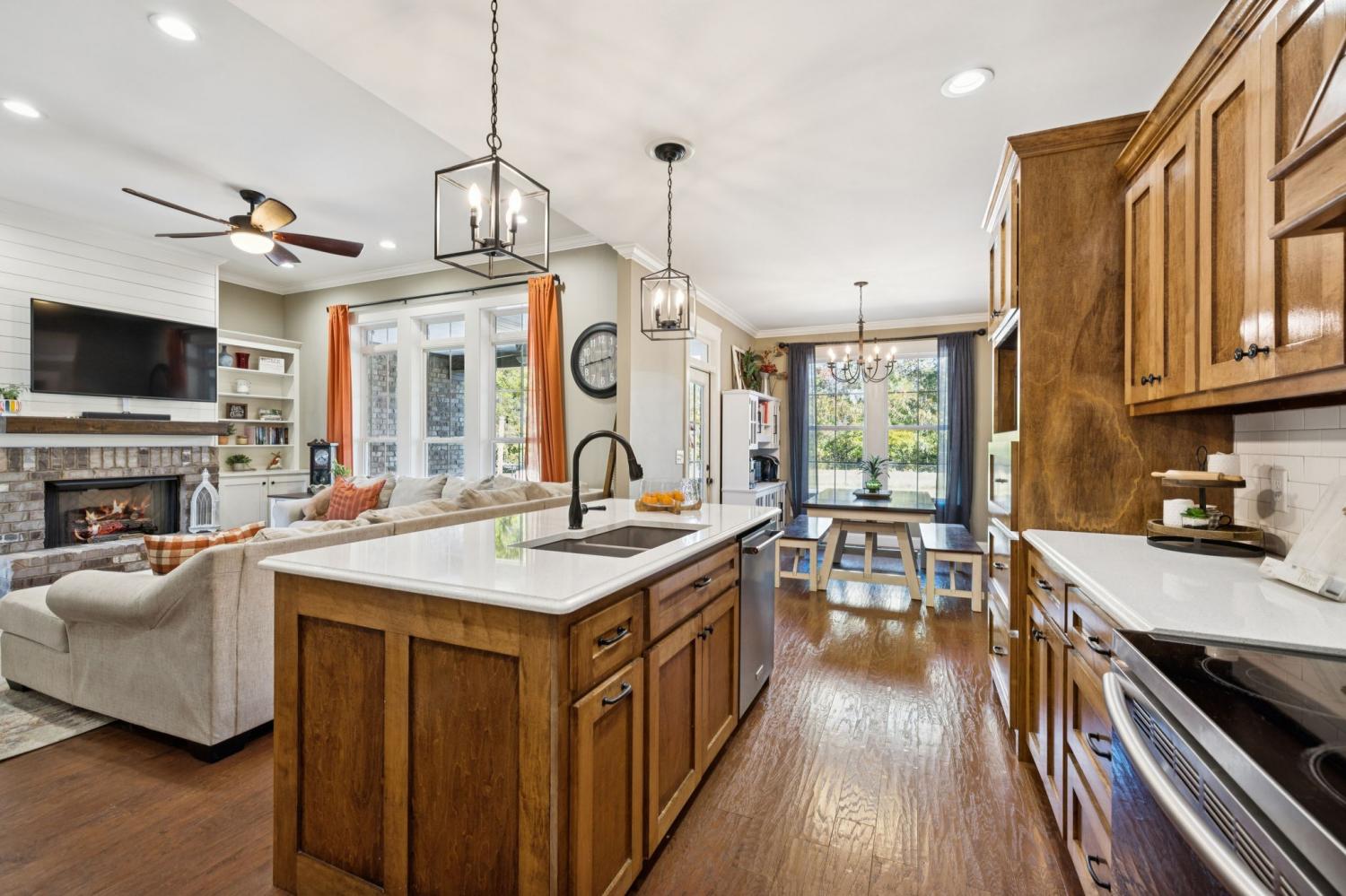 Welcome to a one-of-a-kind custom transitional craftsman home on a 1.43-acre lot in Freedom Crossing. This show-stopper offers the ultimate in lifestyle and entertaining, featuring a sparkling inground pool surrounded by expansive concrete, decking, a pavilion, and a spacious covered back porch. Step through grand double mahogany doors with beveled glass into an inviting foyer, where you'll find a versatile office or flex space with a large closet. Flow into an open-concept living area. The living room is designed to impress, featuring a gas-log fireplace, elegant built-ins, and oversized windows framing stunning views of your private backyard oasis. The kitchen is a masterpiece with custom maple cabinetry, quartz countertops, stainless steel appliances, and a walk-in pantry with floor-to-ceiling storage. Retreat to the luxurious primary suite featuring an indulgent 6x8 rainfall shower, a soaking whirlpool tub, double vanities, and a massive walk-in closet with custom built-ins. Thoughtful touches abound, from a utility room with extra cabinetry to a mudroom with cubbies for easy organization. The backyard oasis steals the show with multi-level entertaining spaces. Plus, a 20x30 shop with water and electricity is ready for all your hobbies or storage needs. This is truly a dream home where every detail is designed for comfort, style, and memorable moments! This home is a testament to thoughtful ownership and continuous care. The sellers invested in numerous upgrades during construction, ensuring both comfort and efficiency for years to come. From a tankless gas water heater and energy-saving spray foam insulation to durable PEX plumbing, every detail reflects their commitment to quality. They maintain the home by having it professionally sprayed twice a year for pests and scheduling bi-annual HVAC servicing.