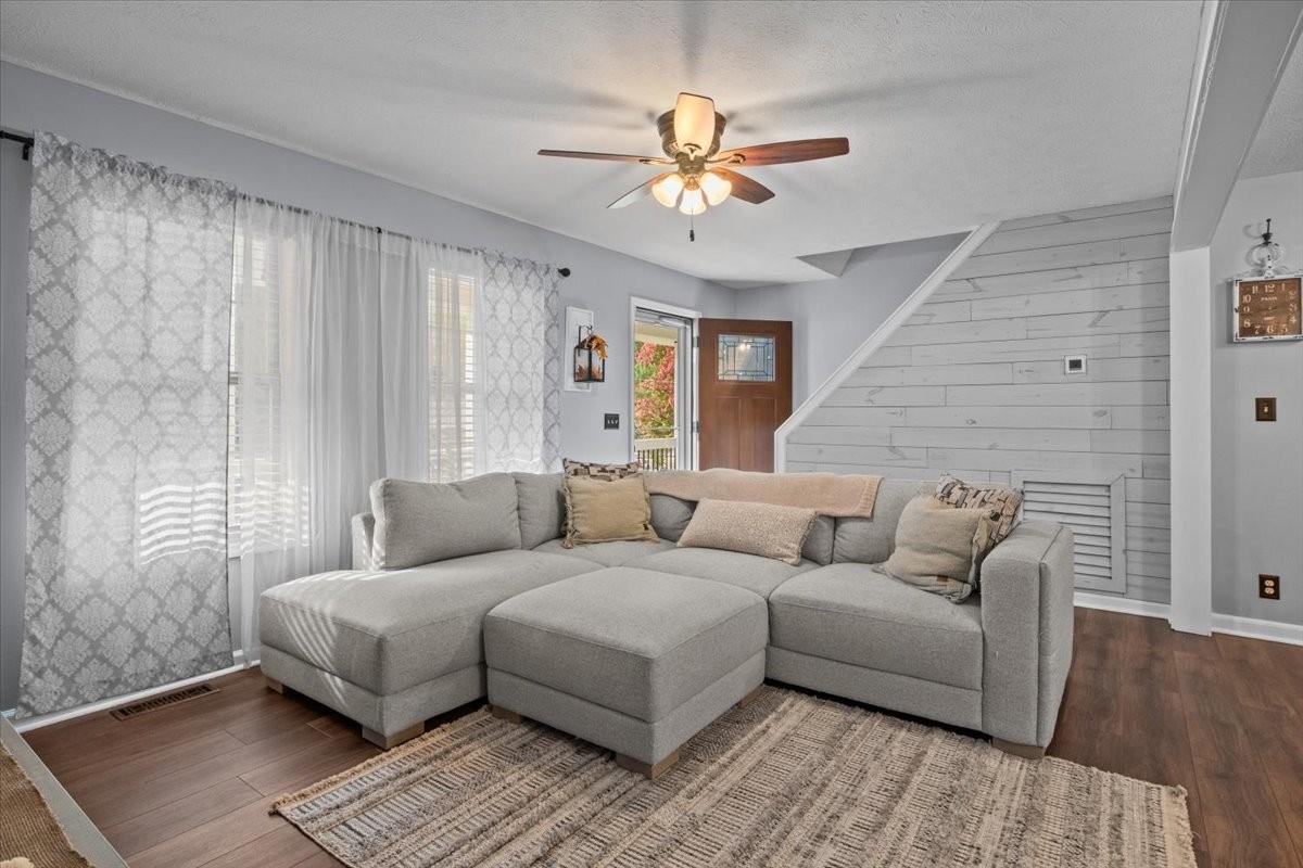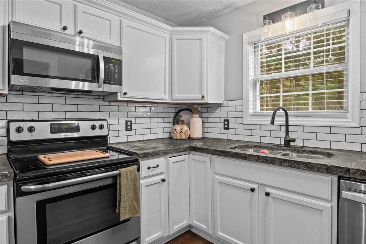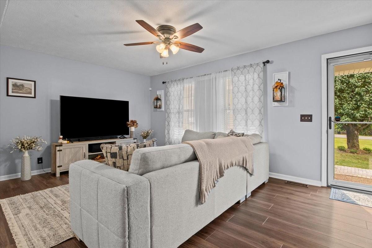 Welcome to 5790 Washer Road in Lyles, Tennessee. This inviting three-bedroom, two-bath home offers 1,325 square feet of comfortable living space, perfectly situated on two peaceful acres. The property provides a blend of privacy and convenience, ideal for those seeking a quiet country lifestyle with easy access to nearby amenities. Inside, you’ll find a functional layout with spacious rooms, modern finishes, and plenty of natural light throughout. The kitchen features abundant cabinetry, concrete countertops with a granite appearance, a stylish tile backsplash, and stainless steel appliances. Beautiful new hardwood flooring runs throughout the home, complemented by remodeled bathrooms, a newer water heater, and a new vapor barrier beneath the house. The roof and HVAC system are each approximately six years old, ensuring comfort and efficiency. Exterior upgrades include new insulated siding, new fascia, soffit, and five-inch gutters installed in 2024. The landscaping is enhanced with irrigation for all plants and flower beds, controlled by convenient timers. Additional improvements include a new roof and electric service for the shed (added in 2025) and a newly built, screened-in porch completed in August 2025. This well-maintained property offers modern updates, thoughtful details, and serene surroundings — a perfect place to call home in the heart of Tennessee.