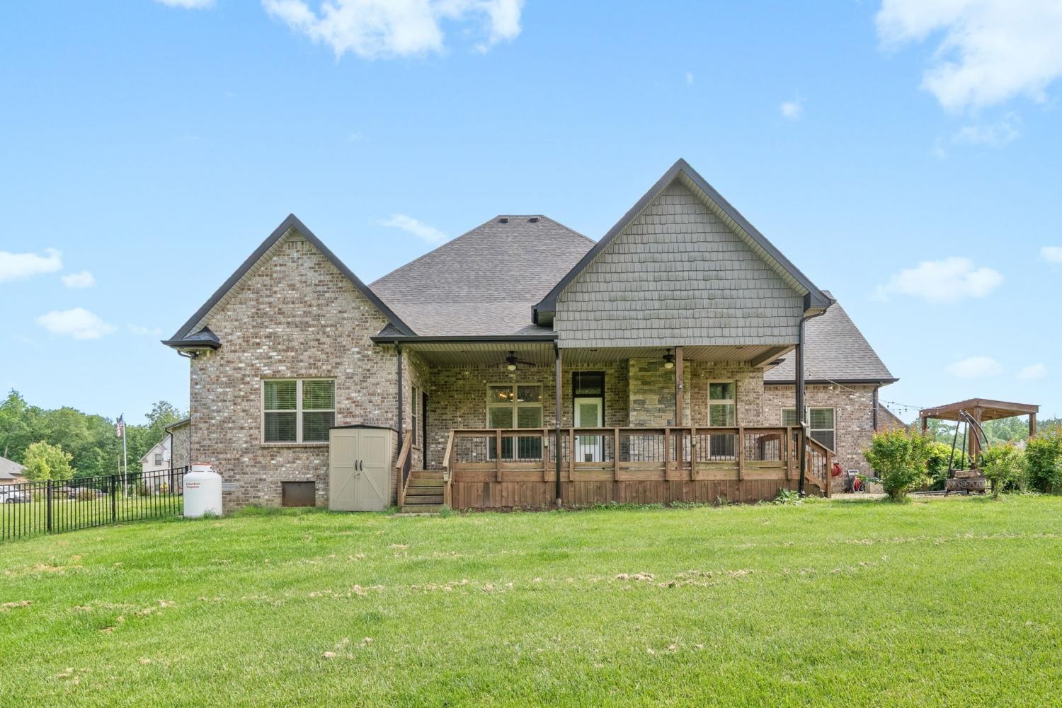 **Offering ONE YEAR HOME WARRANTY!! Freshly painted! NO HOA or CITY TAXES!! ***VA Assumable for Veterans at 3.875%!!*** If you have been looking for your DREAM home, right outside town, on almost 2 ACRES of land, this beautiful BRICK RANCH style home is it! This home features 3 main floor bedrooms, 3.5 baths, 3 car garage, and 2 additional FLEX ROOMS (one being used as a 4TH BEDROOM, and one being used as an OFFICE), extra large utility/laundry room (on main floor), PLUS a large BONUS room connected to a Jack n' Jill FULL bathroom, perfect for entertaining or as guest suite. You will be impressed with the inviting entry, amazing CURB APPEAL, extra tall ceilings, solid WOOD FLOORS, fireplace with stone accents, and open kitchen. Kitchen has stainless steel appliances, granite counter tops, and so much cabinet space. The living room is open with light streaming in, adding brightness and WARMTH to the space. All bedrooms have access to a full bathroom, another amazing perk! The backyard has a beautiful covered deck walking down into a stone patio perfect for a morning coffee on the swing or a fire pit in the evening. The backyard is fenced in, but also extends past the fenced area for even more space! Don't forget to check out the VIDEO walkthrough! Buyer and buyers agent to verify all pertinent information.