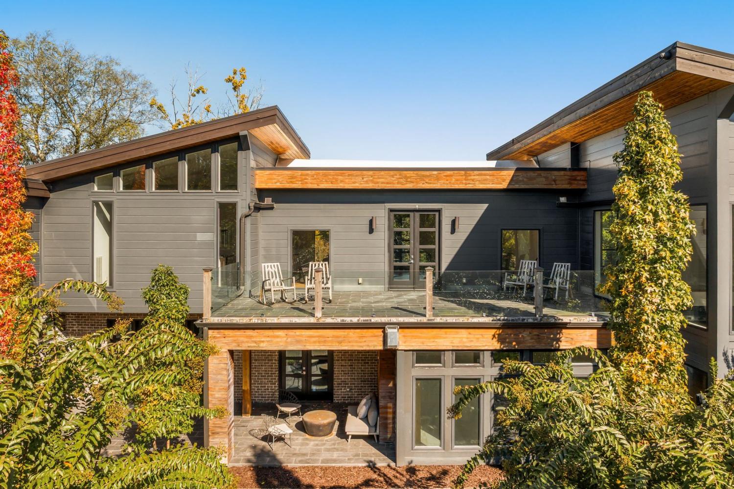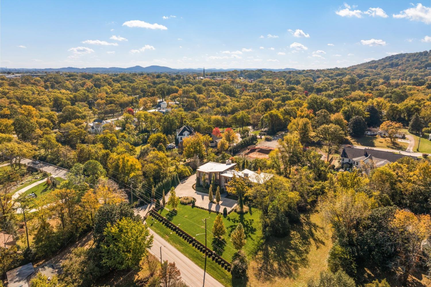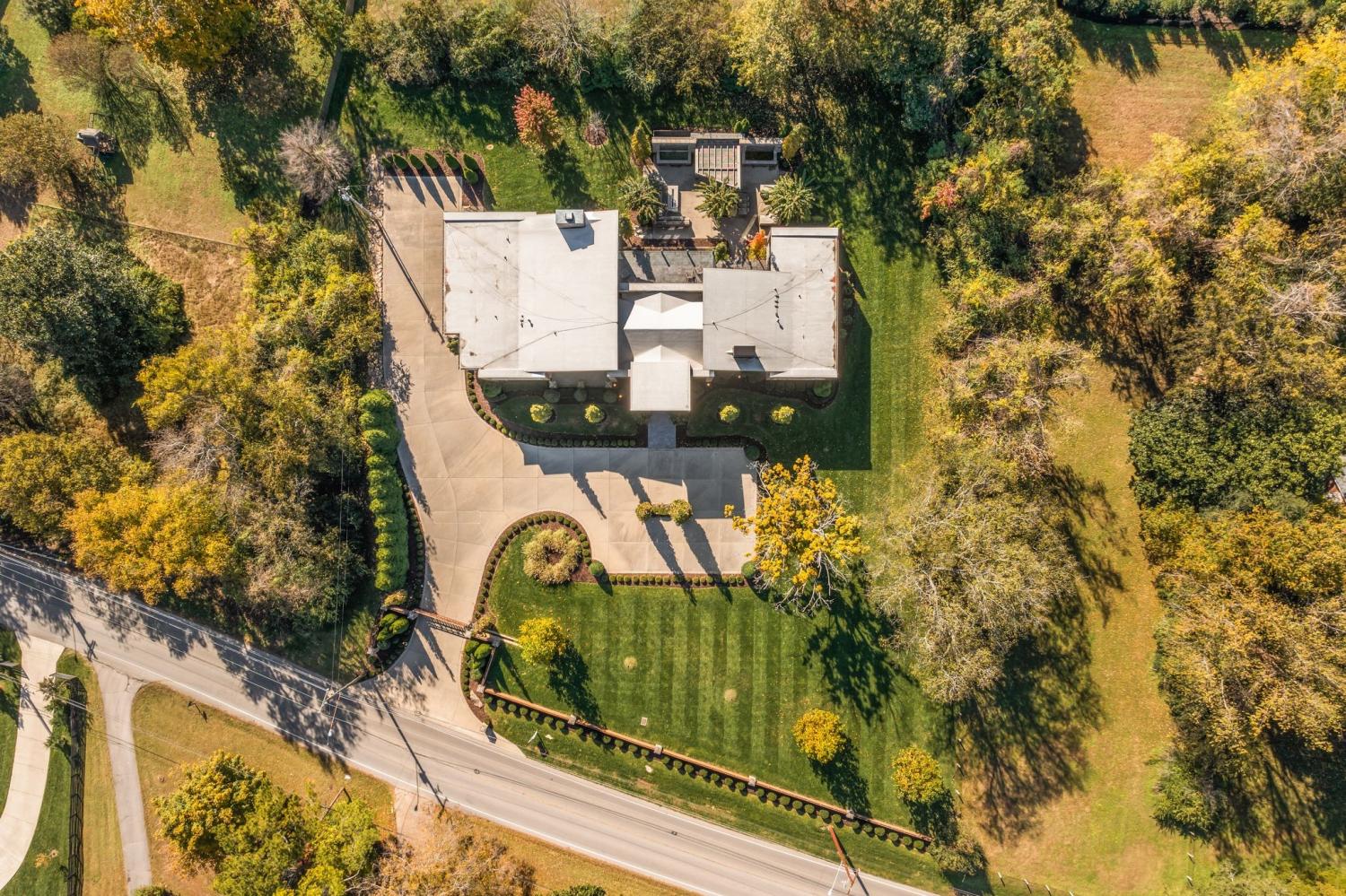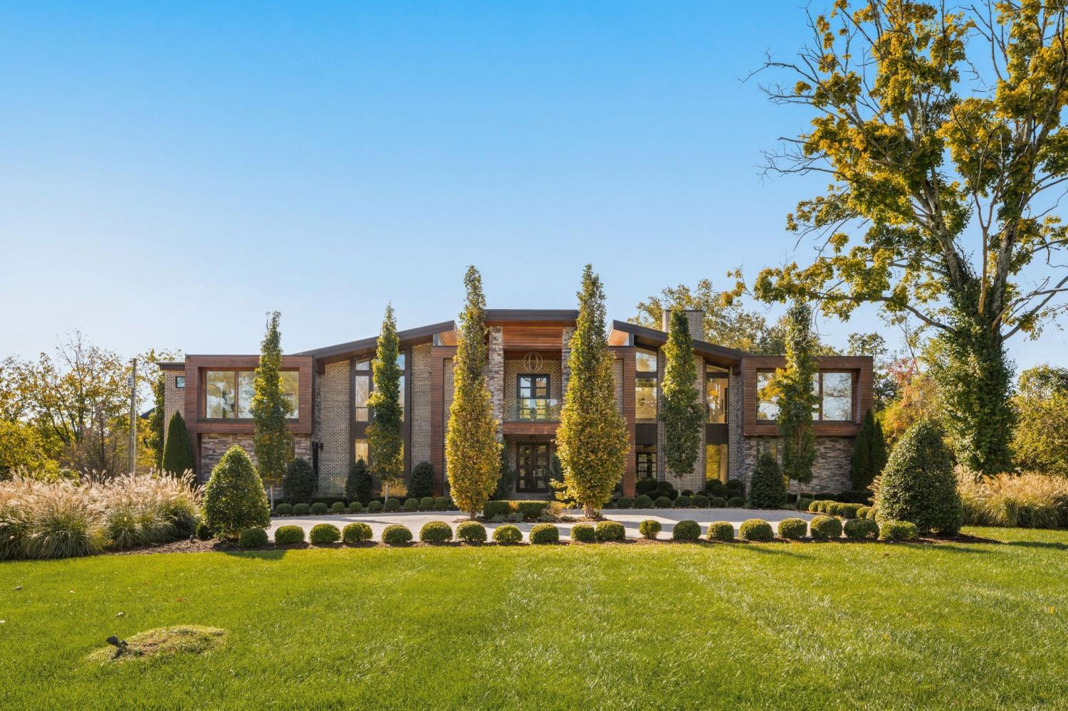 Warm contemporary architecture with a mountain-luxury feel awaits at this privately gated 1-acre estate in prestigious Oak Hill. Just 15 minutes from downtown Nashville and the airport, and 10 minutes from Green Hills, it offers convenience without sacrificing privacy. The exterior showcases brick, wood and stone siding, lush new landscaping, mature trees and incredible entertaining spaces with plenty of room for a pool. The backyard features multiple water elements, a covered bar, two wet bars, a custom fire pit and seating for groups large or small—all overseen by a spacious second-floor terrace. Inside, a marble foyer opens to a living room with soaring beamed ceilings, the first of three fireplaces, and walls of windows filling the home with natural light. The chef’s kitchen boasts top-end appliances, abundant storage, a breakfast nook and its own wet bar with wine cooler and ice machine. The primary suite, located on the main level, is a retreat with floor-to-ceiling windows, a deep walk-in closet and spa-like bath wrapped in luxury tile with a large shower and soaking tub. The basement offers your own speakeasy and wine cellar, while three additional lounges across the main and upper levels each feature a bar or fireplace, plus a sunroom for indoor/outdoor enjoyment. The laundry includes a dog wash, and a home gym with mirrored walls and panoramic views fulfills any fitness needs. A 3-car garage and $300k security system ensure peace of mind. Furnished optional. Home has some maintenance needs due to seller not living in it for a while (Should be quick repairs. Contact listing agent for details).
