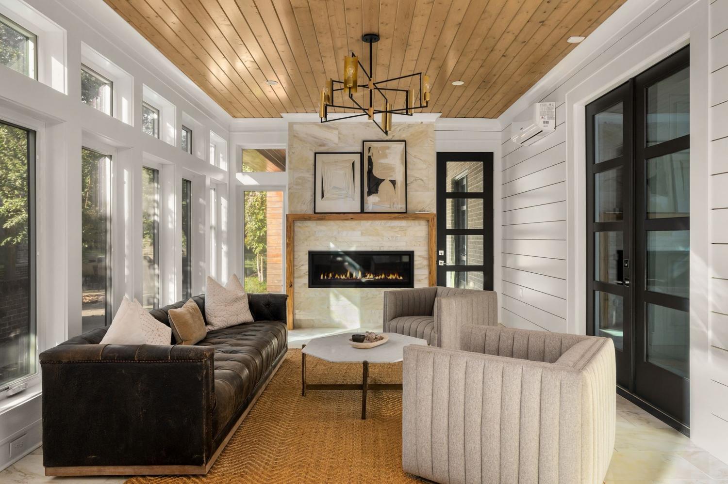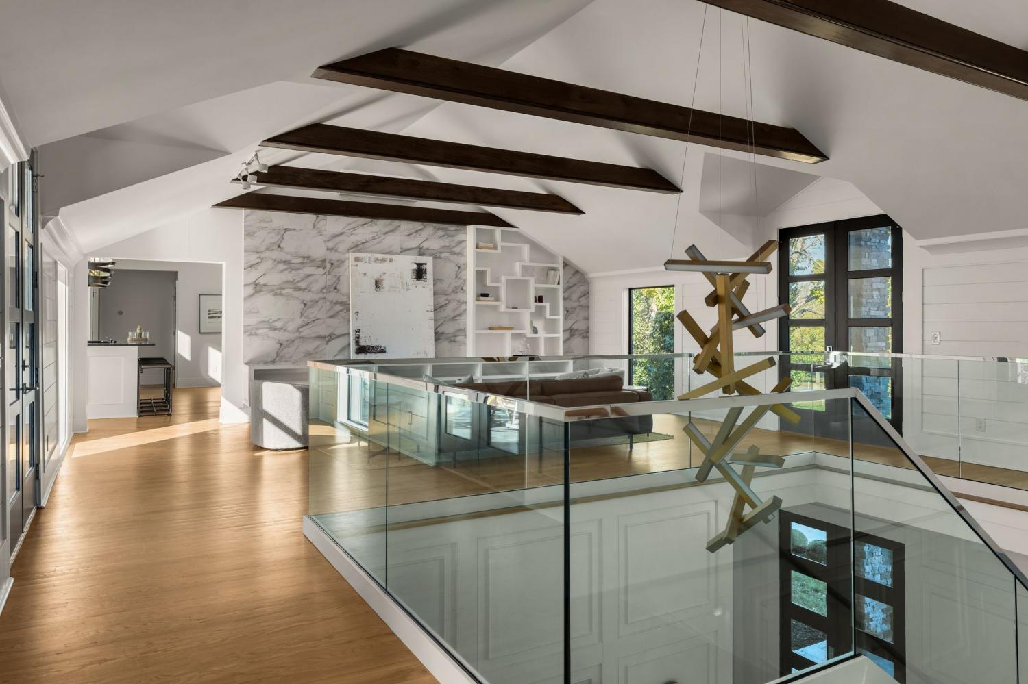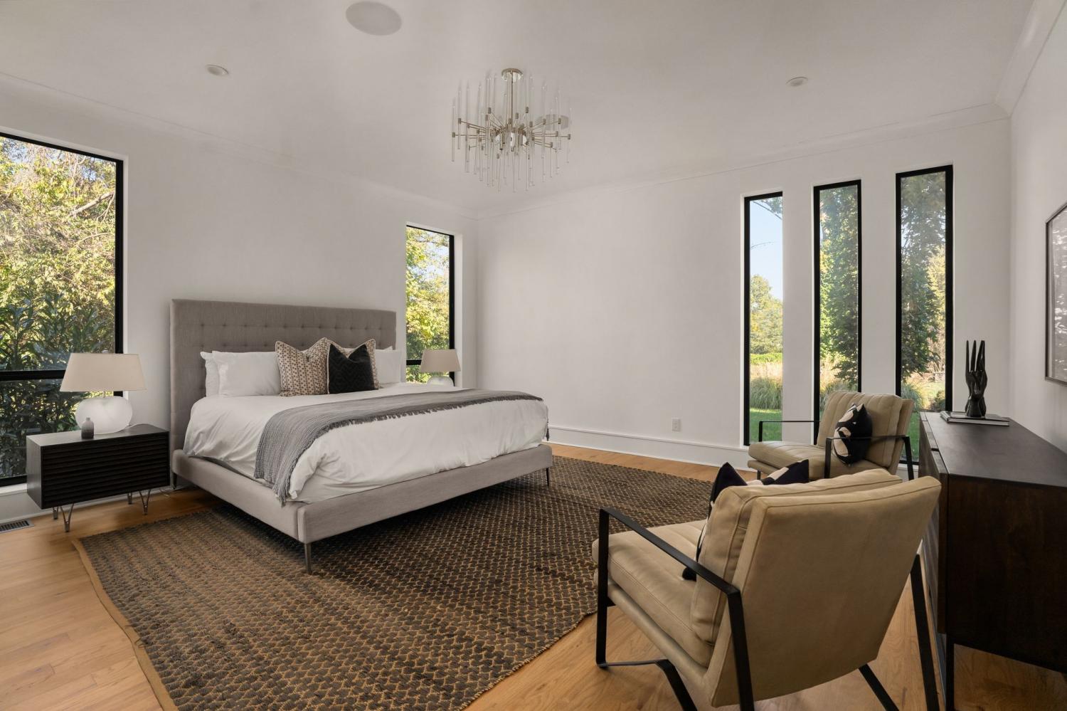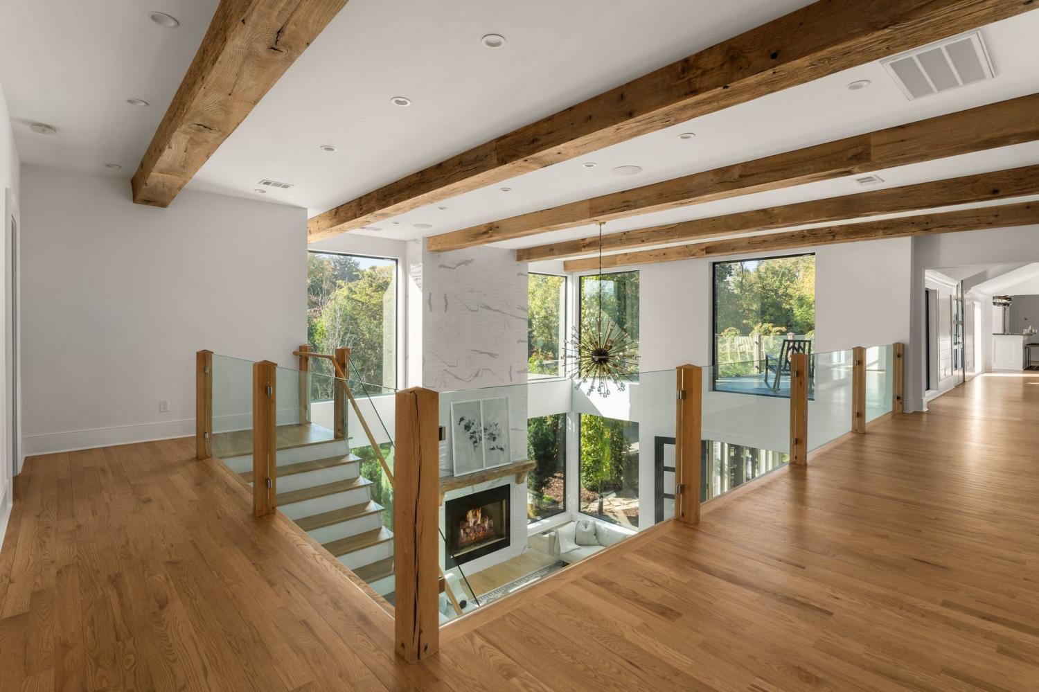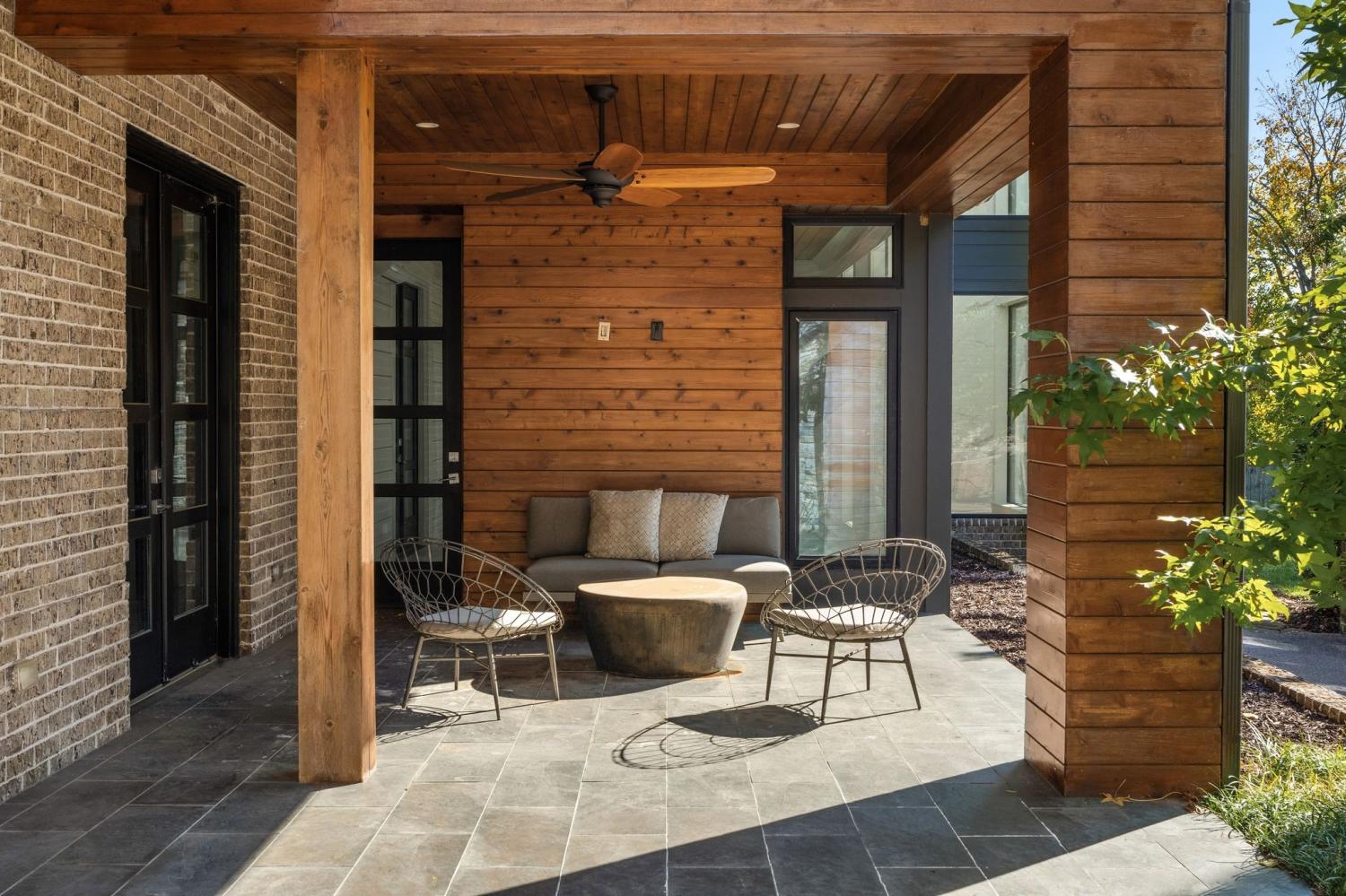 Warm contemporary architecture with a mountain-luxury feel awaits at this privately gated 1-acre estate in prestigious Oak Hill. Just 15 minutes from downtown Nashville and the airport, and 10 minutes from Green Hills, it offers convenience without sacrificing privacy. The exterior showcases brick, wood and stone siding, lush new landscaping, mature trees and incredible entertaining spaces with plenty of room for a pool. The backyard features multiple water elements, a covered bar, two wet bars, a custom fire pit and seating for groups large or small—all overseen by a spacious second-floor terrace. Inside, a marble foyer opens to a living room with soaring beamed ceilings, the first of three fireplaces, and walls of windows filling the home with natural light. The chef’s kitchen boasts top-end appliances, abundant storage, a breakfast nook and its own wet bar with wine cooler and ice machine. The primary suite, located on the main level, is a retreat with floor-to-ceiling windows, a deep walk-in closet and spa-like bath wrapped in luxury tile with a large shower and soaking tub. The basement offers your own speakeasy and wine cellar, while three additional lounges across the main and upper levels each feature a bar or fireplace, plus a sunroom for indoor/outdoor enjoyment. The laundry includes a dog wash, and a home gym with mirrored walls and panoramic views fulfills any fitness needs. A 3-car garage and $300k security system ensure peace of mind. Furnished optional. Home has some maintenance needs due to seller not living in it for a while (Should be quick repairs. Contact listing agent for details).