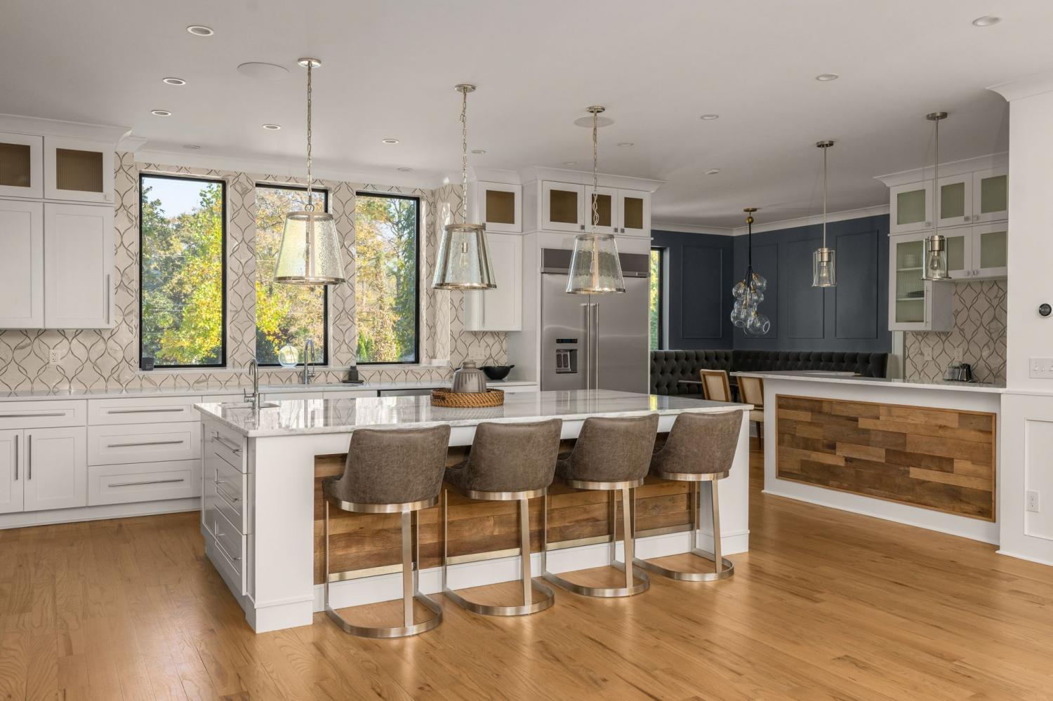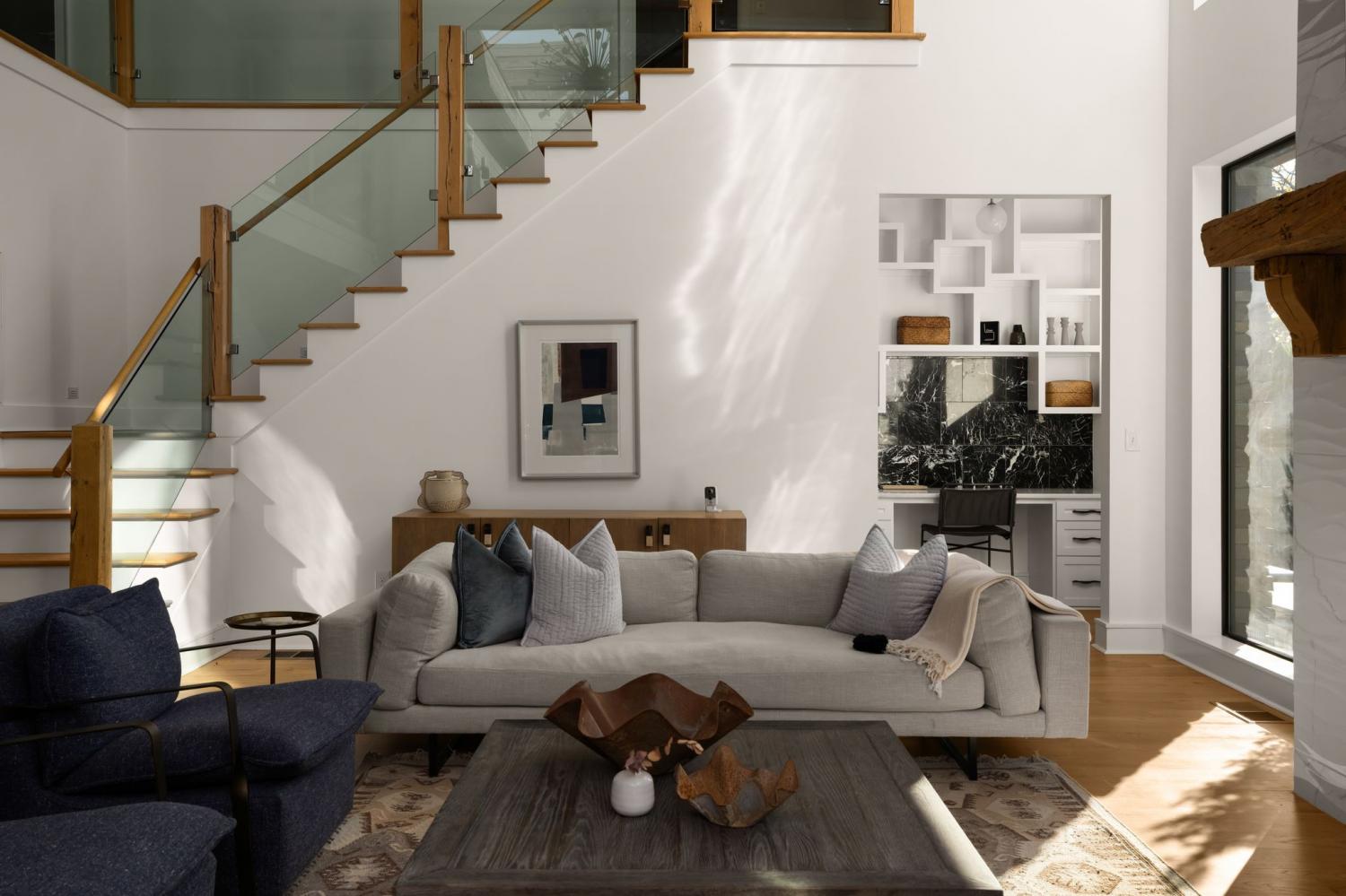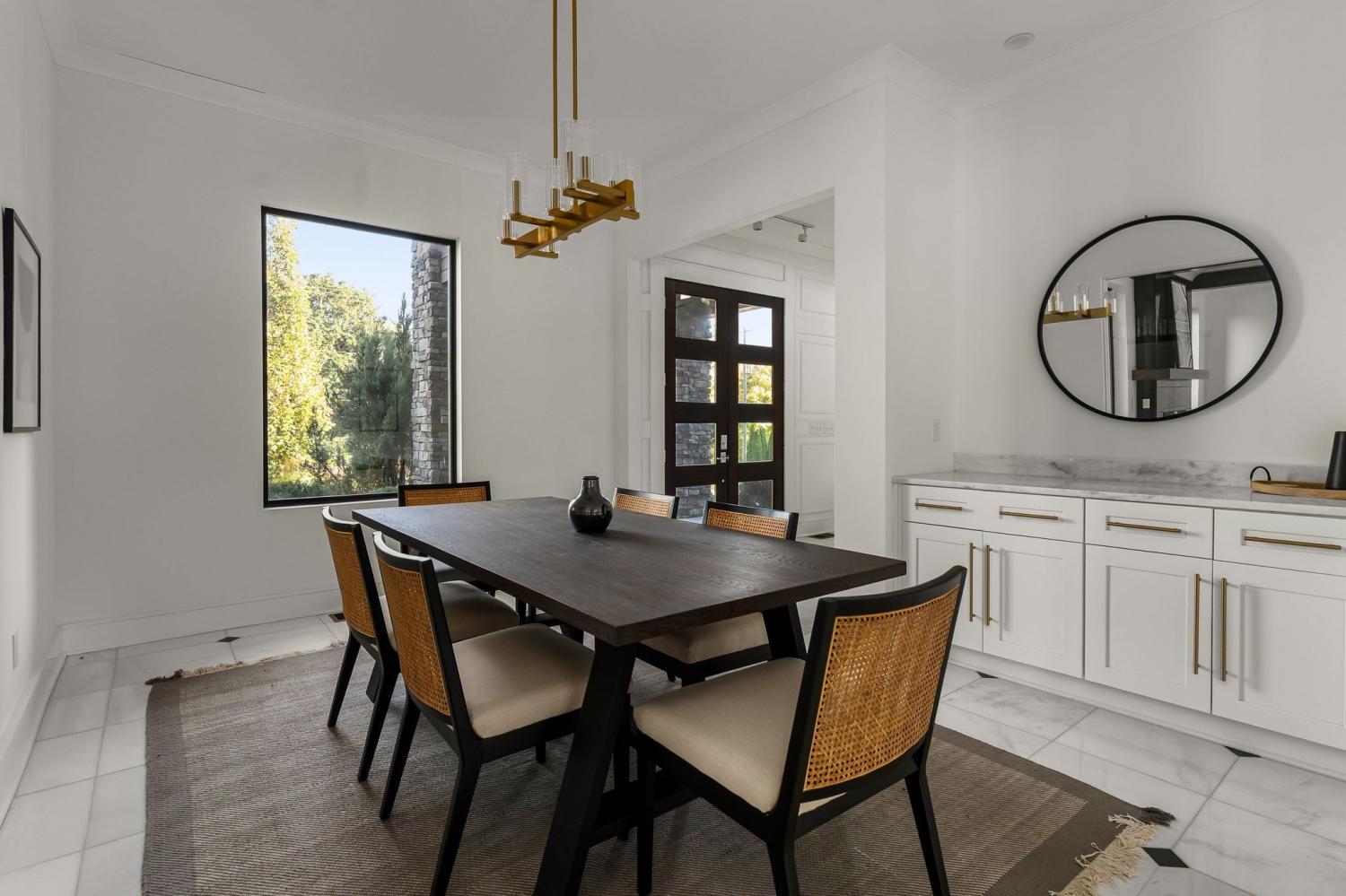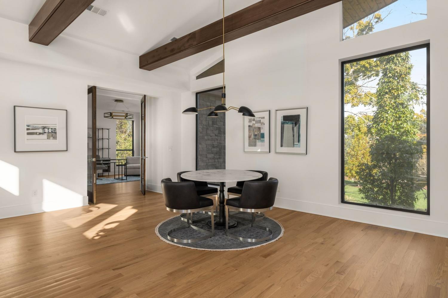 Warm contemporary architecture with a mountain-luxury feel awaits at this privately gated 1-acre estate in prestigious Oak Hill. Just 15 minutes from downtown Nashville and the airport, and 10 minutes from Green Hills, it offers convenience without sacrificing privacy. The exterior showcases brick, wood and stone siding, lush new landscaping, mature trees and incredible entertaining spaces with plenty of room for a pool. The backyard features multiple water elements, a covered bar, two wet bars, a custom fire pit and seating for groups large or small—all overseen by a spacious second-floor terrace. Inside, a marble foyer opens to a living room with soaring beamed ceilings, the first of three fireplaces, and walls of windows filling the home with natural light. The chef’s kitchen boasts top-end appliances, abundant storage, a breakfast nook and its own wet bar with wine cooler and ice machine. The primary suite, located on the main level, is a retreat with floor-to-ceiling windows, a deep walk-in closet and spa-like bath wrapped in luxury tile with a large shower and soaking tub. The basement offers your own speakeasy and wine cellar, while three additional lounges across the main and upper levels each feature a bar or fireplace, plus a sunroom for indoor/outdoor enjoyment. The laundry includes a dog wash, and a home gym with mirrored walls and panoramic views fulfills any fitness needs. A 3-car garage and $300k security system ensure peace of mind. Furnished optional. Home has some maintenance needs due to seller not living in it for a while (Should be quick repairs. Contact listing agent for details).