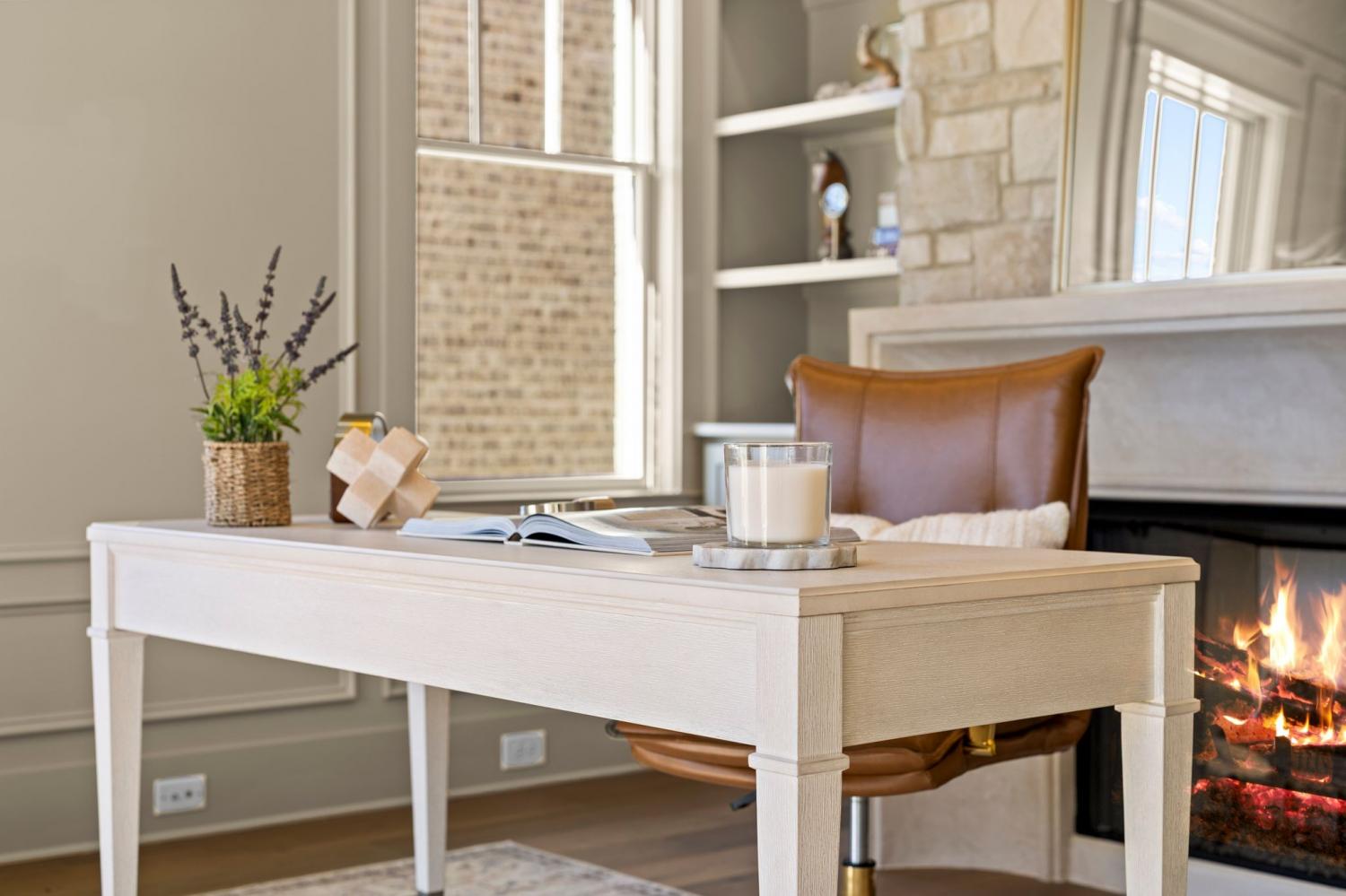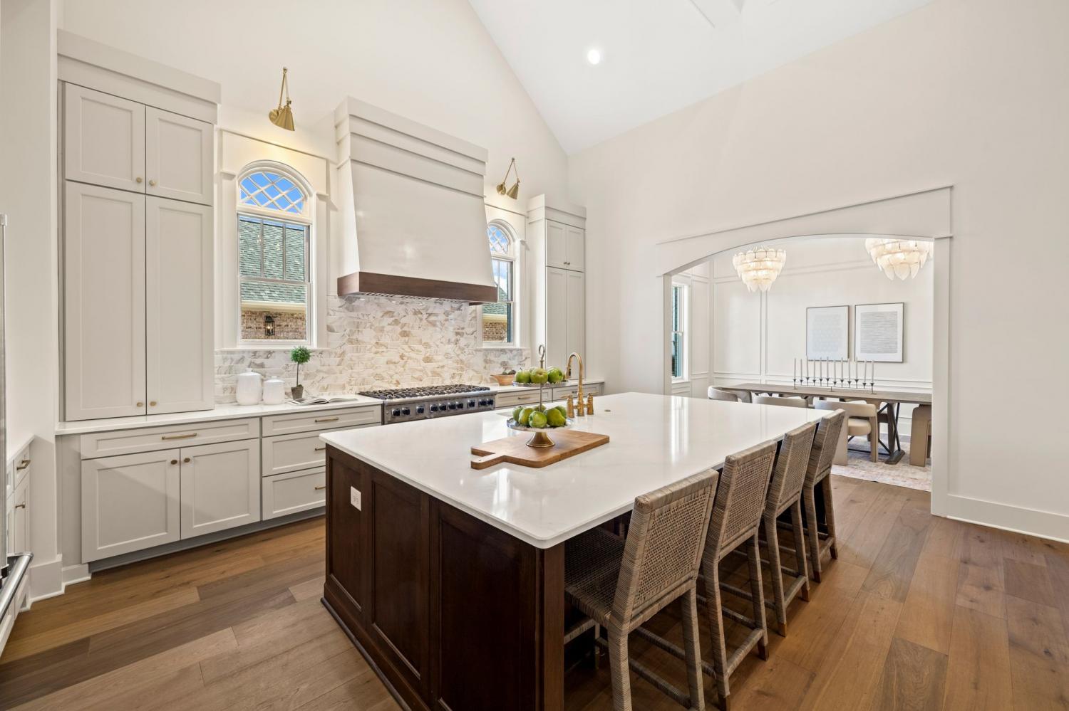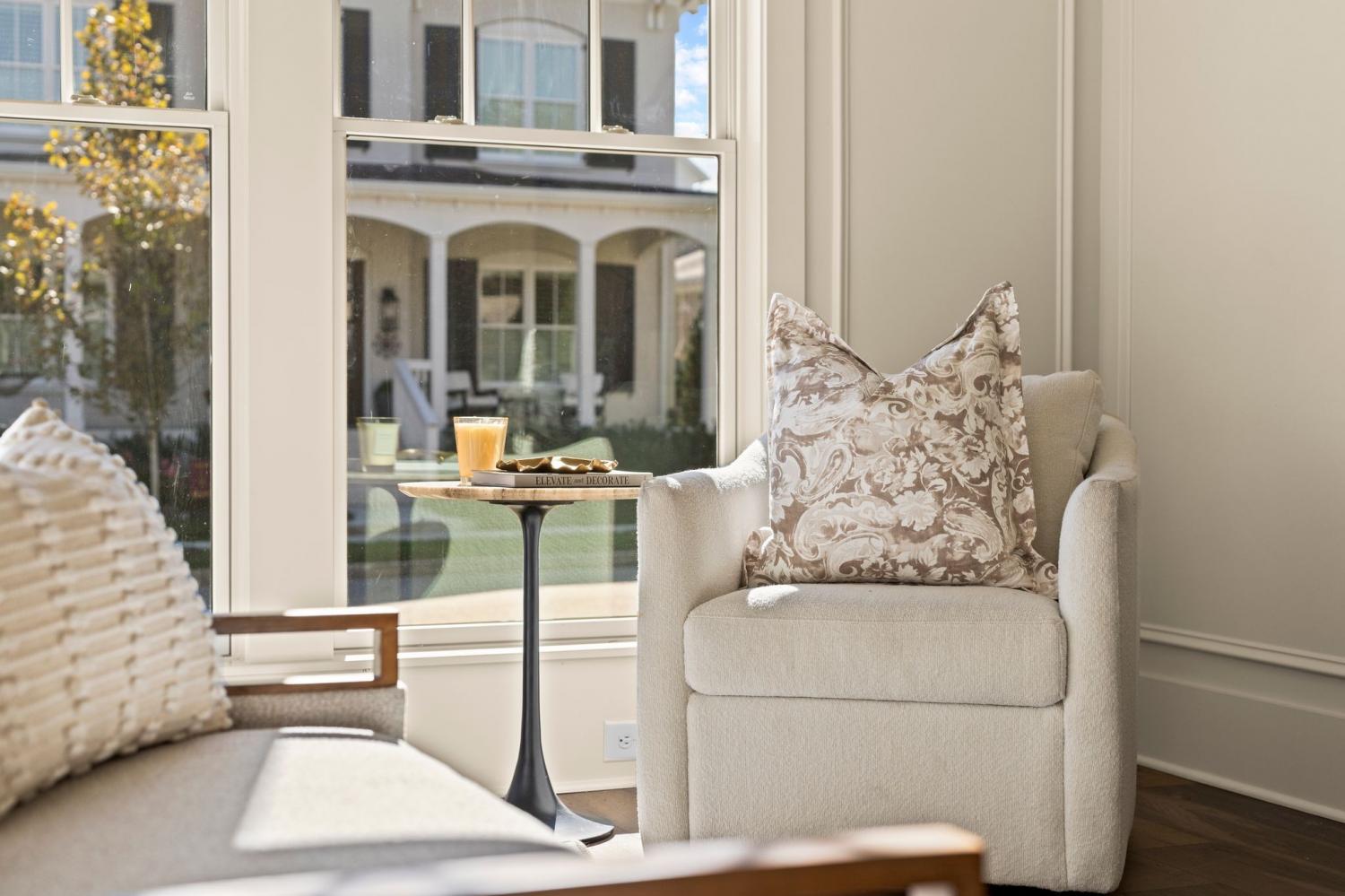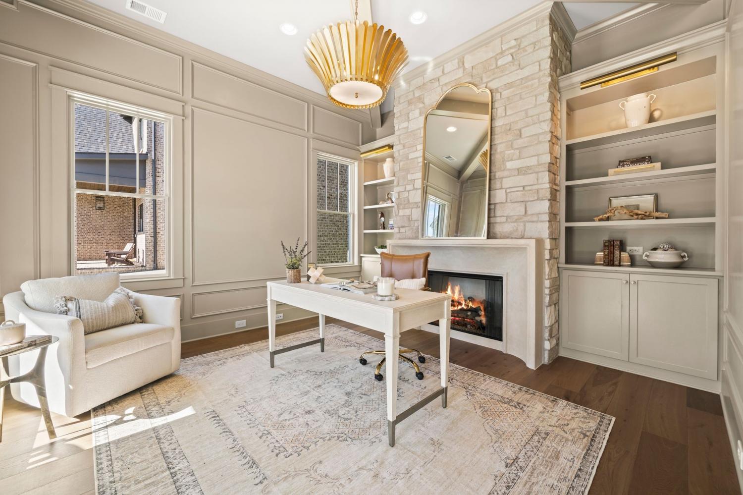 This DeFatta Custom home embodies true Southern living—where classic charm blends seamlessly with modern luxury. The historic-inspired green-gray exterior, accented with detailed windows and inviting architecture, captures the warmth and character of a vintage home while offering all the comforts of today. Perfectly situated on a corner lot, it is one of the few homes to feature both a welcoming front porch and a private backyard, paired with a side-entry three-car garage. Step inside to find an enclosed office with a stunning stone fireplace, and a main-level primary suite with vaulted ceilings and a spa-like bathroom featuring a soaking tub, walk-in shower, and dual vanities. A secondary bedroom with its own en suite bath and a formal dining room with custom trim add to the thoughtful design. The great room, with its soaring ceilings and stone fireplace, flows effortlessly into the covered porch, creating the perfect setting for indoor/outdoor living. The chef’s kitchen boasts Viking appliances, a hidden pantry with beverage refrigerator and microwave, and dedicated prep counters designed to keep everyday essentials neatly tucked away. Upstairs, a spacious loft anchors two bedrooms, each with a private bath. Over the garage, the bonus room offers the ultimate entertaining space with built-ins, a beverage center, fireplace, and balcony overlooking lush green views. Located in Stephens Valley, a community rich with southern charm and lifestyle amenities, residents enjoy pools, tennis and pickleball courts, basketball, and more. Soon, the town square will introduce over 110,000 square feet of retail and commercial space, adding even more vibrancy to this sought-after neighborhood.