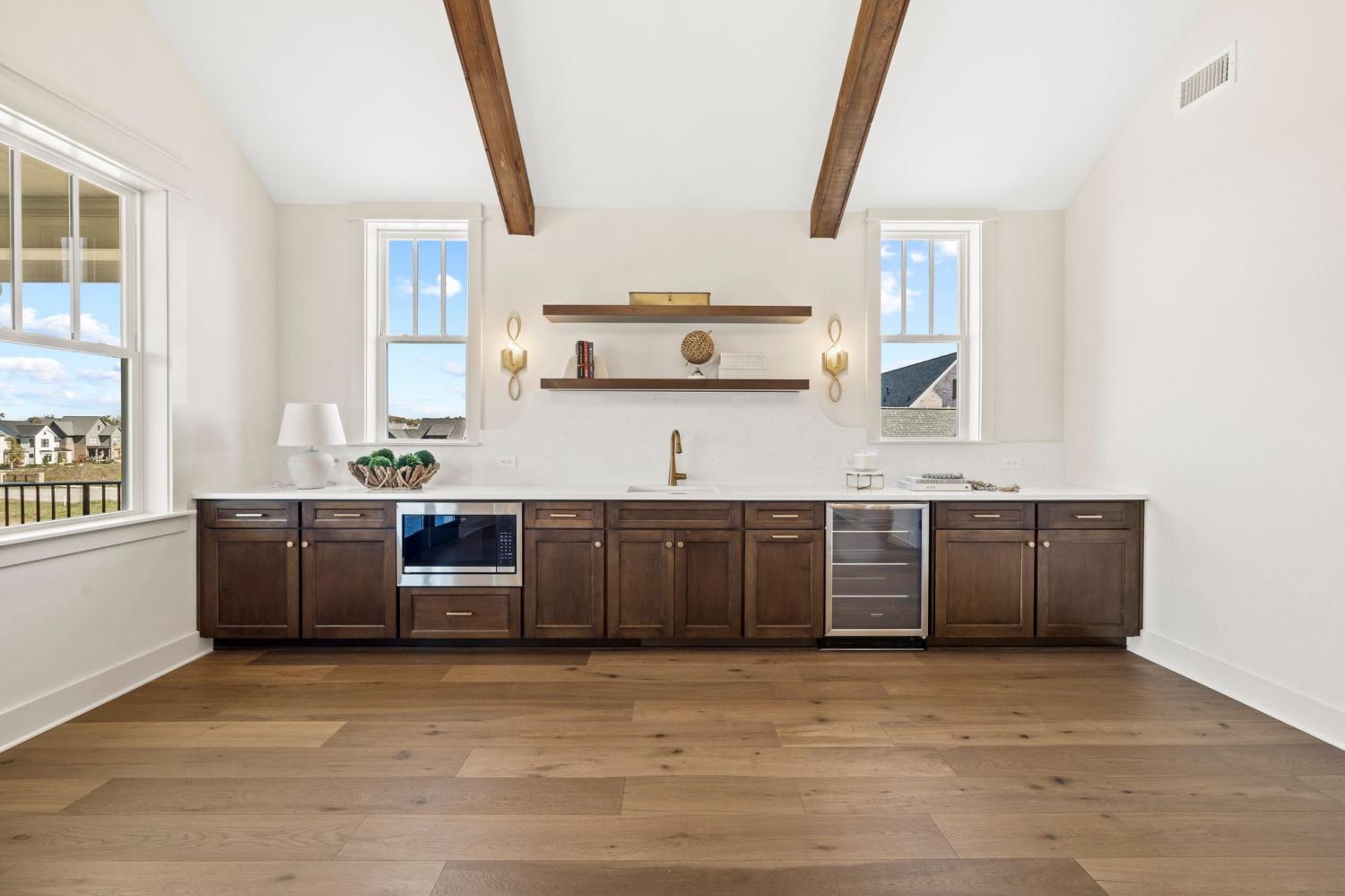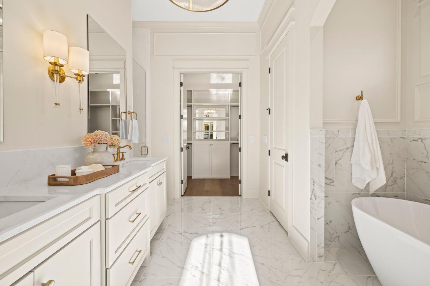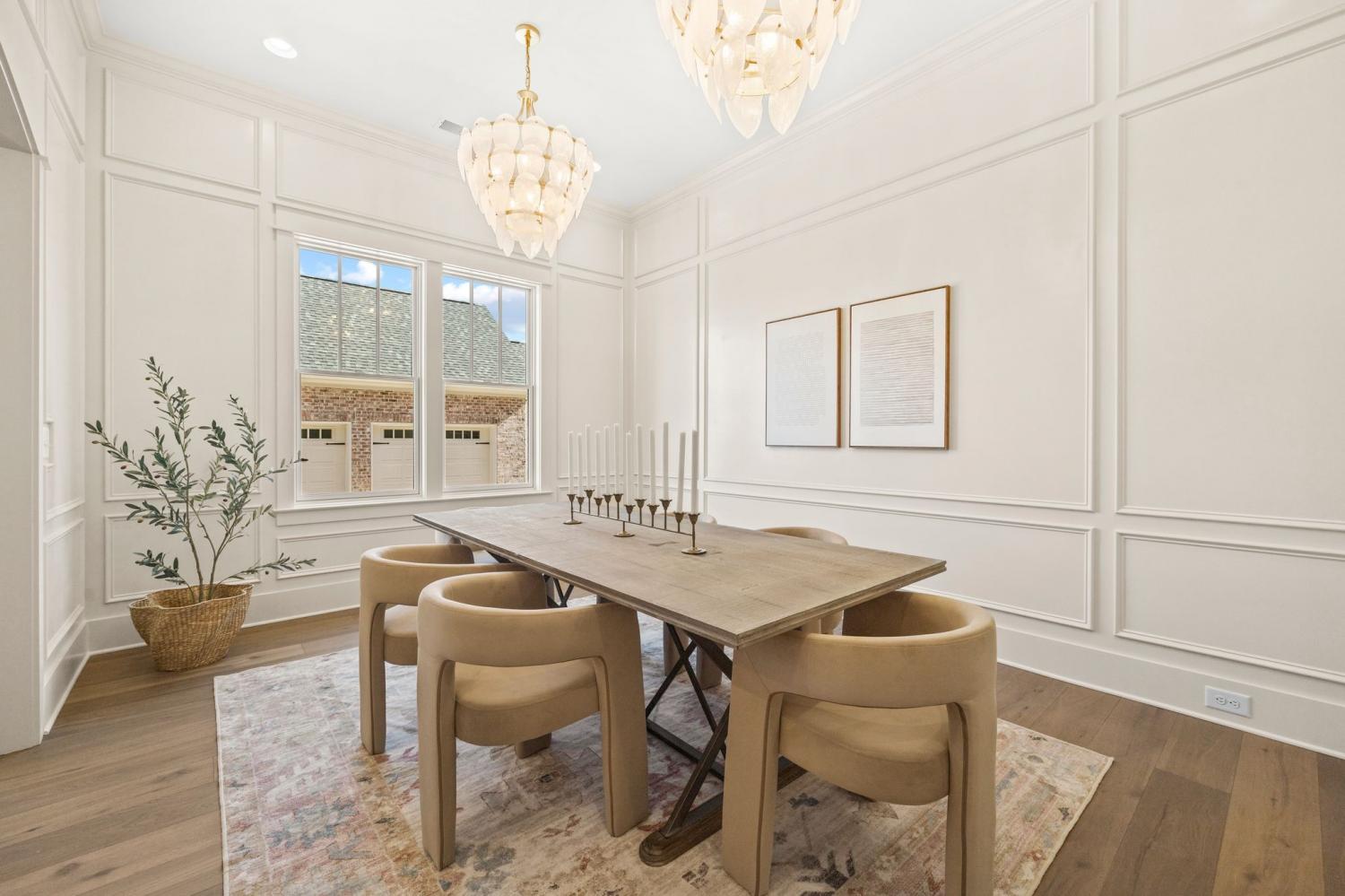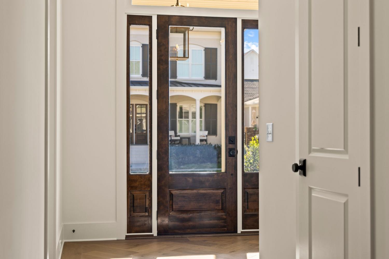 This DeFatta Custom home embodies true Southern living—where classic charm blends seamlessly with modern luxury. The historic-inspired green-gray exterior, accented with detailed windows and inviting architecture, captures the warmth and character of a vintage home while offering all the comforts of today. Perfectly situated on a corner lot, it is one of the few homes to feature both a welcoming front porch and a private backyard, paired with a side-entry three-car garage. Step inside to find an enclosed office with a stunning stone fireplace, and a main-level primary suite with vaulted ceilings and a spa-like bathroom featuring a soaking tub, walk-in shower, and dual vanities. A secondary bedroom with its own en suite bath and a formal dining room with custom trim add to the thoughtful design. The great room, with its soaring ceilings and stone fireplace, flows effortlessly into the covered porch, creating the perfect setting for indoor/outdoor living. The chef’s kitchen boasts Viking appliances, a hidden pantry with beverage refrigerator and microwave, and dedicated prep counters designed to keep everyday essentials neatly tucked away. Upstairs, a spacious loft anchors two bedrooms, each with a private bath. Over the garage, the bonus room offers the ultimate entertaining space with built-ins, a beverage center, fireplace, and balcony overlooking lush green views. Located in Stephens Valley, a community rich with southern charm and lifestyle amenities, residents enjoy pools, tennis and pickleball courts, basketball, and more. Soon, the town square will introduce over 110,000 square feet of retail and commercial space, adding even more vibrancy to this sought-after neighborhood.