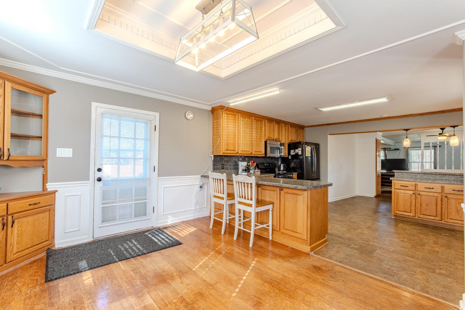 New price! Open house 12/14/25 from 2-4pm! Welcome to this beautiful and spacious country home that perfectly blends rustic charm with modern updates! This home offers 3 bedrooms and 2 full bathrooms on the main level. Upstairs, there's potential for two more bedrooms-perfect for guests, a home office, or a playroom. The kitchen offers tons of cabinet and counter space, ideal for cooking and gathering. The kitchen opens up to a large formal dining room ready for family dinners and holiday meals. The primary suite features a whirlpool tub, spacious walk-in closet, separate shower, and its own door that leads to the backyard. The hall bathroom offers dual vanities and a shower/tub combo. From the moment you walk in through the farmhouse-style sliding door, you'll love the huge family room/den-perfect for relaxing or entertaining. This home has extra closets throughout and a designated storage room adjoining the 2 car attached garage. This home has been well cared for with major upgrades including encapsulation under the home, new ductwork throughout, and an indoor 6x8 storm shelter for added peace of mind. Step outside to enjoy the huge fenced backyard with a dog run area, a 20x30 shop, and deck area. This home sits on 1 acre which is the perfect size for an abundance of outdoor activities yet easy to maintain. Plenty of additional parking space for guests, recreational vehicles, boats, and more. Conveniently located about 7 minutes from Walmart, 4 miles from Ramer Elementary, and about 90 minutes from the Memphis International Airport. You’ll love the balance of quiet country living with easy access to shopping, schools, and more! The refrigerator, stove, dishwasher, microwave, and 2 ventless fireplace/stoves stay with the home. No city taxes! City water. Central heat/air. Propane heat for ventless fireplaces. Call to schedule your private tour today! Some photos have been virtually staged using Ai.