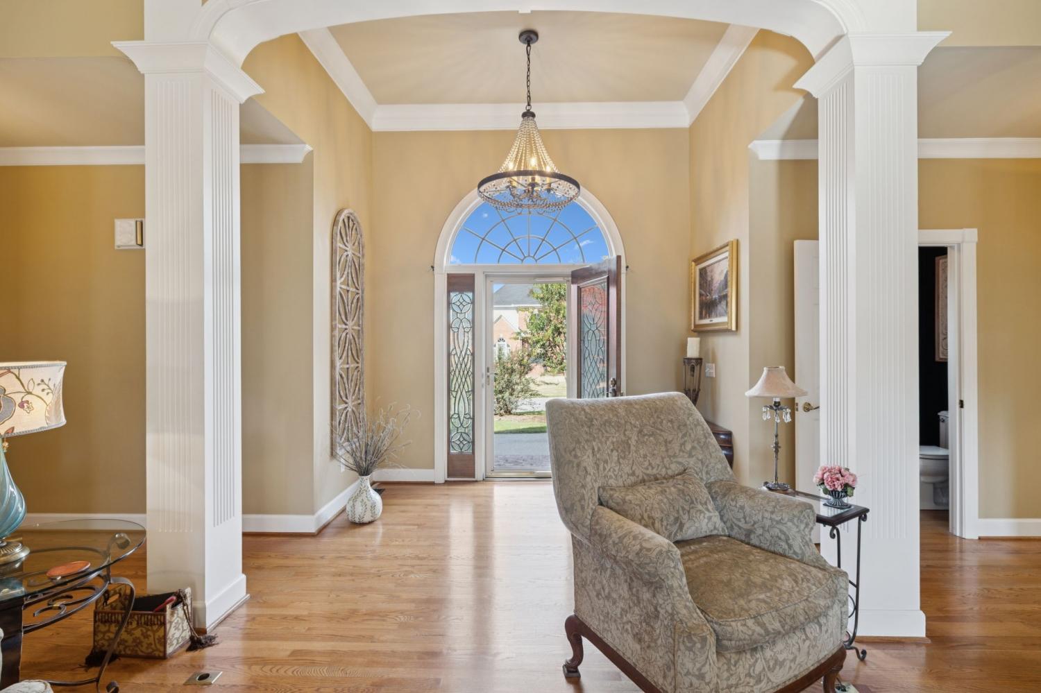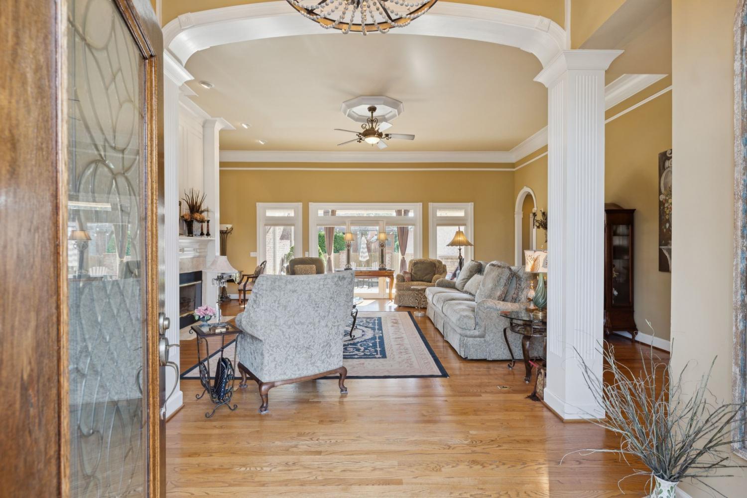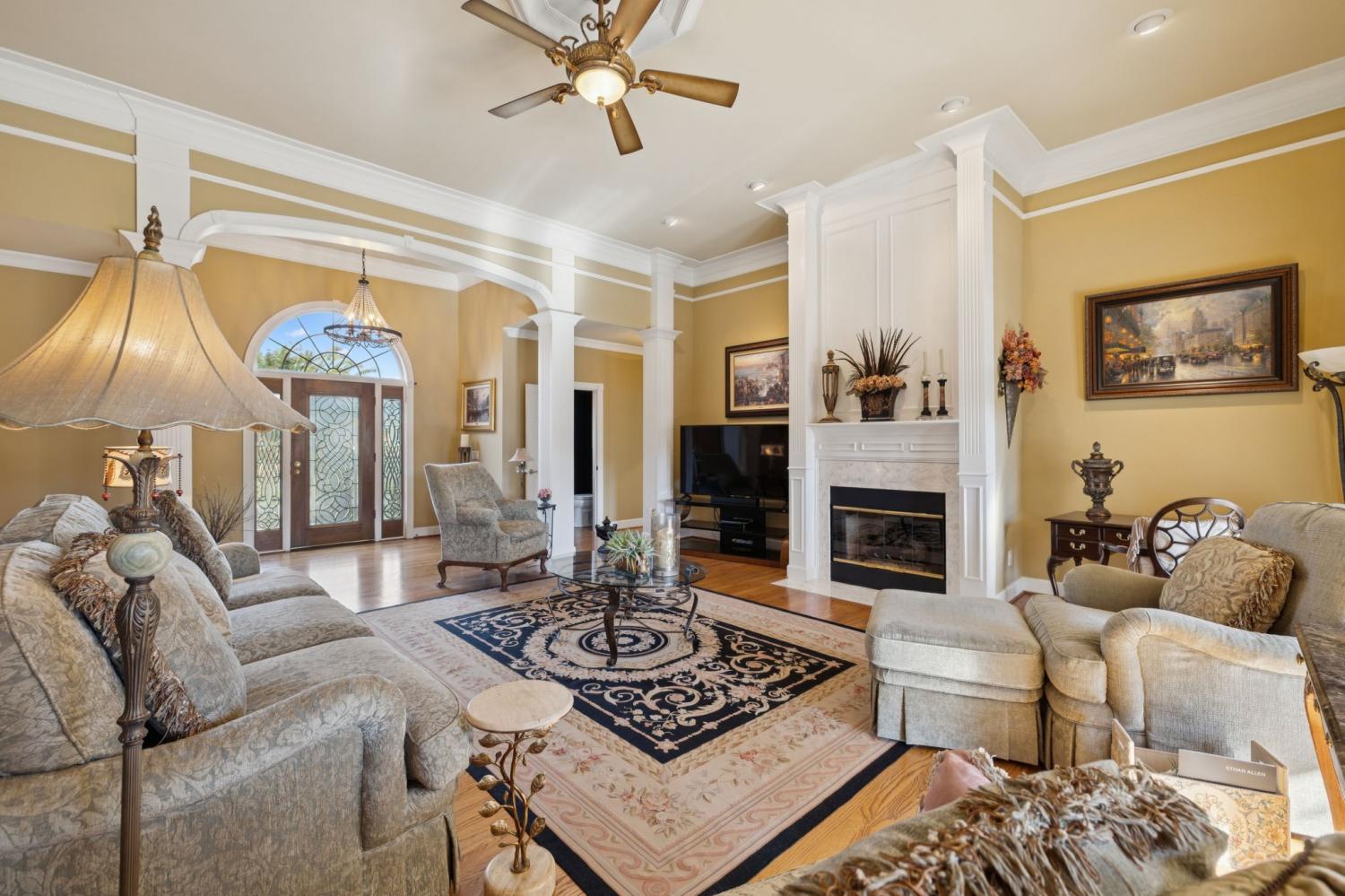 First time ever offered. One-owner, custom build on a 0.39-acre corner lot in Brandywine Pointe, crafted in 1993 and meticulously renewed. At 3,543± sq ft, the plan pairs volume and detail—tall ceilings, refined trim and molding, and hardwoods anchoring the main level. The renovated kitchen and baths feature custom cabinetry throughout; quartz in the kitchen and guest bath, limestone in the private primary suite. Three fireplaces with gas logs lend warmth across the living spaces. A flagstone courtyard offers a quiet, architectural backdrop, complemented by fresh exterior paint. Everyday convenience is dialed in with a three-car, side-entry garage and a half-circle front drive for easy arrivals and guest parking. Recent improvements exceed $180,000, including a Generac whole-home generator. Neighborhood amenities include pool, clubhouse, tennis courts, and lake access.