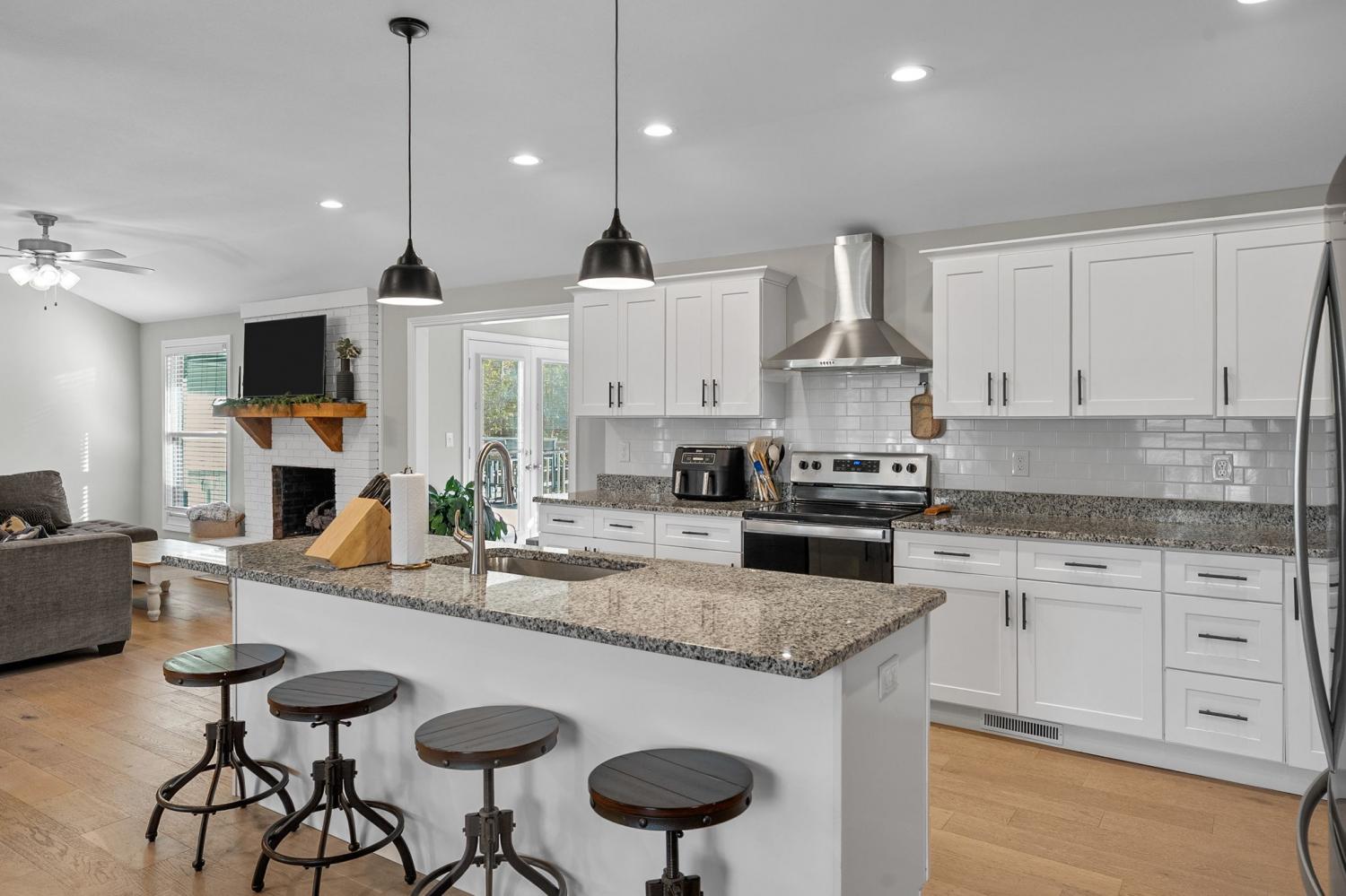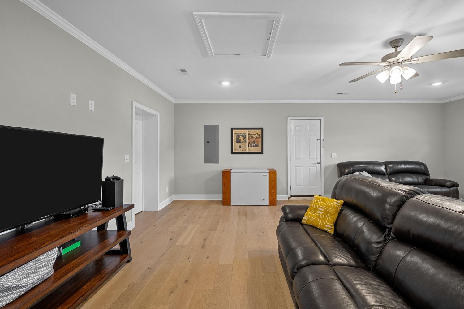 Welcome to 412 Belmont Rd. This is a one level ranch home with 4.3 acres that have zero restrictions- do as you wish! This is a completely, and beautifully, remodeled four bedroom and three full bathroom home: two of those bedrooms are LARGE en suites! This home has an extra room that is being used as a sunroom but you can use it as anything. You will find a large kitchen island with granite countertops throughout. Every closet and bedroom are spacious. Second en suite has a door that exits the home and has a large bathroom would be perfect for an in-law or whomever. Metal Roof, HVAC, plumbing, electric wiring, and deck are all three years old. Let’s talk about the 30x70 shop! It has an oil changing pit that’s 3-4’ deep, new electrical panel, new gutters, new roof, new exterior lights, new garage door, work bench, and so much more! This home has everything: a deer tree stand, ATV trail, small pond on the property, custom chicken coop, designated garden area, newer fence around the backyard, circular drive for entertaining, and so much more! You are 7 minutes from Riverside Dr., and 30 minutes to Fort Campbell.