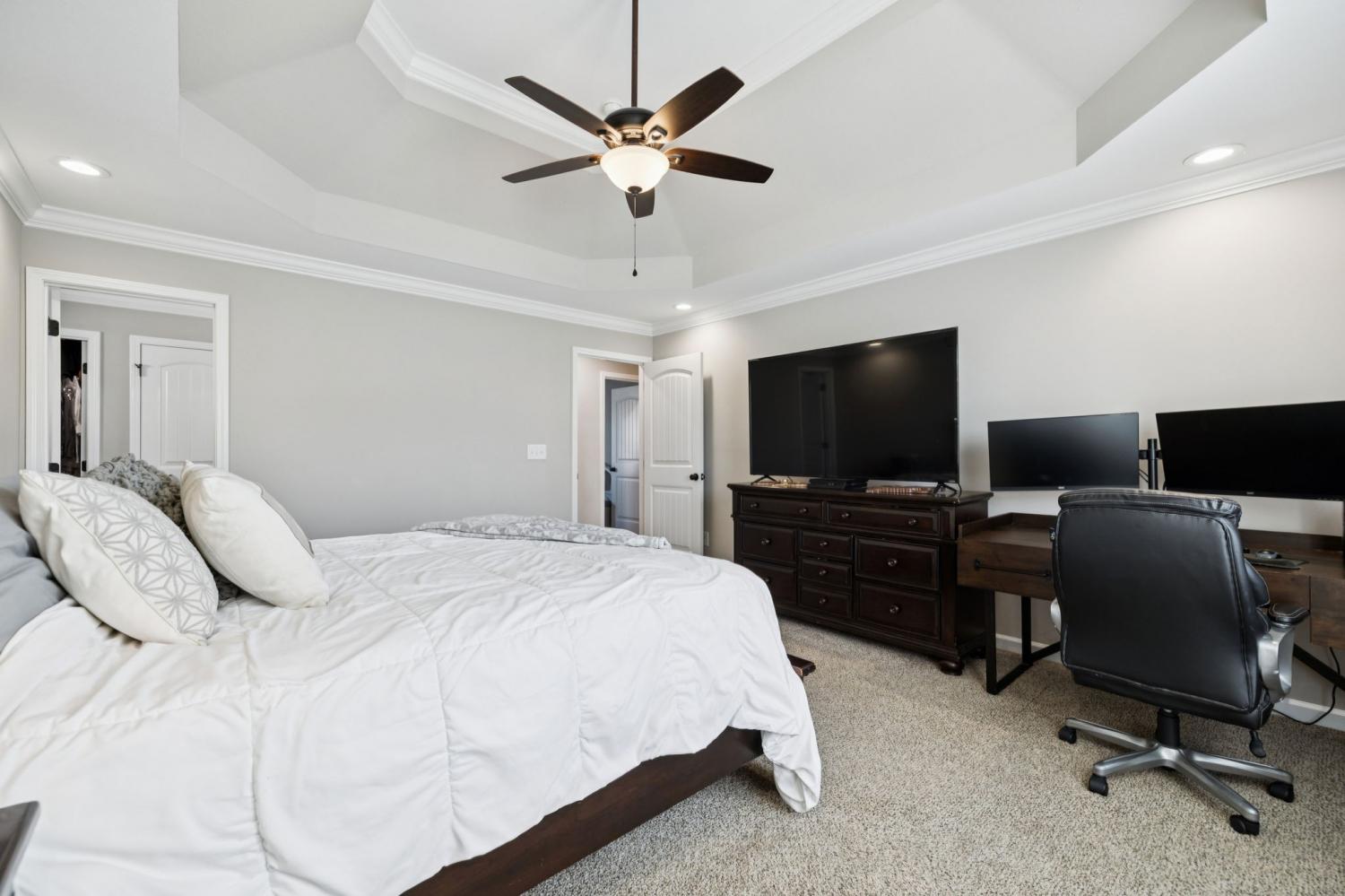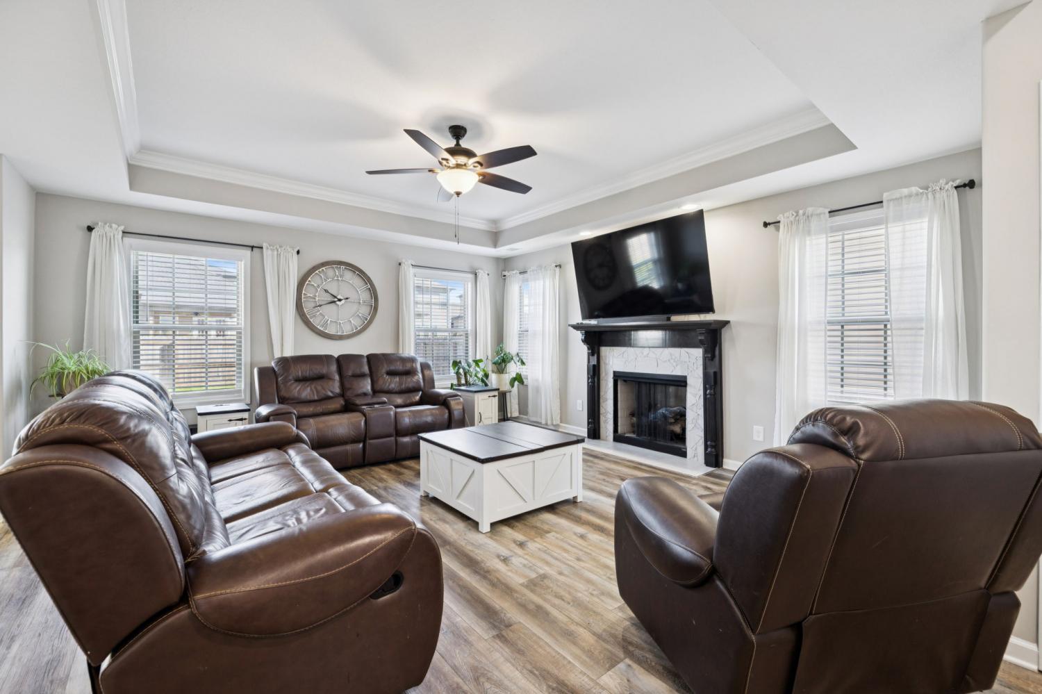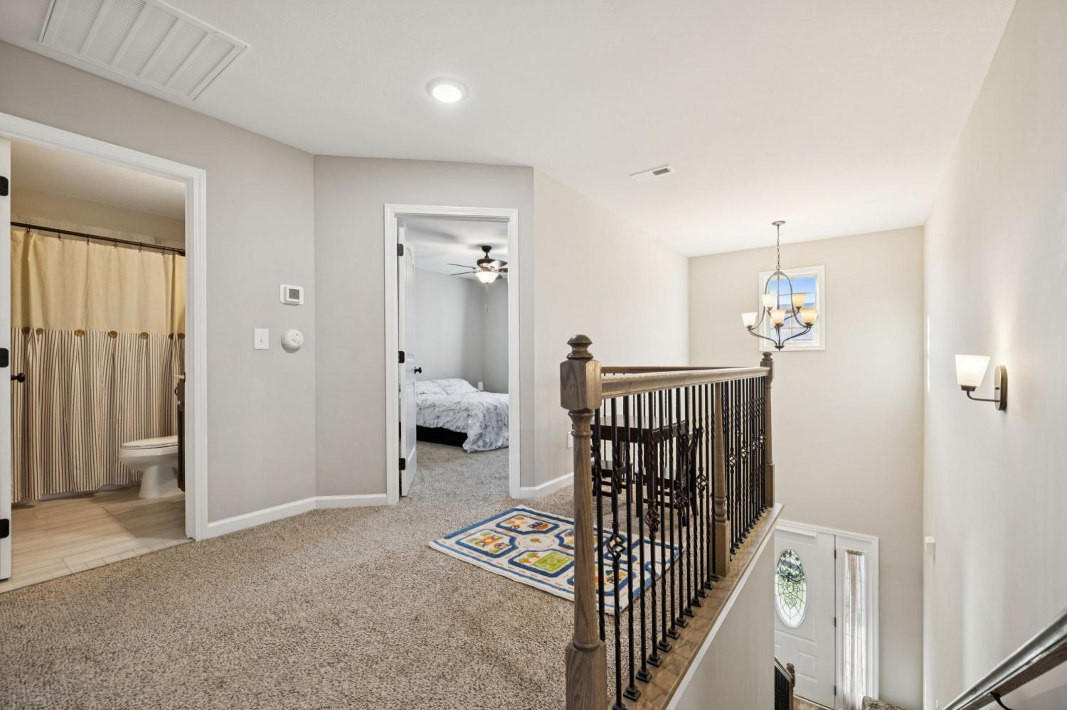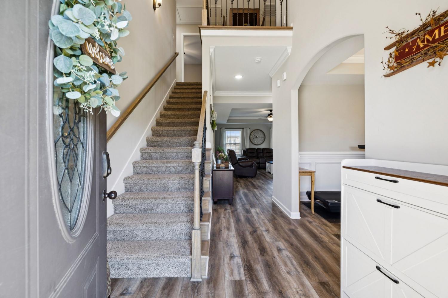 Beautiful 4-Bedroom Home with Custom Upgrades, Smart Features & Prime Location! Still feels new, this stunning 4-bedroom, 2.5-bath home offers a spacious and open layout on a level lot with desirable finishes throughout! The main level features an inviting two-story foyer, a bright, open living area with high ceilings and a natural gas fireplace. Natural gas in the neighborhood, home has tankless gas water heater, if desired buyer could add a gas stove! The massive kitchen island serves as a perfect gathering space for dining and entertaining, complemented by custom cabinetry, built-in coffee bar, and two pantries, one is a walk-in! The formal dining room offers flexibility, ideal as a home office, gym, den or whatever fits your lifestyle. Upstairs, the extra-large primary suite is a true private retreat with high ceilings and room for seating area, additional workspace or a spacious escape. The en-suite bathroom impresses with a floor-to-ceiling tiled shower featuring two decorative ceiling medallions, double sinks, a private water closet, and a wrap-around walk-in closet offering exceptional storage. Secondary bedrooms are spacious—two with their own walk-in closets—and a loft area for a reading corner or play zone. Outdoor living is just as inviting with a covered front porch perfect for relaxing in the evenings and a covered back patio with ceiling fan, extended BBQ patio, and a fully fenced backyard ready for entertaining. Additional highlights include: Updated interior paint throughout, Half bath with installed vanity for storage, Main level laundry with cabinetry, Smart home: doorbell camera and security system, Sidewalk community zoned for Northeast Elementary, Kirkwood Middle & Kirkwood High Schools, Easy interstate access, convenient to Exit 1 & Exit 4 shopping, dining, and groceries, This home combines comfort, functionality, and custom style in a highly desirable neighborhood—don’t miss your opportunity to make this one yours!
