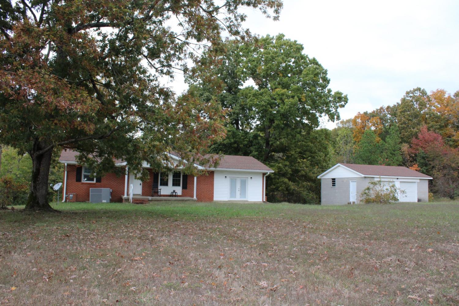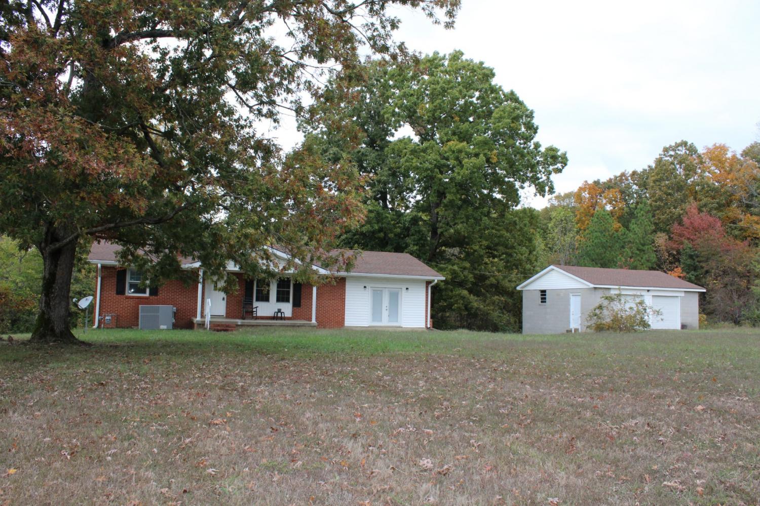 Welcome home to this beautifully updated 4-bedroom, 2-bath brick ranch offering a total of 2,300 sq. ft of comfortable living space. Nestled on 3.6+/-peaceful acres, this property provides the perfect balance of country charm and modern convenience. The home features a newly installed HVAC system and a bright, open kitchen and dining area complete with updated counter tops and stainless steel appliances--ideal for family meals and gatherings., Large family room located off the kitchen is perfect additional space for entertaining. The finished basement includes two additional bedrooms (no closets), 1 full bath, offering great flexibility for a playroom, home office or guest space, the basement also has a small kitchen area with french doors that lead out to a large level backyard perfect for outdoor entertaining. A brick hearth/flue provides an additional heating source, adding warmth and character to the space. The 2-car detached garage with new wiring and garage doors offers plenty of space for your vehicles. Enjoy plenty of room for outdoor activities, gardening, or simply relaxing and taking in the quiet surroundings.This property is perfect for families seeking space to grow and the tranquility of country living.
