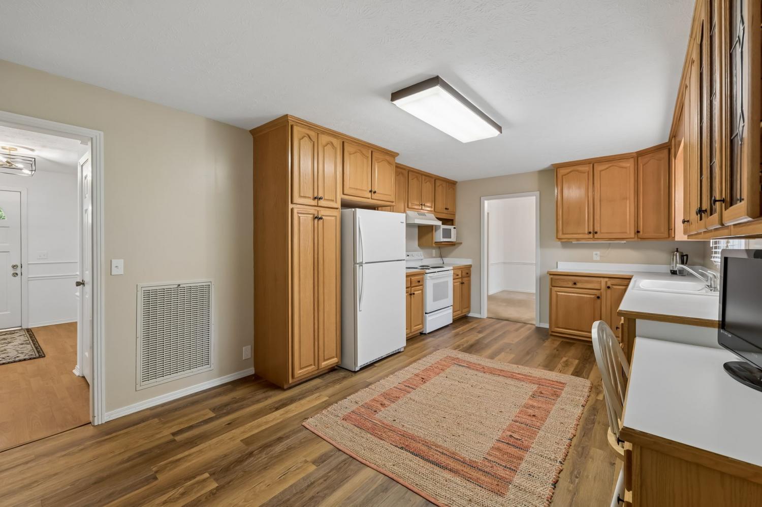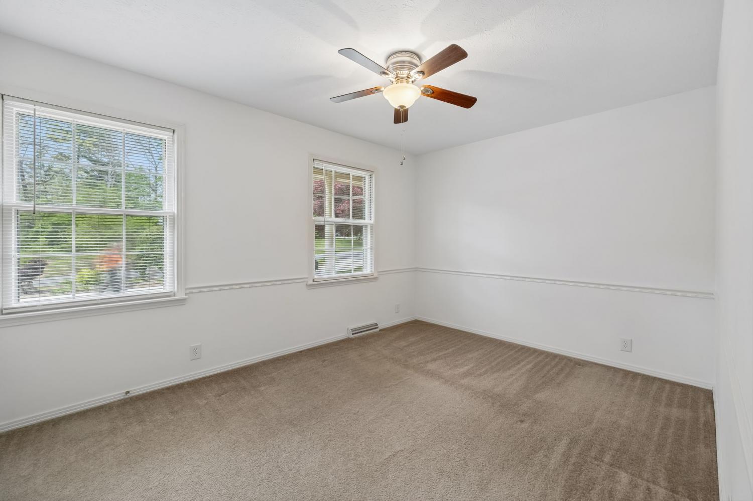Immaculately maintained and strategically updated brick ranch home in fast-growing Whiteaker Springs. The perfect mix of city and country living, just minutes from town. Formal entry foyer, huge living room, formal dining and eat-in kitchen. Three bedrooms with en-suite primary bath. Finished basement with rec room, hobby room, utility area and half bath, plus an oversized two-car garage with extra storage. Outdoor space includes large front porch, covered rear deck, both perfect for porch sittin'. Large storage shed. Picturesque yard with lush landscaping and incredible natural view. Much more to discover in this amazing home. This one is a must-see!