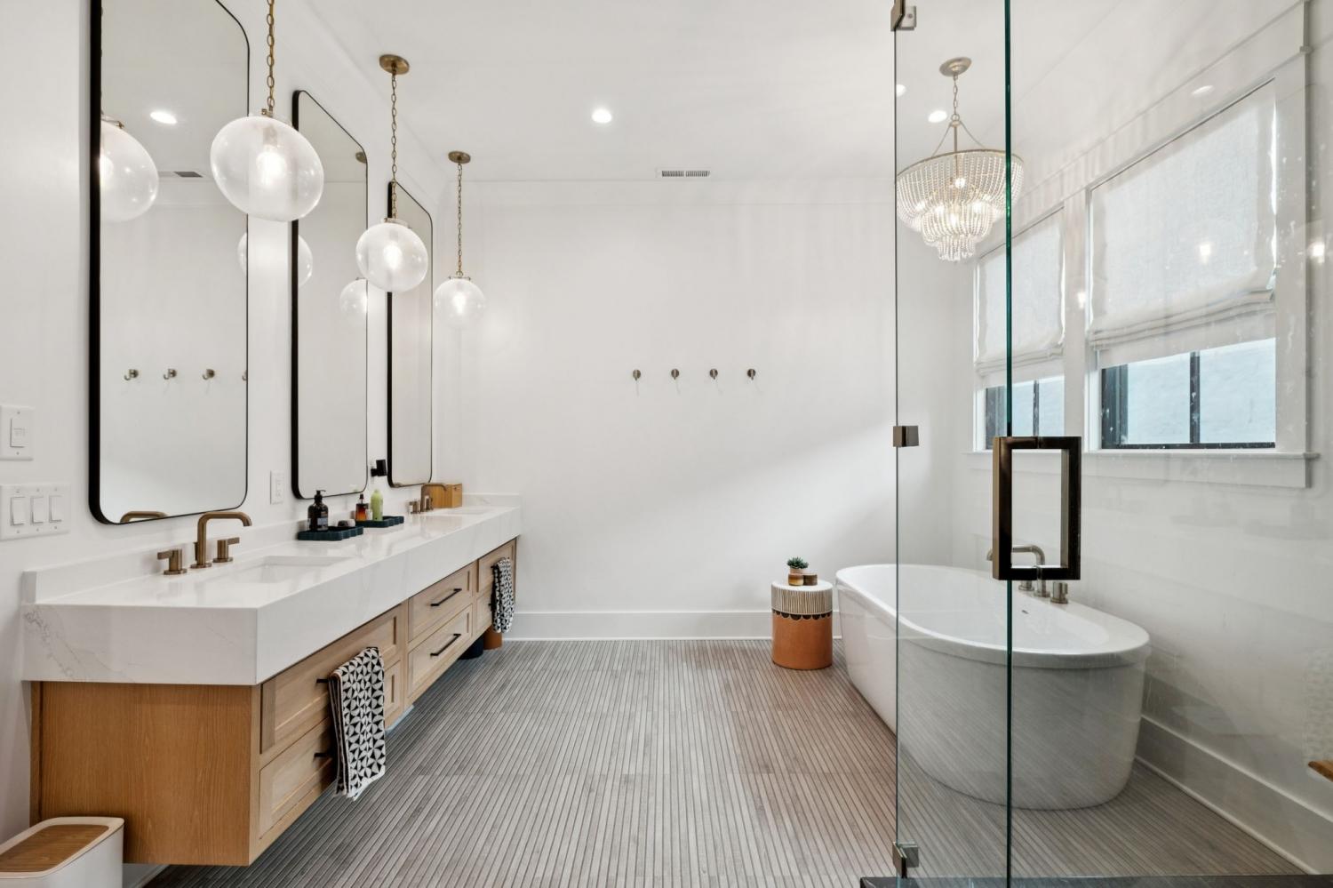 DON'T MISS! Listed well under recent $2.2M appraisal! Crafted by premier local builder White Pines - this exquisite custom home combines modern sophistication with timeless elegance and warmth. Expansive open floor plan features a chef’s kitchen, designated dining area, living room with custom fireplace, formal sitting area and walk-outs to a screened porch with wood-burning fireplace -- truly an entertainer's dream! Luxury hardwoods, 10ft+ ceilings, designer finishes + lighting, artisan built-ins & decorative shelving, bespoke window treatments/drapery, 5-zone surround sound, finished-out closets and streaming natural light throughout. Owner's Suite boasts an opulent spa-like bathroom, a $35k custom walk-in closet, a welcoming coffee bar with mini fridge and expansive bedroom with vaulted ceilings + its own secluded living space. 5th bed on main used as an office w/ tailored cabinetry & wallpaper accent. Privacy-fenced backyard with pavers, walking path, lush mature trees and fire pit. Oversized 2-car garage, ample driveway and extra parking. Full list of custom features & upgrades attached!