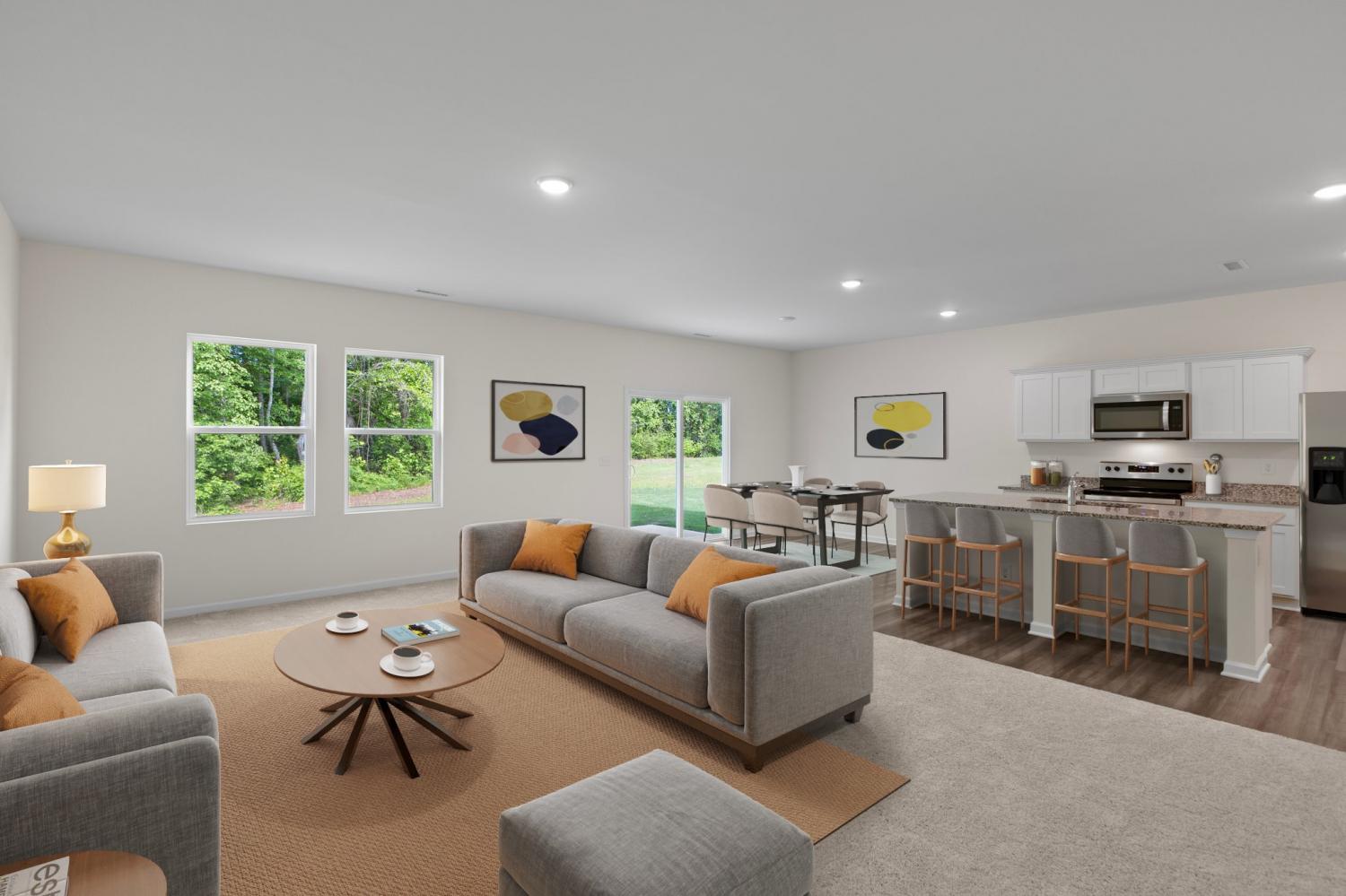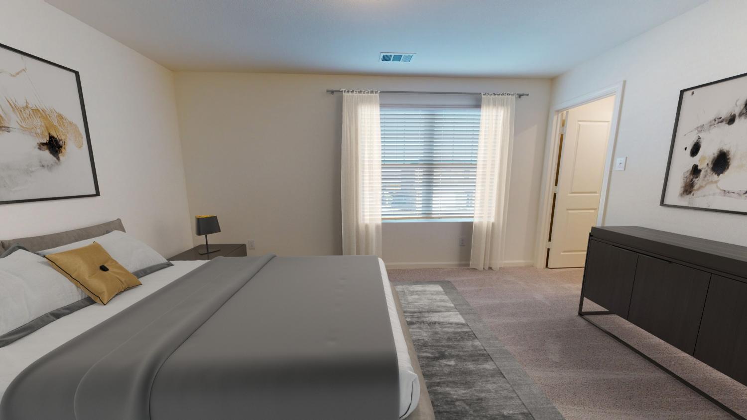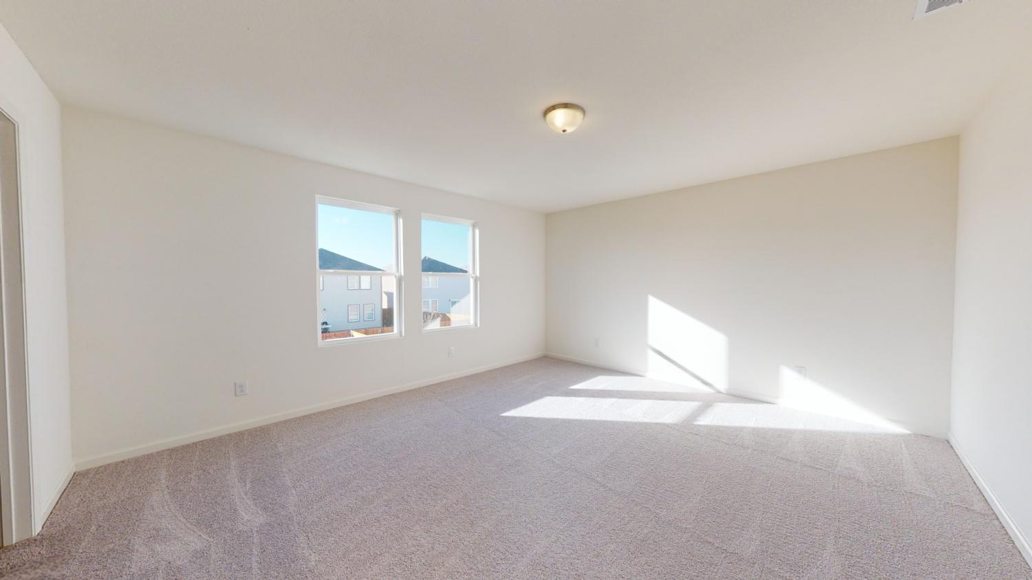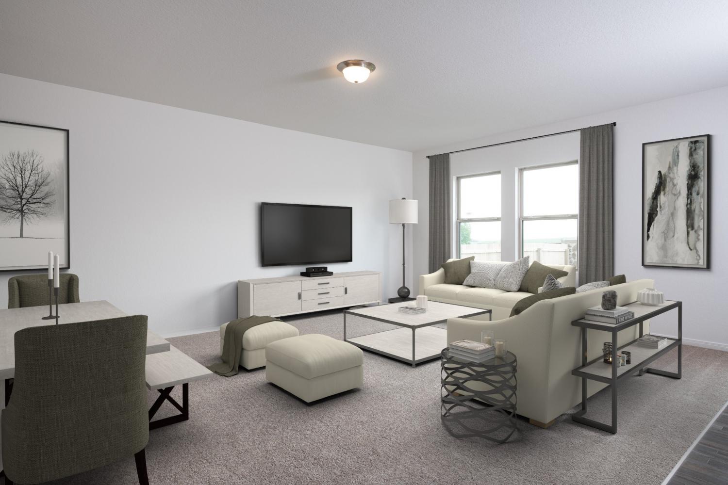 From the covered porch, you enter into the foyer, where stairs to the second floor are immediately in view. Continuing through, you arrive at the open family room, dining area, and kitchen. A powder bath is conveniently located off the kitchen and family room. Also off the kitchen are a pantry, a coat closet, and access to the two-car garage. Upstairs, a central loft leads to the primary bedroom, which includes a primary bath and a spacious walk-in closet. Three additional bedrooms—each with its own walk-in closet—share a full bath. A laundry room is also located on the second floor for added convenience.
