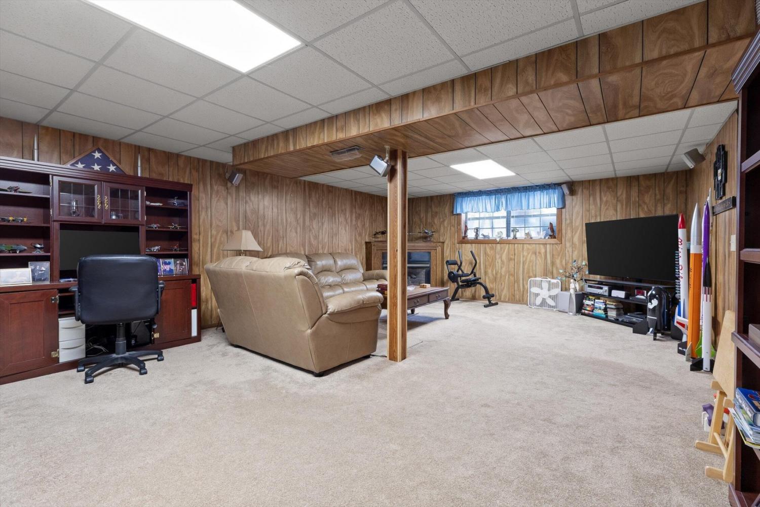 Located in a well-established neighborhood and just minutes from I-75, this charming home offers plenty of space inside and out. The main level features an inviting layout with hardwood floors, a bright eat-in kitchen, and a separate dining room that opens onto a beautifully updated back deck—perfect for morning coffee or evening gatherings. The finished basement adds valuable extra living space with a cozy den, gas fireplace, and walk-out access to the backyard—ideal for movie nights, guests, or a home office. Outside, you'll love the large yard, extra storage building, and the peaceful setting this property provides. Families will especially appreciate being in the highly sought-after Heritage School District. Move-in ready and filled with comfort and convenience—this one is ready to welcome you home!