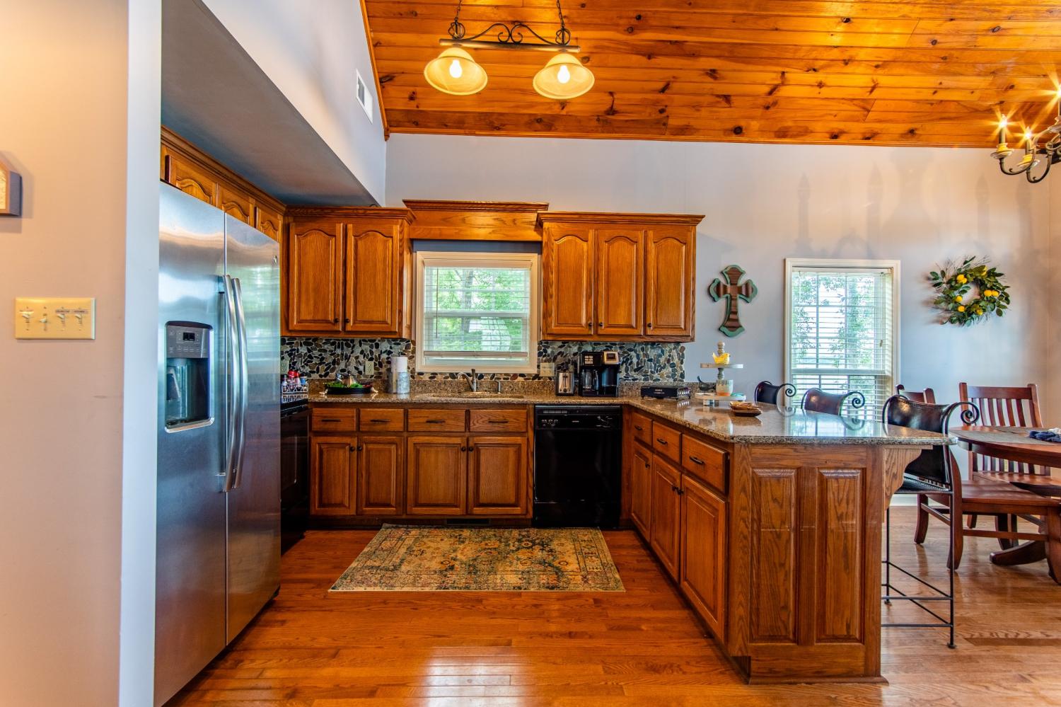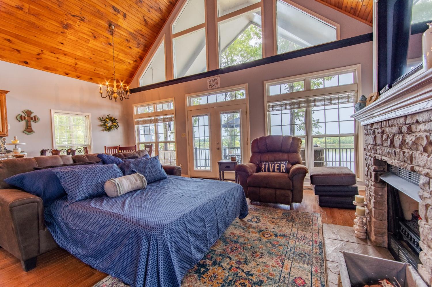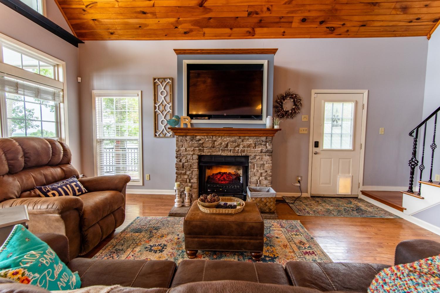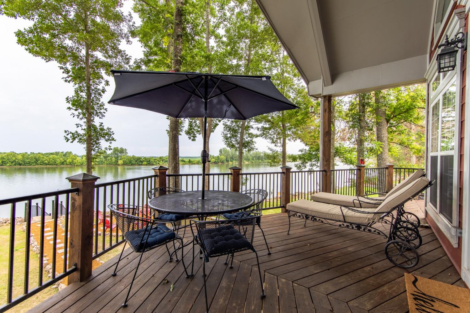 This stunning, fully furnished home overlooking the TN River offers plenty for you and your family. It features two spacious bedrooms, three bathrooms, and a garage with a full bath, wet bar, and lounging area. The backyard includes a fire pit and a patio with a hot tub! Additionally, there is a boat dock accessible by walking down a set of steps, along with a nearby boat ramp for easy launching. Whether you're looking for a full-time, part-time, or income-producing river home to relax and watch boats pass by, this could be your hidden getaway. The home is currently used as a part-time residence and an income-generating riverfront property, bringing in an average of $4,100 per month through Airbnb and VRBO (calculated from 1/1/23 through 10/31/25).