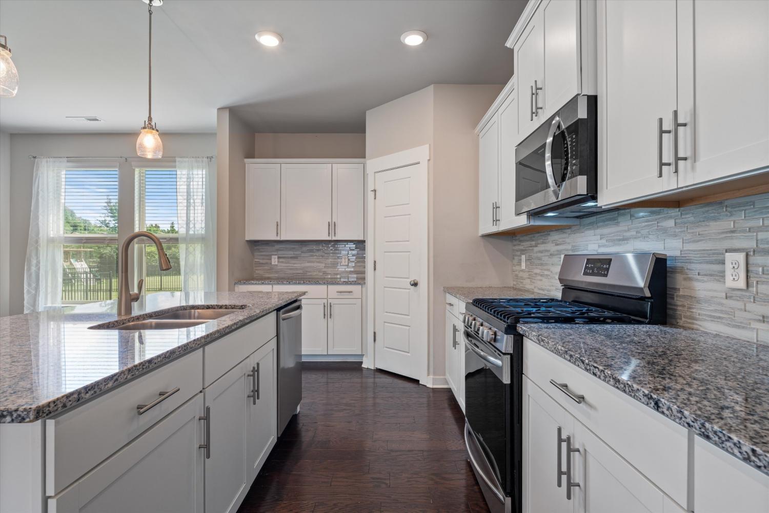 Located in sought after Valleybrook this home offers stunning views of nature. Featuring an open concept floor plan perfect for entertaining, tall ceilings, stainless steel appliances w/ gas stove, gas fireplace, shaker cabinets, tons of granite countertop space w/ island, mature landscaping and more! Enjoy the sunrise on your east facing covered back porch and fully fenced back yard. The primary suite is located on the main level w/ double vanity counter tops in bathroom, custom tiled shower, + large walk in closet. Large closets throughout home including pantry in kitchen. 3 bedrooms w/ large closets + huge den/bonus space upstairs. Upstairs bathroom features double vanities & tile floors. Abundance of natural light throughout the home. Two car garage. Enjoy the pool on a hot summer day! Conveniently located nearby to entertainment, shopping, parks, & even MTSU. Home is zoned for both Erma Siegel and Lascassas Elementary Schools Subject to credit check and background check 615-987-7636 Dean Nelson