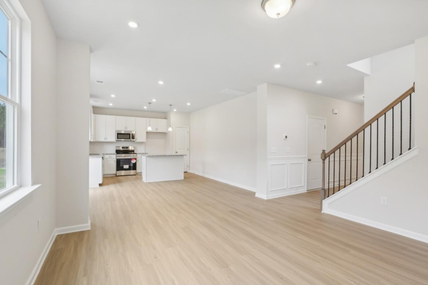 The Lawson at Cantigny Park by Smith Douglas Homes. Plan opens to a nice foyer and leads to a connected living-dining-kitchen layout that spans the entire width of the home. An open living and dining area connects the kitchen and the rear yard for effortless entertaining. A split staircase leads upstairs, where you'll find three generous bedrooms, a laundry room, and spacious closets. The owner's suite also enjoys views of the rear yard and is separated from two other bedrooms. **Price Reduced & Move-in Ready! *4.99% (5.395% APR) 30 Year FHA/VA FIXED rate with use of Ridgeland Mortgage! Special offer details apply. Also enjoy an additional $2000 Hometown Hero credit with use of preferred lender and attorney participation. Restrictions apply. Contact the onsite agent for details.*