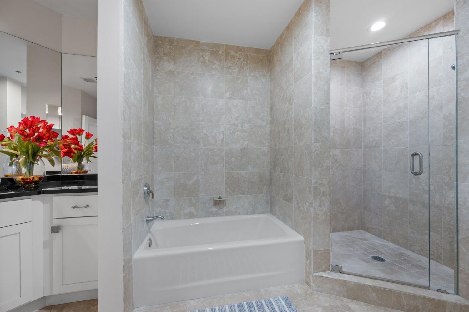 The West End is a luxury development and hidden gem at a great value, priced will under the new construction developments just a block away that have less square footage. It makes the perfect full time home or is perfect for a "lock and leave" lifestyle, if needed. The meticulously designed 2 Bedroom 2 Bathroom, with En-suites, both baths include a separate tub or Whirlpool and walk-in showers. Large walk in closets in both bedroom have custom wood design organization in closets . The Living room is bright and open with a beautiful gas fireplace. The Kitchen has custom backsplash, stainless appliances and breakfast bar. Hardwood floors are thought out. The primary bedroom has new carpeting over the wood flooring which is easily removed to allow the wood floors for the future owner. New Geothermal HVAC was installed in 2024. Additional building amenities include Google Fiber internet, front desk security/concierge service, two gated parking spaces, 2 EV Charging stations available for residents to use, rooftop entertaining area with outdoor grills, and a fully equipped fitness center. The building has been well maintained and the HOA financials are sound. All this is located just steps from BrickTop’s, Starbucks, and the best of West End dining, this residence is also minutes from Vanderbilt University, Hillsboro Village, Downtown Nashville, and convenient access to I-40 and I-440. Private financing available ask for details.