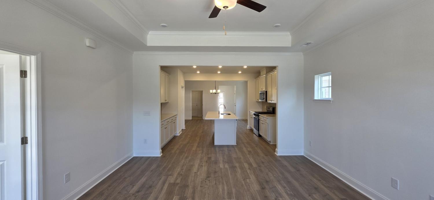 The Huntland | 3 Bed | 2 Bath | One-Level Cottage | Rear-Entry Garage The Huntland is a beautifully designed one-level cottage featuring 3 bedrooms, 2 full baths, and a 2 car rear entry garage. This efficient and stylish floor plan offers functional living with high end touches and timeless design throughout. The kitchen is a standout feature, complete with an oversized eat at island, generous cabinetry for added storage, and a walk in pantry is perfectly suited for everyday living and entertaining. The open concept layout seamlessly connects the kitchen, dining, and living areas, creating a bright and inviting space ideal for both relaxing and hosting. The spacious owner’s suite includes a tray ceiling, a large walk in closet, and a private en-suite bath with double vanities. Two additional bedrooms are well-sized and share a full hall bath. Tray ceilings in select rooms add architectural interest and a touch of sophistication. Enjoy the outdoors year round with a covered rear porch that extends your living space and offers a quiet place to unwind. The rear-entry garage enhances curb appeal while providing convenient access and additional privacy. This home is move-in-ready with thoughtfully curated finishes and no structural or design changes available. Quality craftsmanship and smart design in a single level layout that fits a variety of lifestyles. Located in a sought after community with access to parks, walking trails, shopping, dining, and more, The Huntland combines low-maintenance living with modern comforts in a prime location. Don’t miss your chance to own this charming and functional cottage. Schedule your showing today!