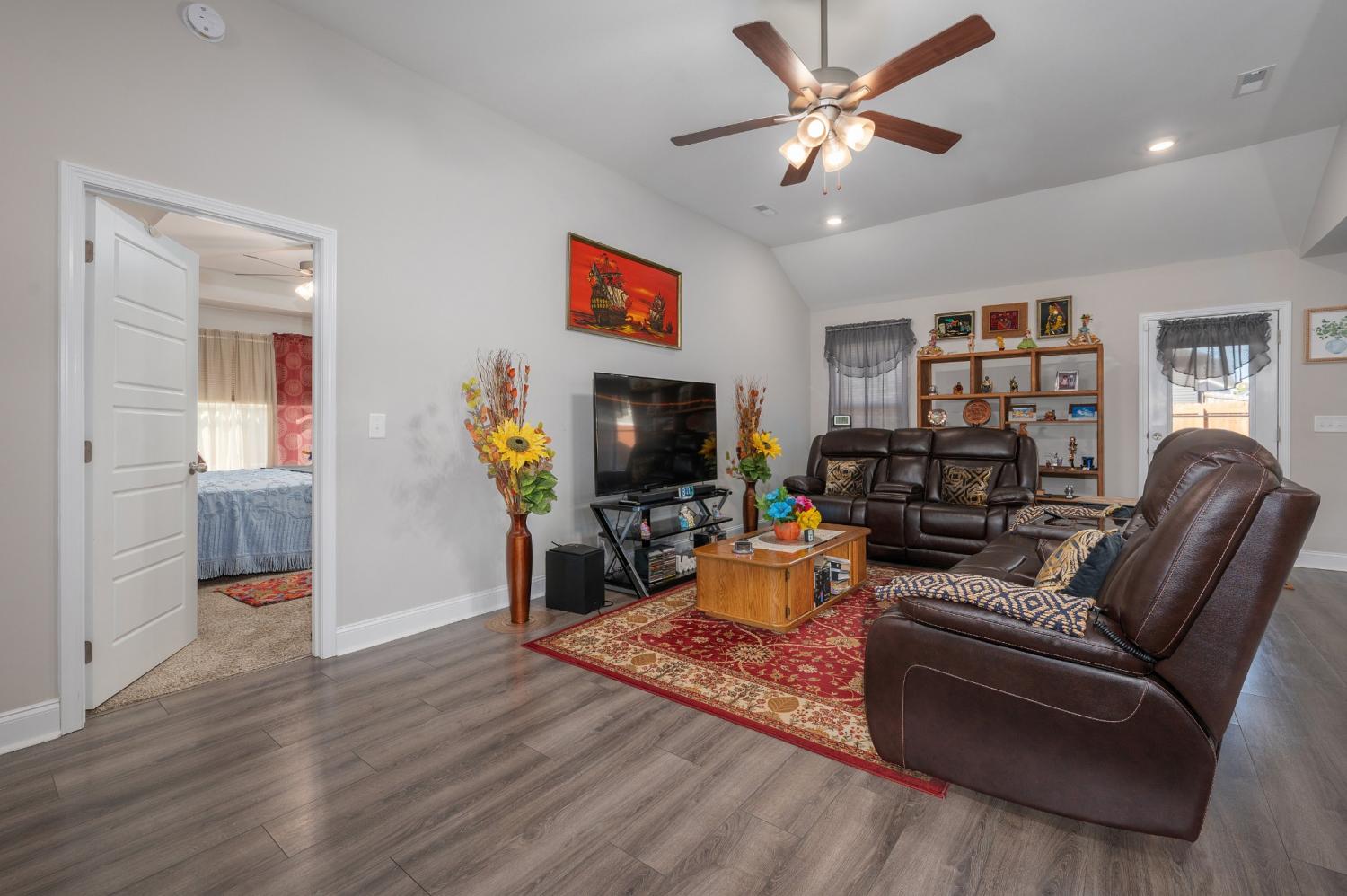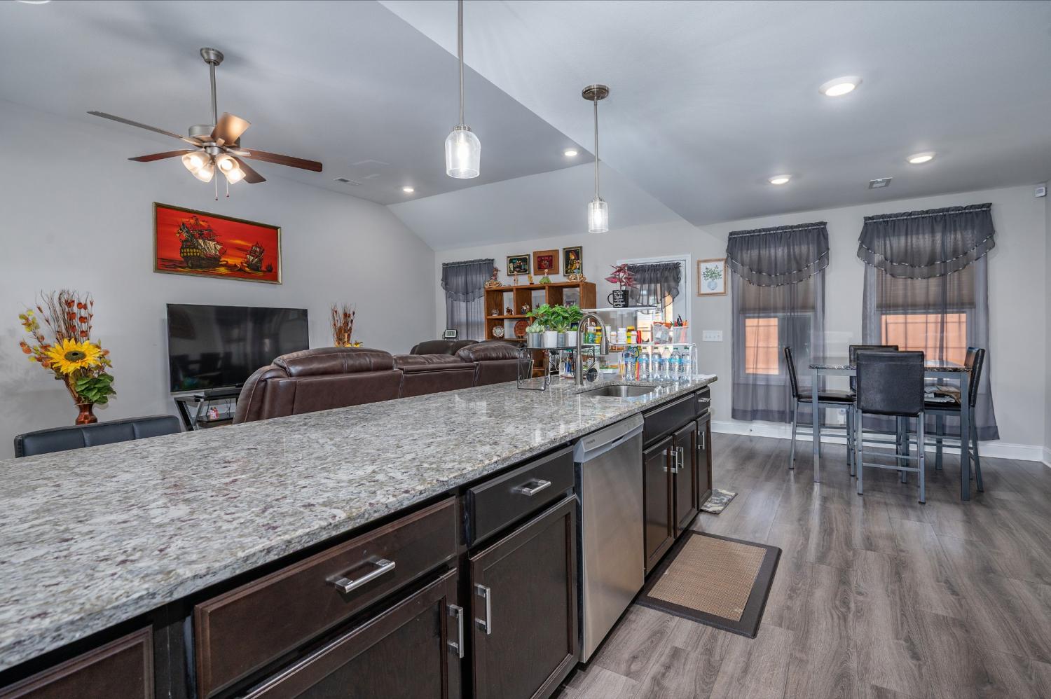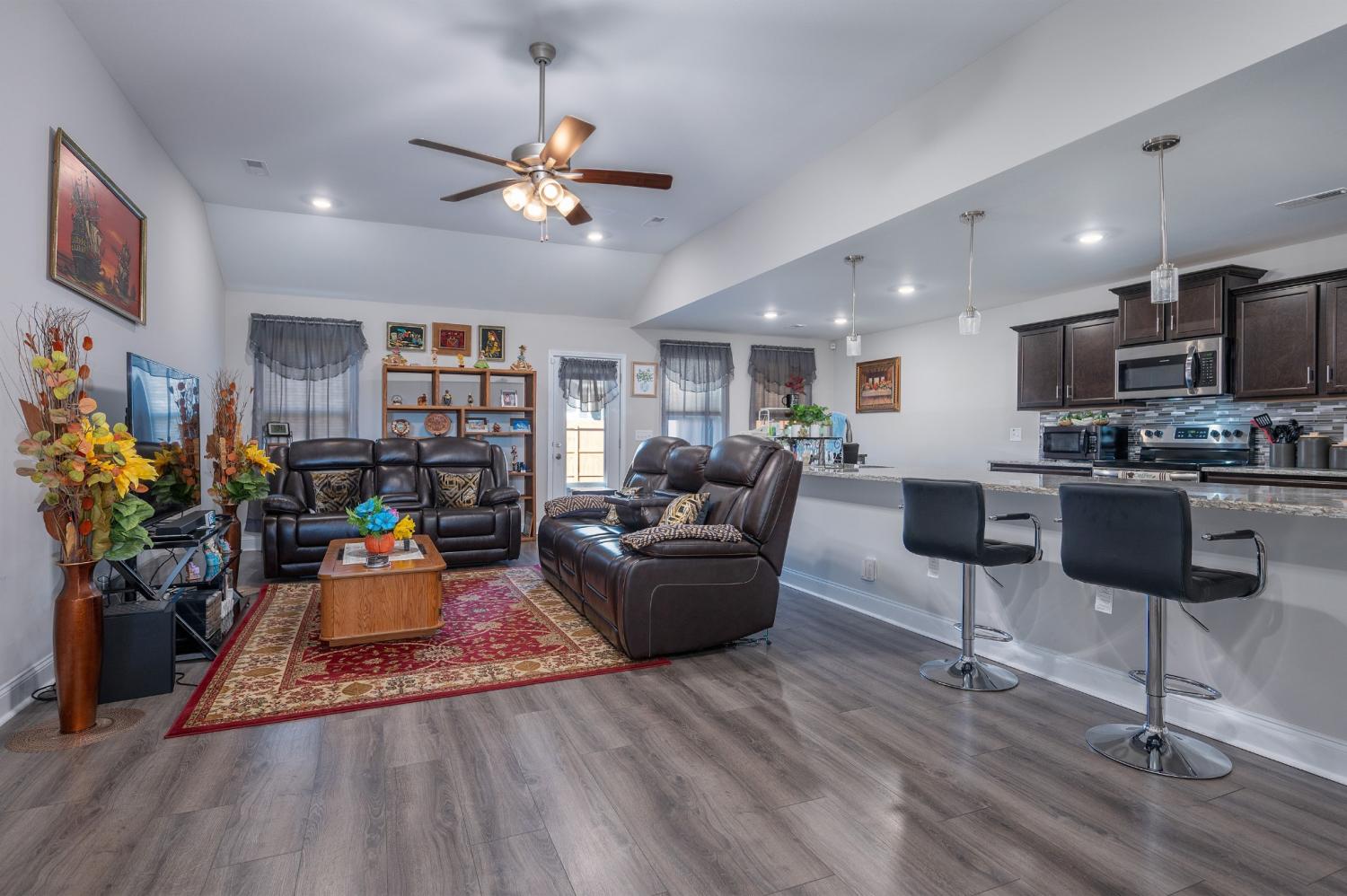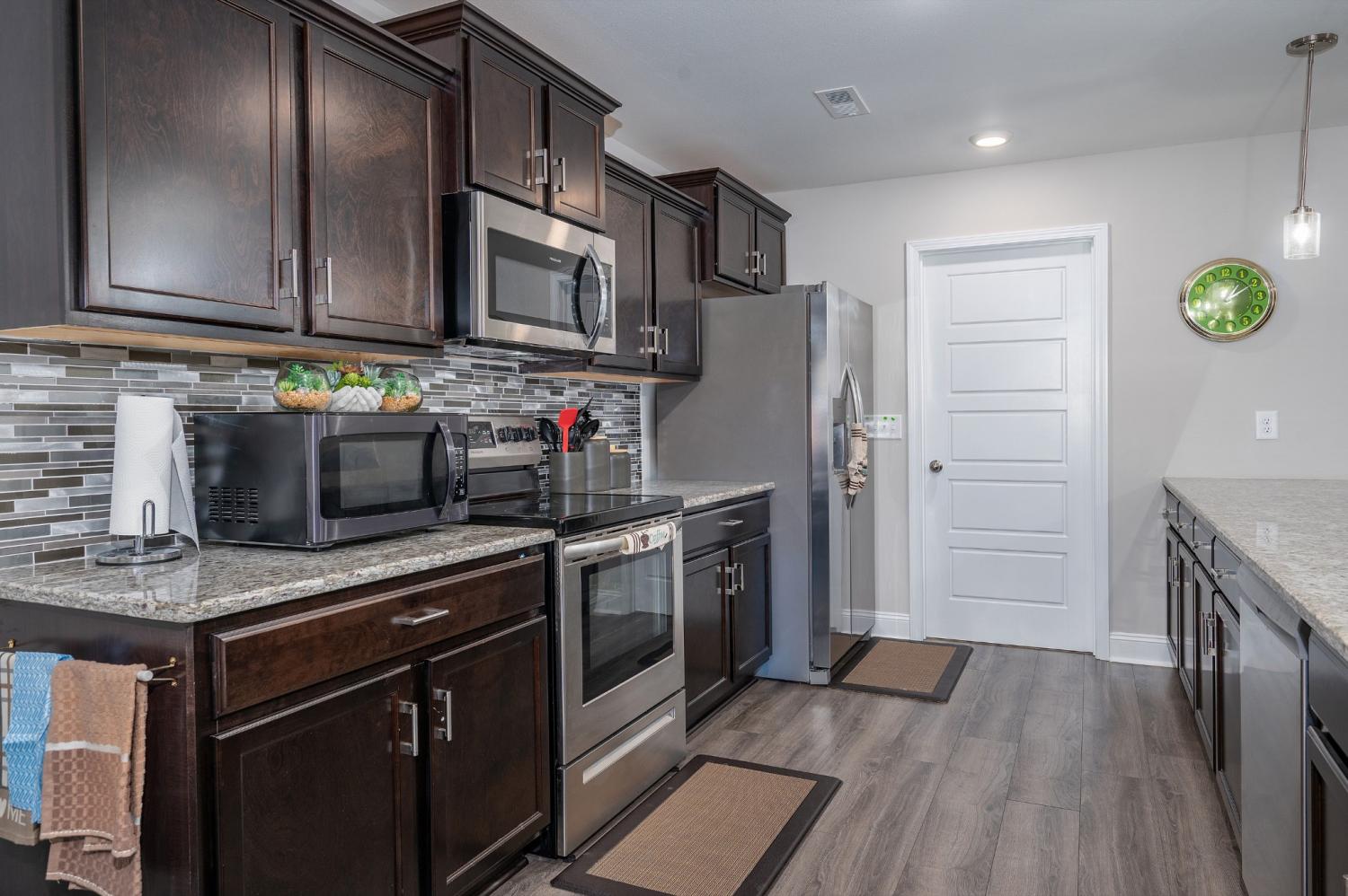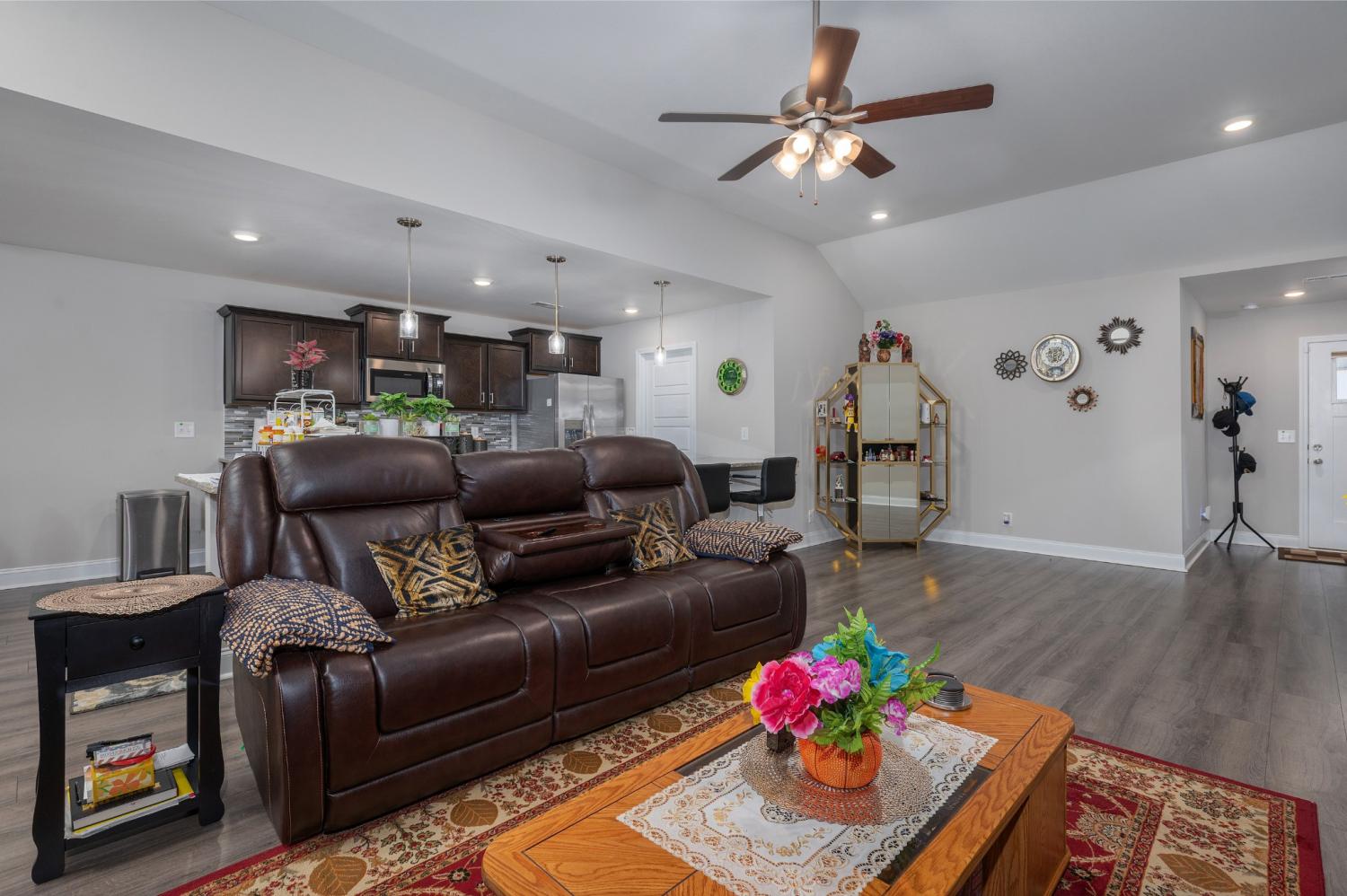 Like-new single-level home with concrete drive and 2-car front-entry garage. Welcoming covered front porch leads into an open floor plan connecting the kitchen, living, and dining areas with a high ceiling in the living room. The kitchen features granite countertops, stainless appliances, rich cabinetry, and center-island seating. The primary suite includes a spacious tile shower and double vanity. Enjoy outdoor living on the covered patio overlooking a large, privacy-fenced backyard. Near entrance for Fort Campbell!
