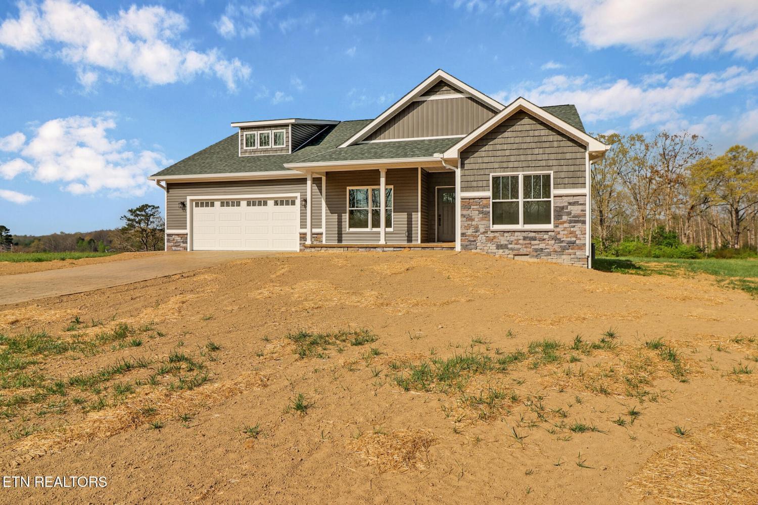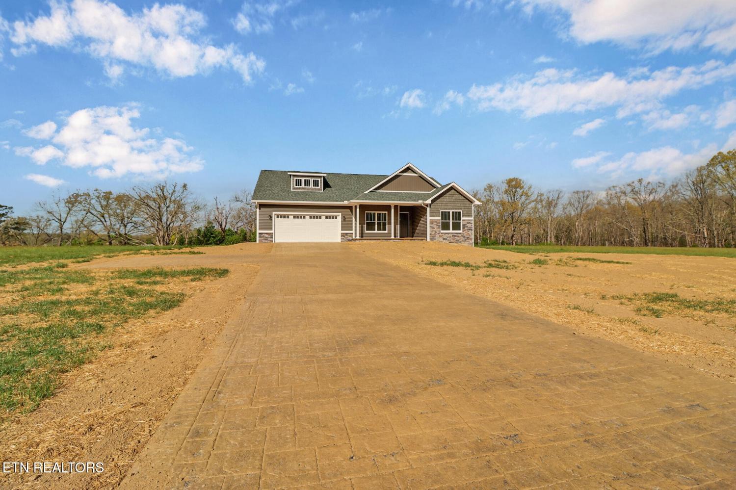 New construction in Jamestown! Beautifully designed 3-bedroom, 2-bath home offering approximately 1,800 sq ft of quality living space. Features include an open floor plan, spacious kitchen with custom cabinetry, natural gas cooktop , and a large living area filled with natural light. Primary suite with walk-in closet and double vanity. Enjoy the covered front porch and attached two-car garage. Situated on a 1.86-acre lot along Allardt Highway—convenient to town yet with a peaceful country feel. Buyer to verify all information and measurements in order to make an informed offer.