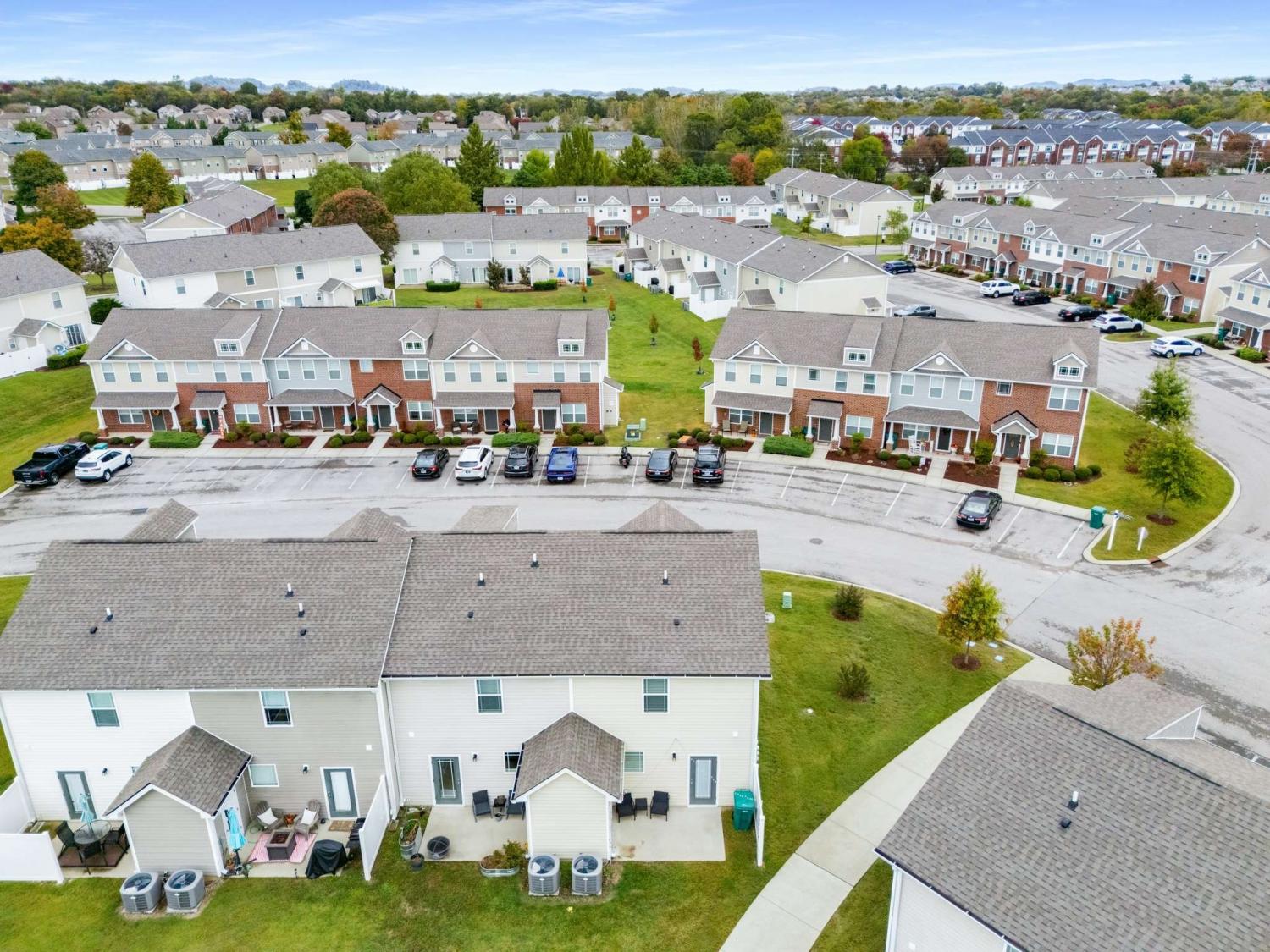 Coming Soon! Experience the perfect blend of comfort, style, and convenience in this stunning two-story end-unit townhome in Spring Hill. Located in a walkable neighborhood ideal for daily exercise or peaceful evening strolls, this residence welcomes you with a charming covered porch. Inside, a bright open-concept floor plan with hardwood throughout the main level. The gourmet kitchen offers a large center island with seating, granite countertops, rich espresso cabinetry, recessed lighting, and stainless steel appliances - perfect for every day meals and entertaining guests. A convenient powder bathroom is also located on the main level. Upstairs, the luxurious primary suite is a relaxing retreat with double vanities, a large walk-in shower, and a walk-in closet. A second bedroom with a private full bath and walk-in closet, plus a convenient laundry room on the same floor, ensures both comfort and function. Step outside you'll find a private patio, ideal for BBQs and summer relaxation, with a grassy area just behind the home. The community amenities elevate your lifestyle with a fitness center, pool, playground, clubhouse and more, while the nearby grocery stores, dining, and shops make errands a breeze. With ample parking, rear storage, and a thoughtful layout that feels both high-end and inviting, this home delivers the perfect Spring Hill lifestyle.