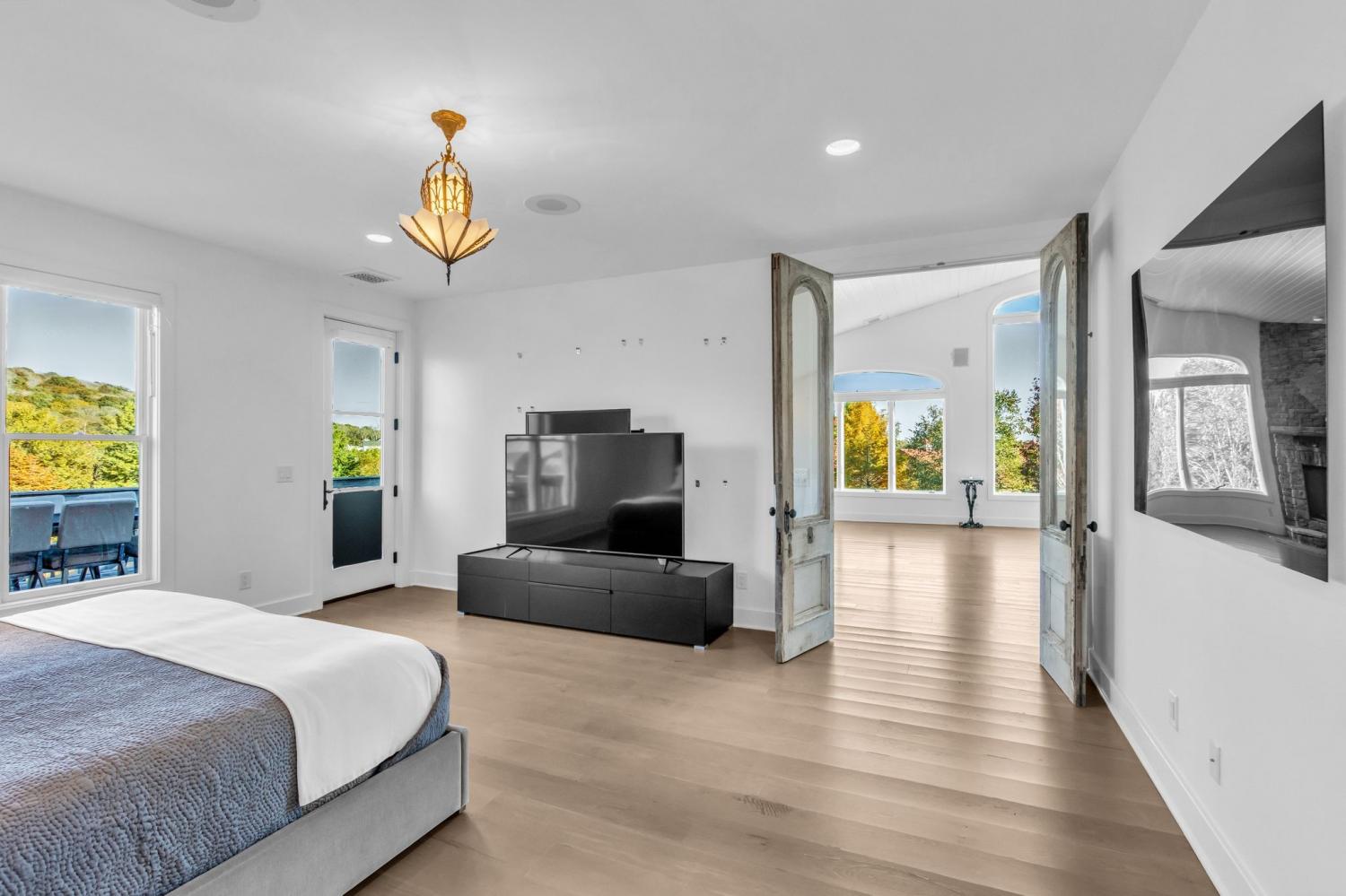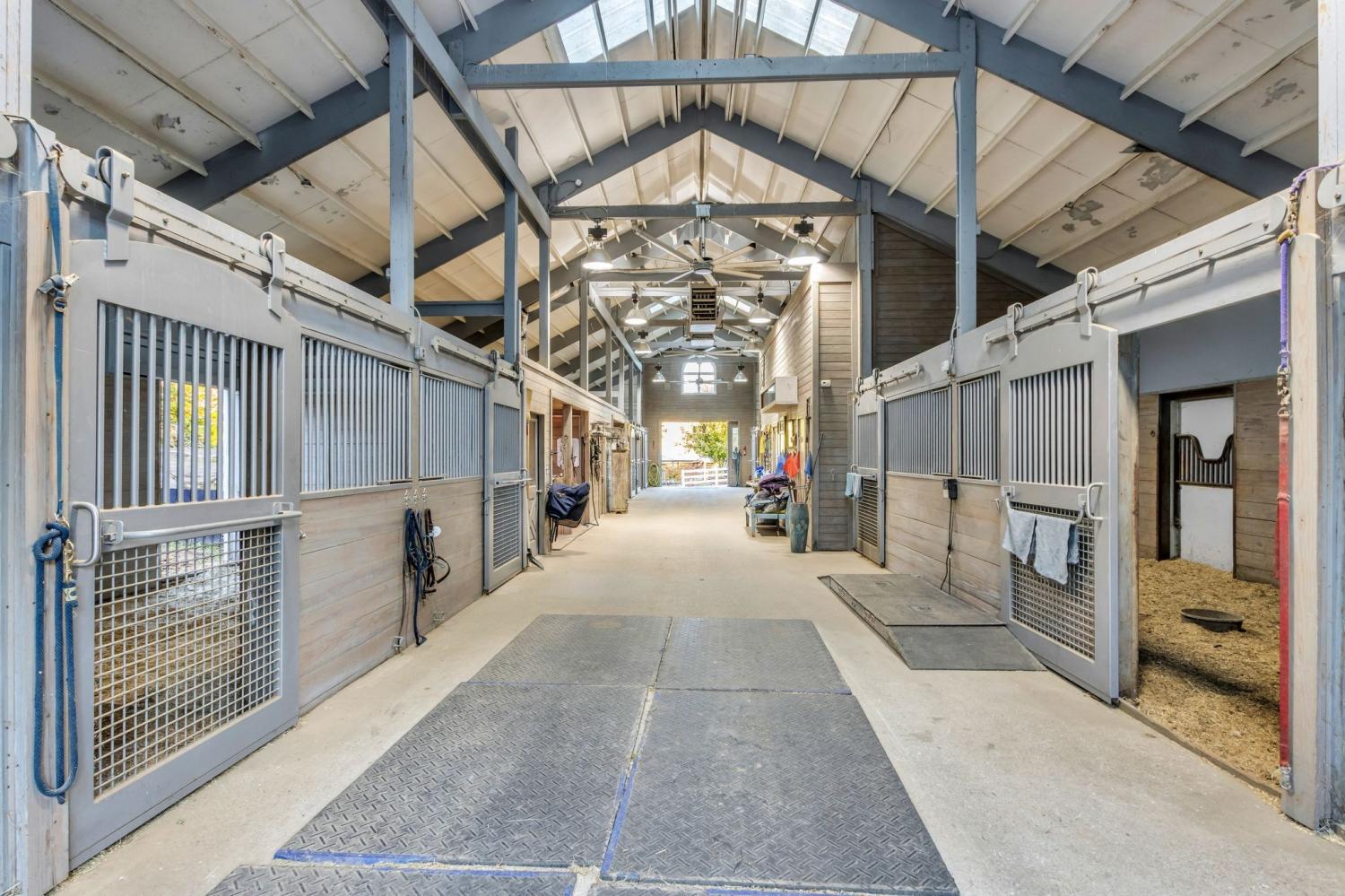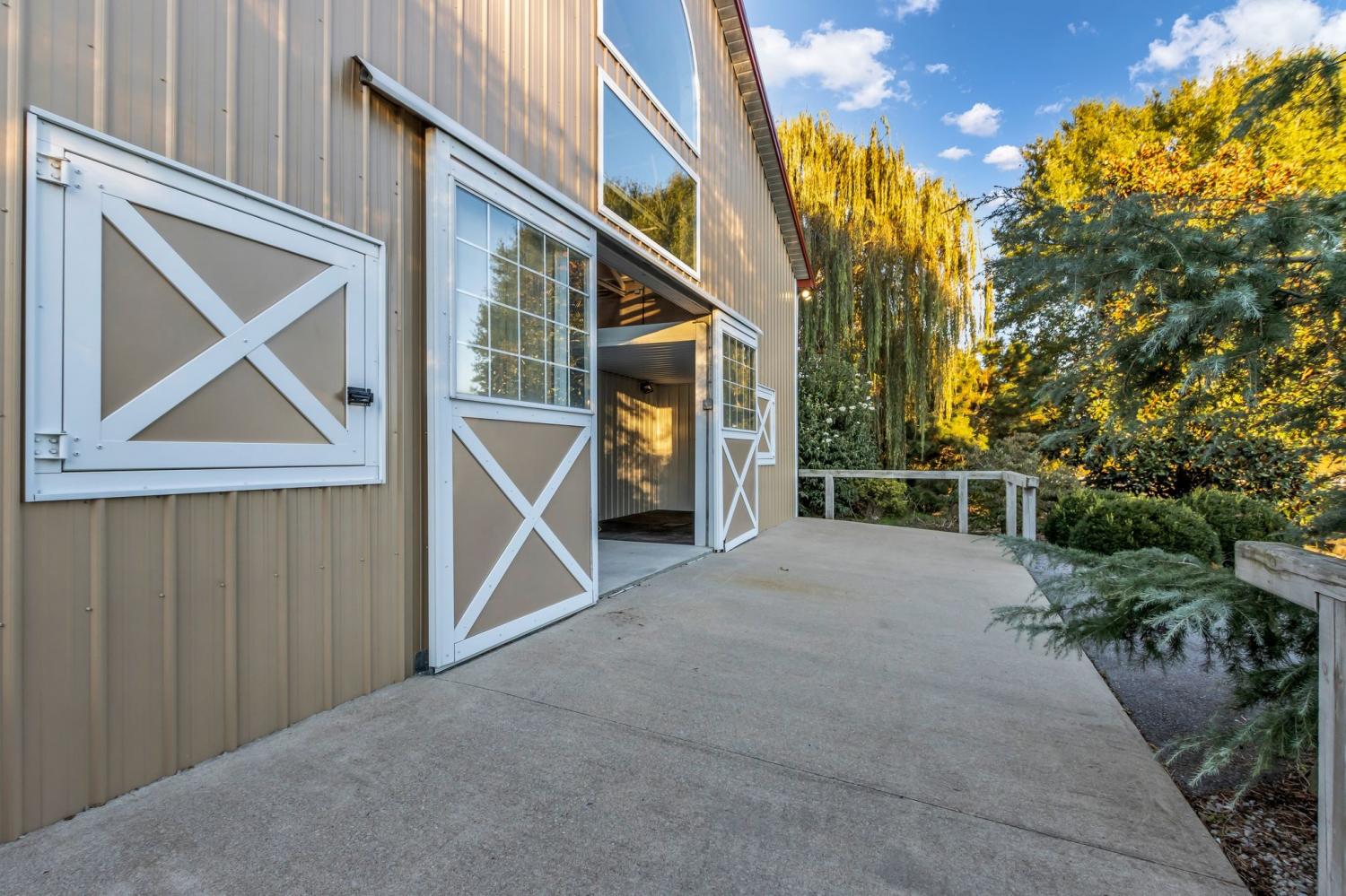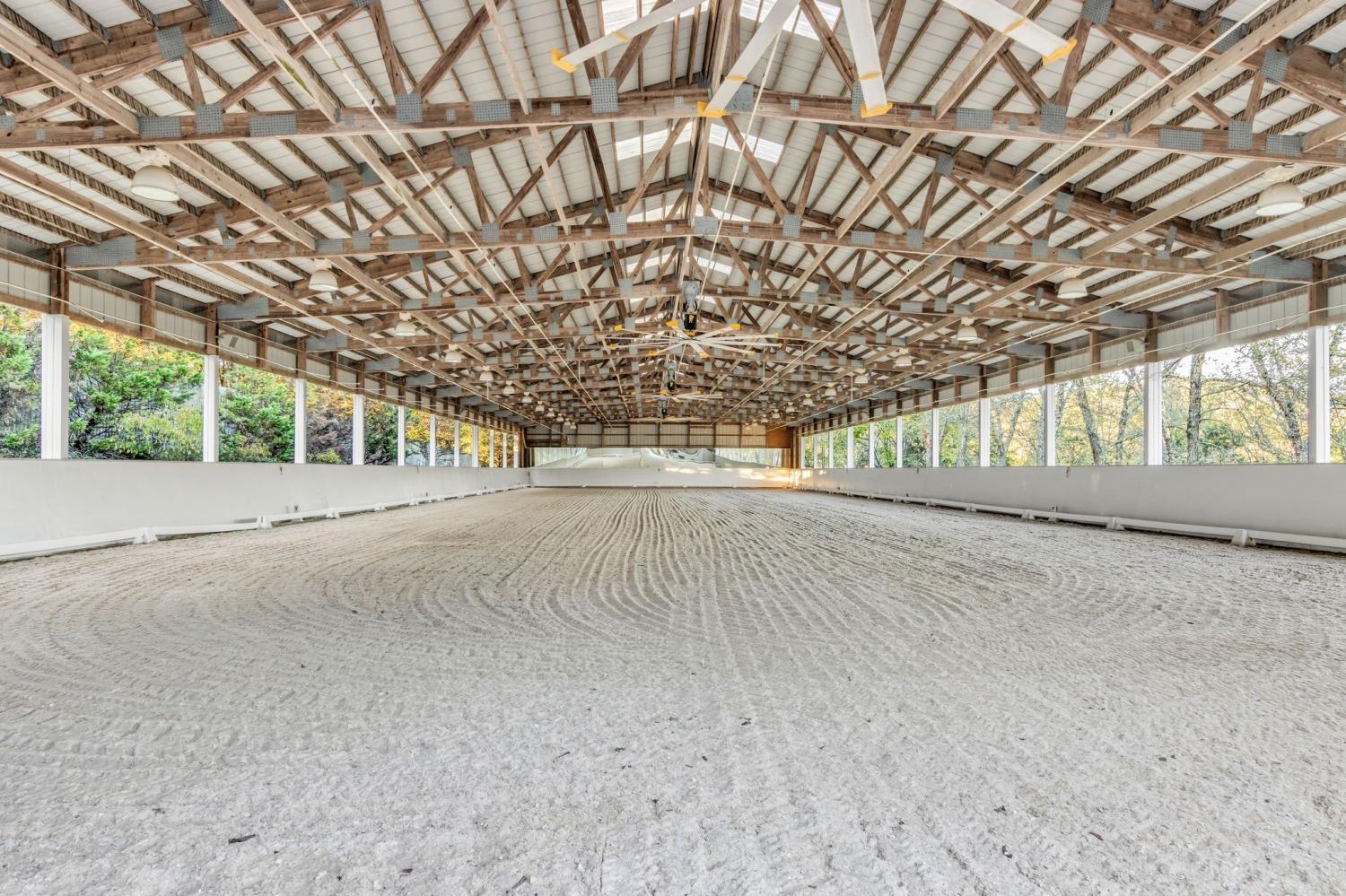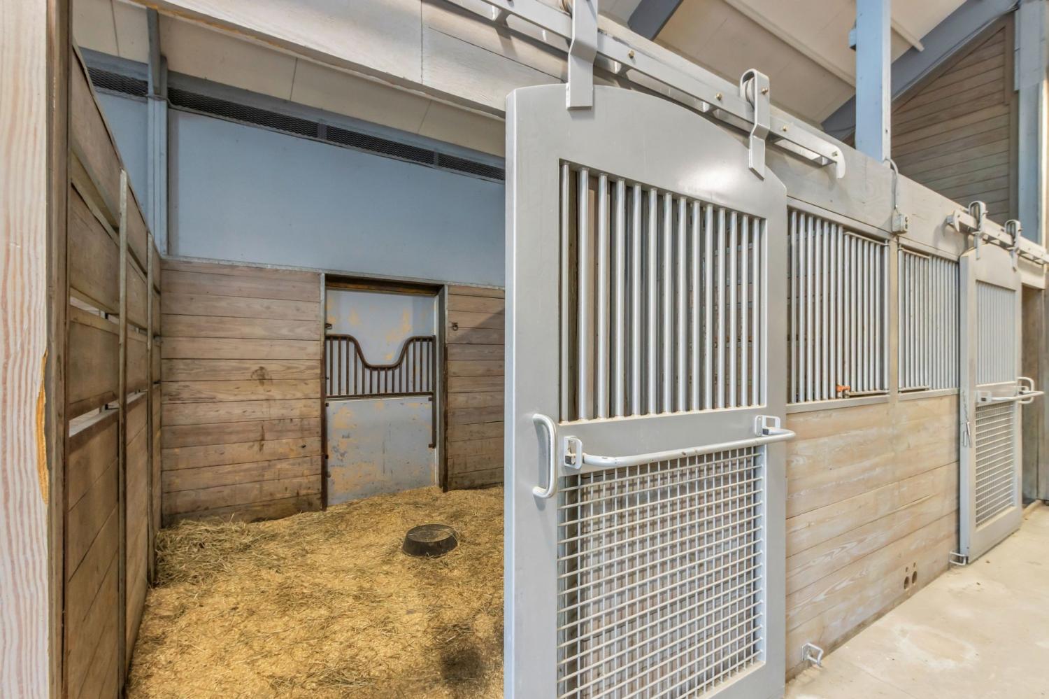 Private Gated State of the Art Equestrian Facility Nestled in A Quiet Community. Beautiful Established Tree Lined Entry Drive with Level Fenced Pastures. Indoor and Outdoor Arena. Two Barns with 41 Oversized Stalls, Indoor Arena with Watering System, 6 Stall State Certified CEM Quarantine Barn. Beautiful Contemporary Home Two Story Home Above Large Storage Area. Contemporary Home with Great Room with Wall of Windows and Fireplace Open to Chef's Kitchen and Dining Area. Primary Bedroom with Spa Bath with Soaking Tub, Walk-in Marble Shower, Double Vanity and Walk-in Closet. 2 Additional Bedrooms, Full Bath and Laundry Room. Designer Lighting. 2 Cottages Each with Kitchen and Bath. Ample Land to Build an Estate Home. Additional 200+ feet of Land at Back of Property Beyond Fence. Property offer Serenity and Privacy with all the Conveniences Located Just Minutes Away. Note Main Floor Footage is Barn/Garage Area.