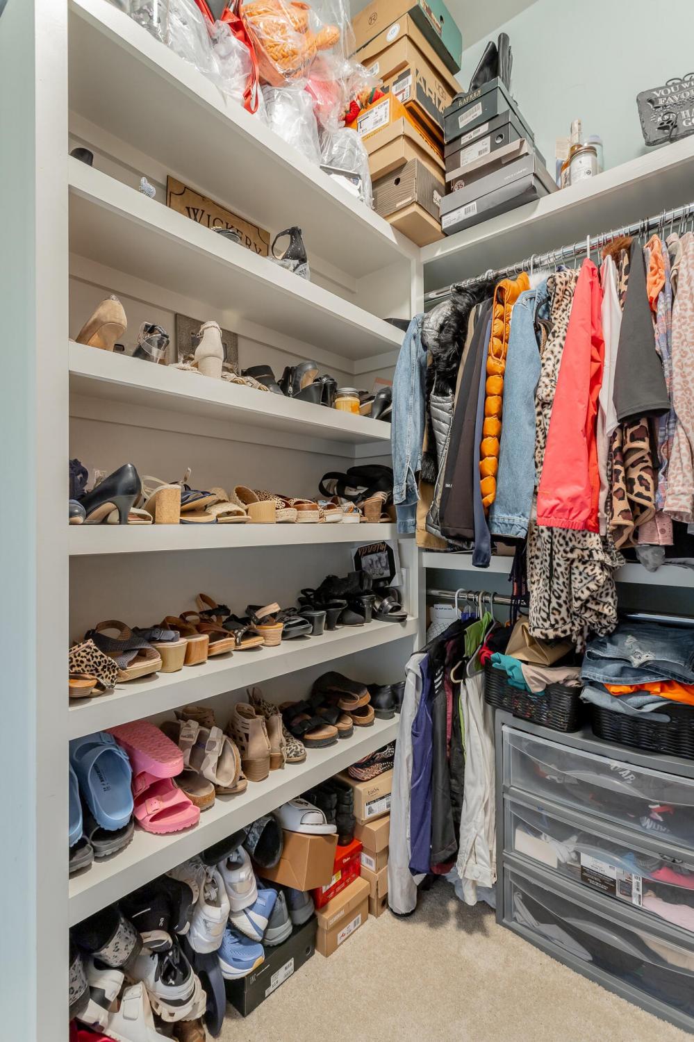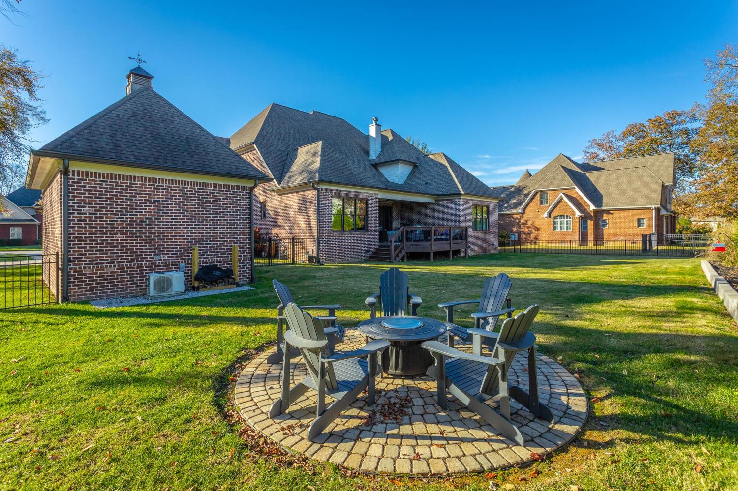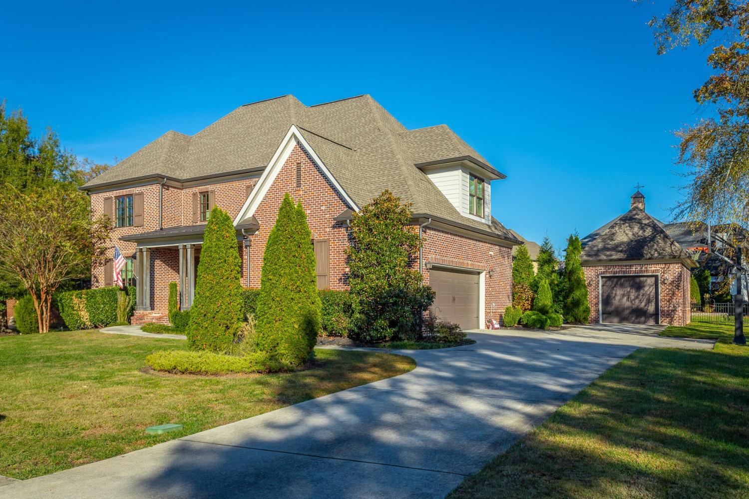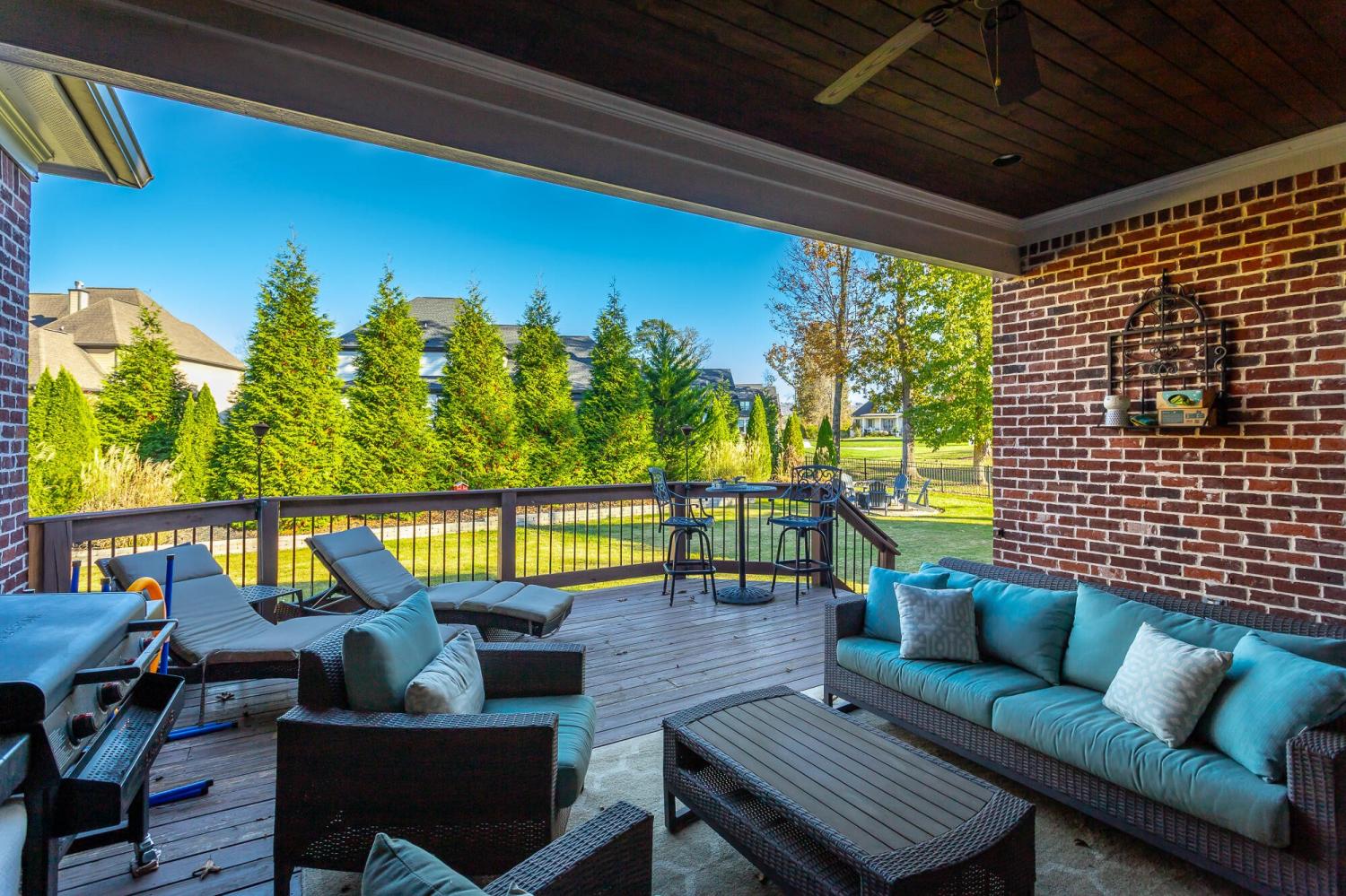 Fantastic floor plan in the desirable gated Hampton Creek golf course community in the heart of Ooltewah. This home simply exudes curb appeal with its dark brick exterior, covered front porch and mature landscaping. It also has a fenced back yard, an attached double garage and a detached single garage. Boasting 5 bedrooms (two of which are on the main level) and 4.5 baths, this home will appeal to a variety of lifestyles. Your tour of this elegant, yet comfortable home begins with the dedicated foyer that leads to the formal dining room on the right and the hallway to the great room, kitchen and breakfast area just ahead. The dining room also adjoins the open living areas via a convenient butler's pantry that also has access to a large walk-in pantry. The great room has a vaulted and beamed ceiling, a wood burning fireplace with a gas starter, 2 sets of French doors to the covered deck and is open to the kitchen. The kitchen has a large center island with an extra sink and disposal and pendant lighting, granite countertops, custom cabinetry with soft close drawers, under-counter microwave, under-cabinet lighting, stainless appliances and is open to the breakfast area. The breakfast area has access to the covered deck providing a nice flow for indoor-to-outdoor entertaining. The laundry room and the garage are just off the kitchen which is perfect for everyday living and loading and unloading, and the powder room is centrally located off the foyer. The primary suite is tucked away on the back side of this level and boasts a specialty ceiling, door to the covered deck and double door entry to the primary bath with coffee bar, 2 walk-in closets, a water closet, as well as separate vanities, a free-standing tub and a shower with tile and glass surround. The 2nd main level bedroom also has a private bath and is perfect for your overnight guests.