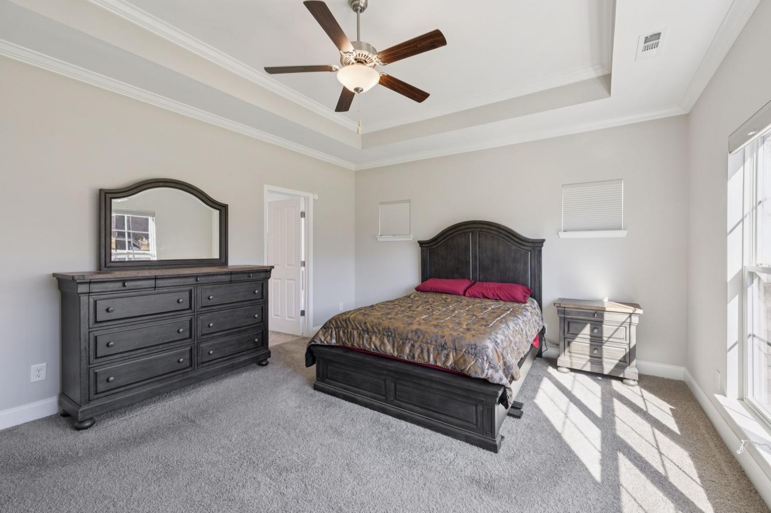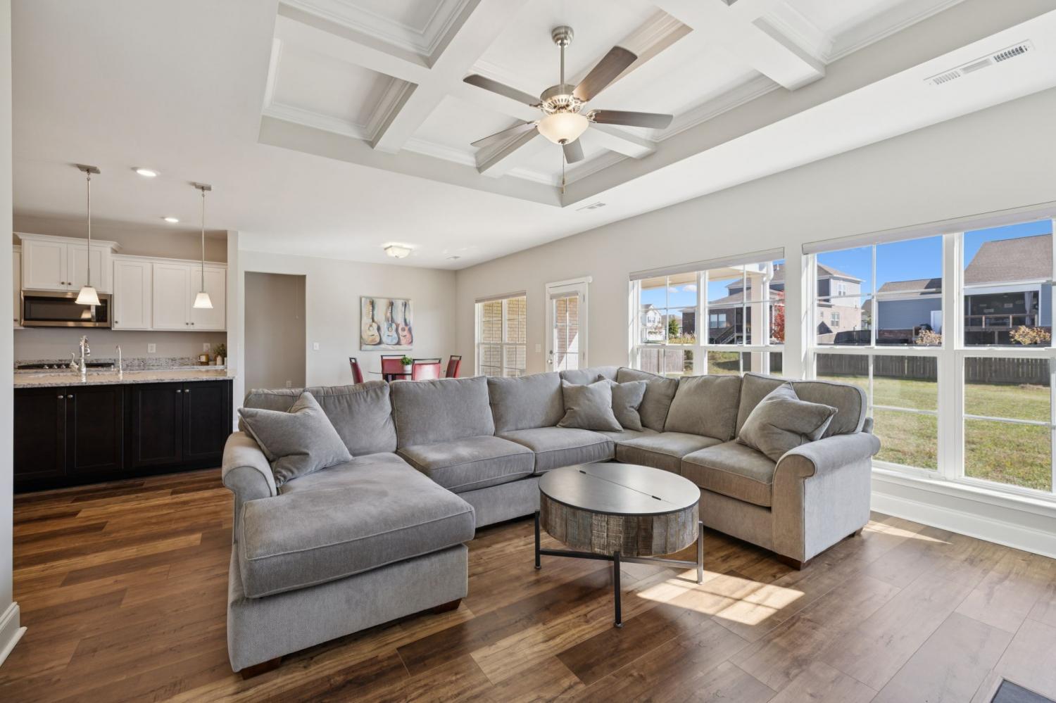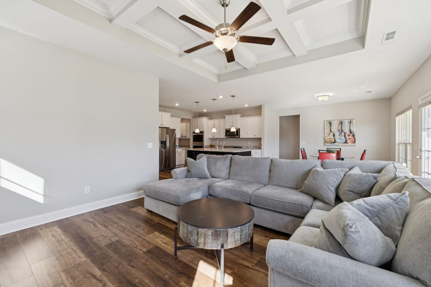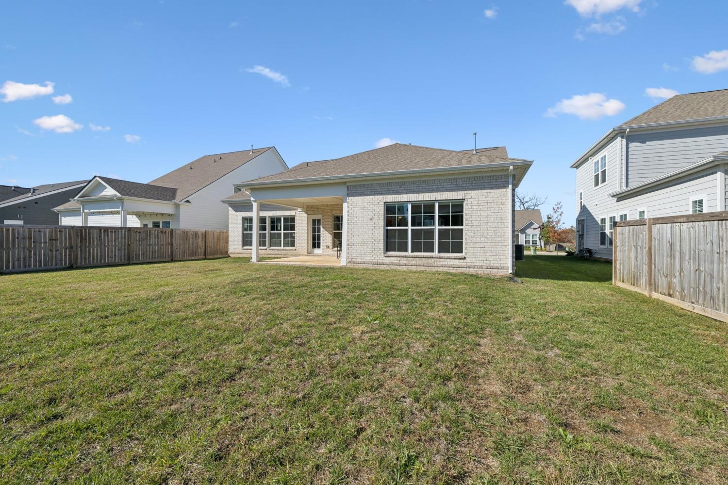 Welcome home to this beautiful all-brick, single-level residence in the heart of Spring Hill! The inviting covered front porch opens into a bright, open-concept floor plan ideal for both everyday living and entertaining. The spacious kitchen is the centerpiece of the home, featuring granite countertops, stainless steel appliances, a gas cooktop, double ovens, and an oversized island that provides ample prep and seating space. White cabinetry, pendant lighting, and warm wood flooring add to the home’s modern yet inviting aesthetic. The kitchen flows seamlessly into the dining area and living room, creating the perfect layout for entertaining or simply relaxing at home. The living room showcases a stunning coffered ceiling and a cozy fireplace that anchors the space with character and warmth. Large windows fill the home with natural light, while cellular blinds throughout add privacy, comfort and energy efficiency. Enjoy easy indoor-outdoor living with a covered patio overlooking the backyard—ideal for morning coffee or evening gatherings. All stainless kitchen appliances, along with the washer and dryer, remain with the home. Located in a desirable Harvest Point, a Spring Hill neighborhood that offers a community pool, playground, walking trail and a dog park.