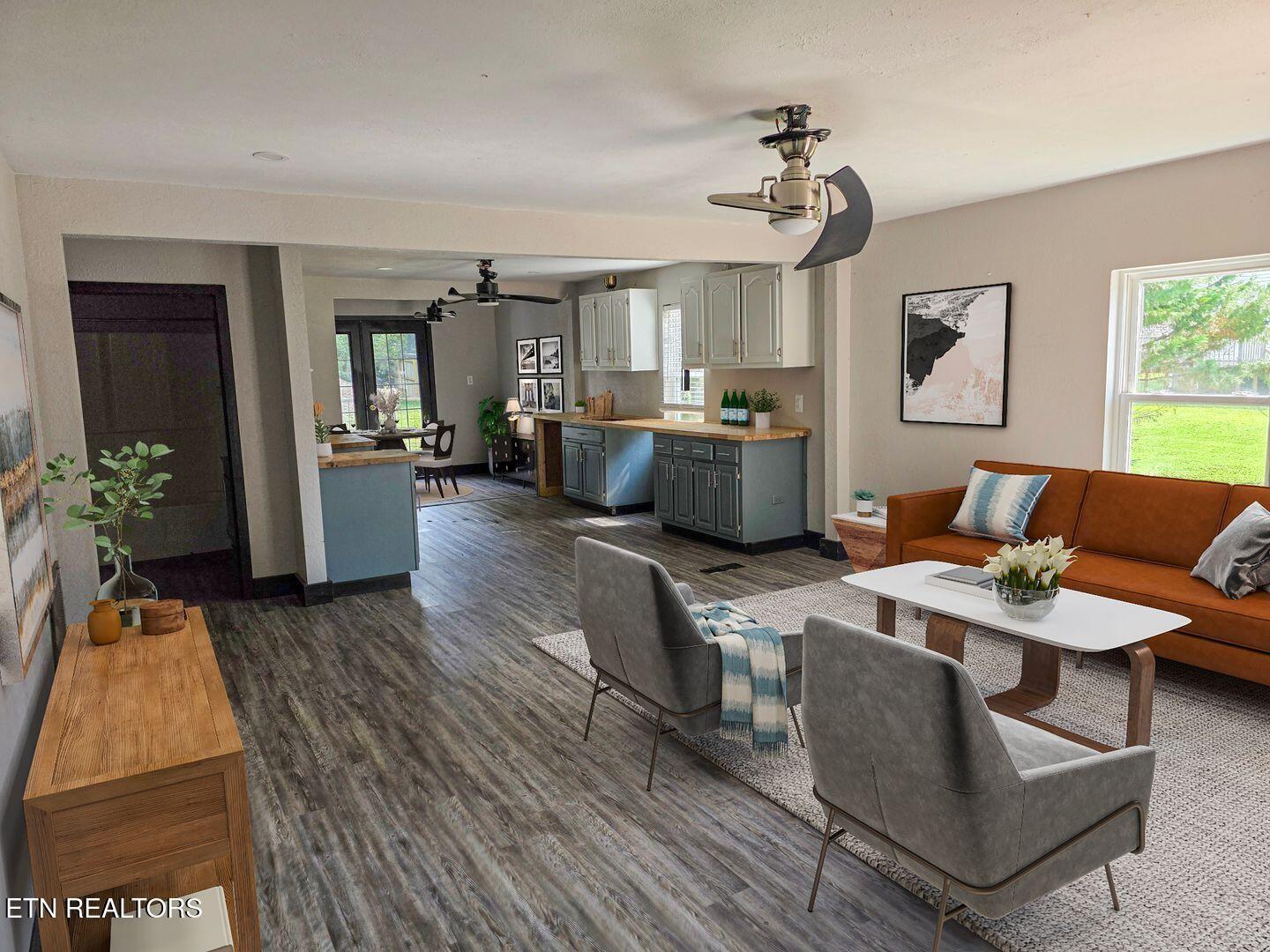 GREAT Opportunity to own a three bedroom 2 bath home in the middle of Alcoa laminate flooring throughout, open floor plan, front and rear decks, garage space at the rear and a nice level back yard for the kids to play in. This charming ranch home can become an eye stopper by adding some personal touches. Great neighborhood close all of downtown Alcoa and Maryville and the Airport. ALL OFFERS must be submitted through : wwwPropoffer.com. To help visualize this home's floor plan and to highlight its potential, virtual furnishings may have been added to photos found in this listing