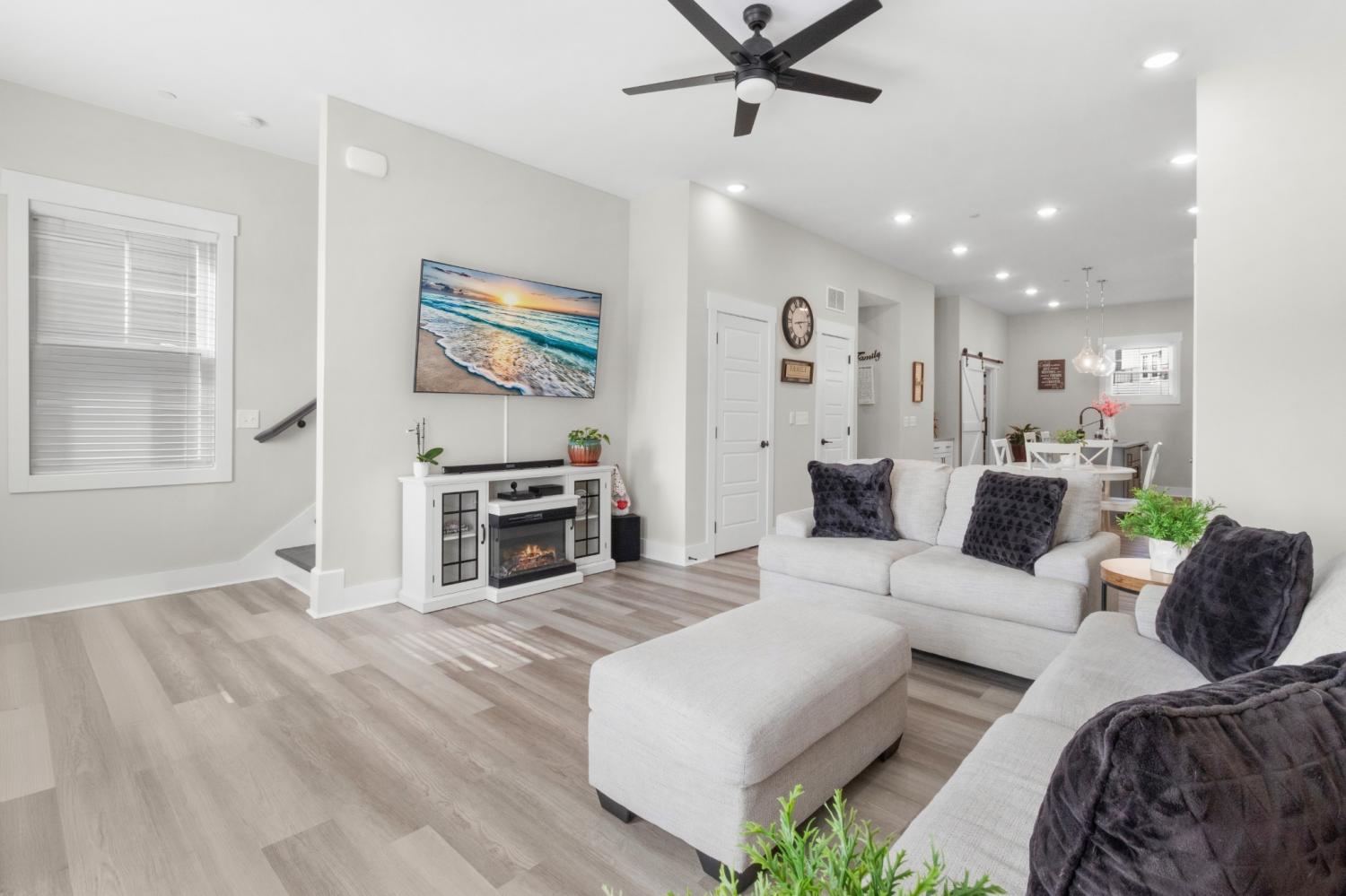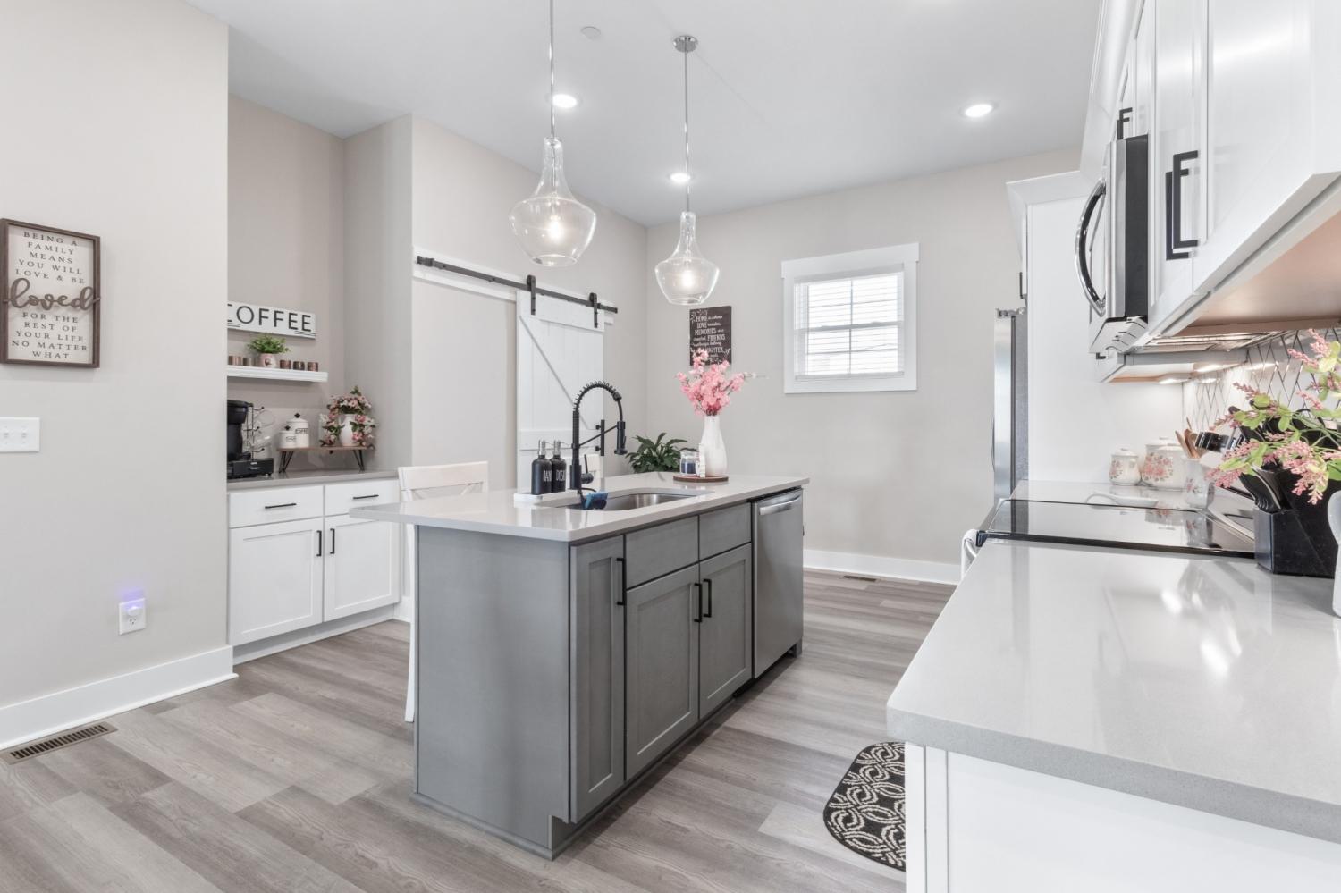 SELLER OFFERING $10,000 towards buyers concessions! Pleasant View Village- located just 25 minutes from NASHVILLE and CLARKSVILLE and features a community garden, restaurants, playground and more. Enjoy live concerts & farmers markets during summer and fall seasons as well!Stunning newer construction, only one year old, end-unit townhome with 3 bedrooms, 3.5 baths and a 2-car garage! This home has a beautiful kitchen with white cabinets, quartz countertops, tile backsplash and a spacious pantry to die for not to mention 10-foot ceilings, designer lighting, luxury vinyl flooring, a main level bedroom/or office and 2 front balconies, what more could you want? Stackable NEW washer/dryer remain. If you are looking for a beautiful new home at an affordable price in a vibrant, walkable mixed use community . . . this is it! www.pleasantviewvillagetn.com