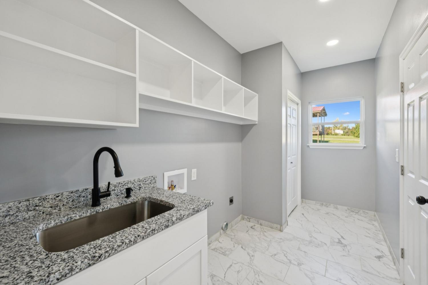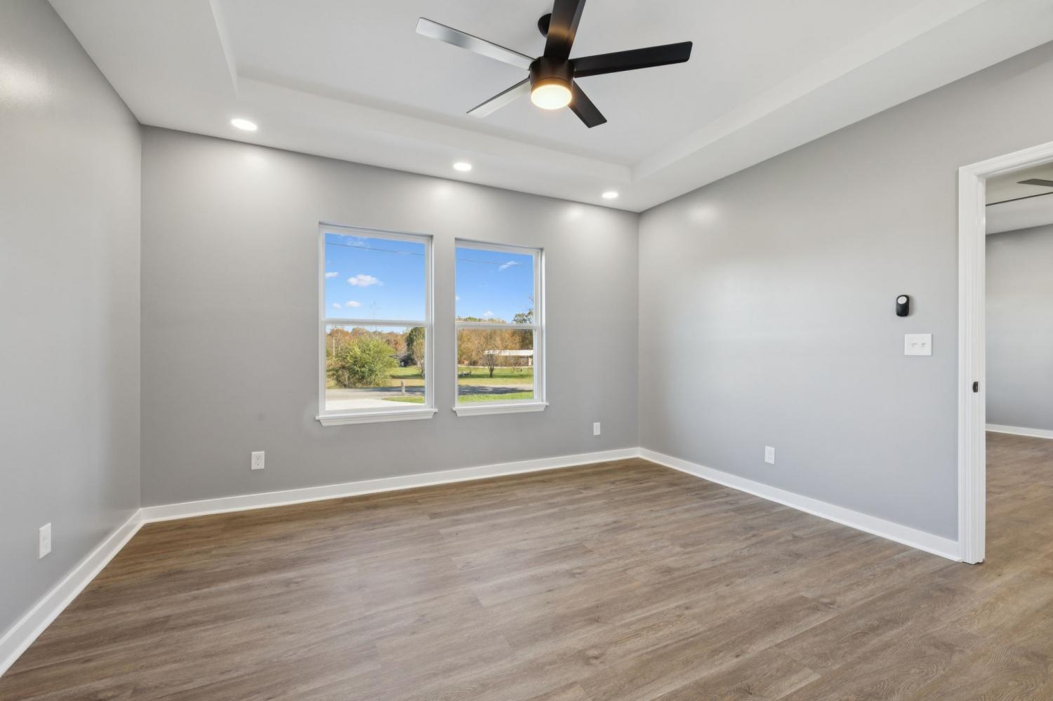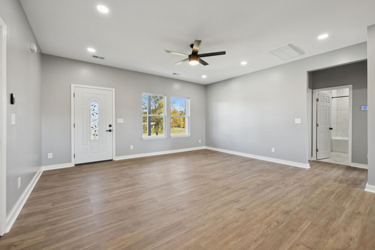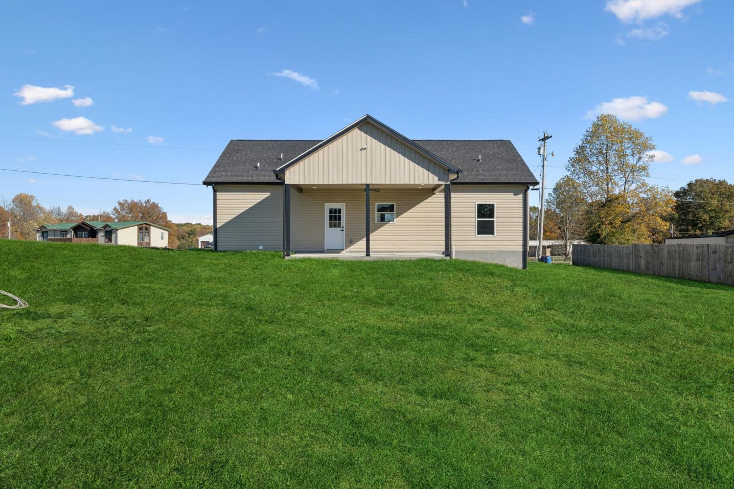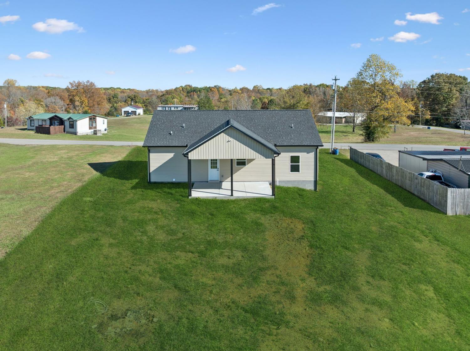 Save up to 1% of your loan amount as a closing cost credit when you use seller's suggested lender! Discover modern country living in this beautifully designed one-story home situated on over half an acre with no HOA! Featuring a split bedroom floor plan and stylish finishes throughout, this home is truly move-in ready. Step inside to an open-concept layout with a spacious living room that seamlessly flows into the dining nook and kitchen. The kitchen boasts gray soft-close cabinetry, granite countertops, a tiled backsplash, and stainless steel appliances. Enjoy low-maintenance living with vinyl flooring throughout the home and tile in all bathrooms and the laundry room—no carpet anywhere. The primary suite offers a coffered ceiling and an ensuite bathroom with double vanities, a tiled walk-in shower, and a large walk-in closet with built-in shelving. Two additional bedrooms feature generous closets with built-in shelves and share a full bathroom. Relax outdoors on the covered front porch or unwind on the covered back patio overlooking the expansive backyard and open land views. This home combines peaceful living with modern comfort—all within a short drive of Nashville.