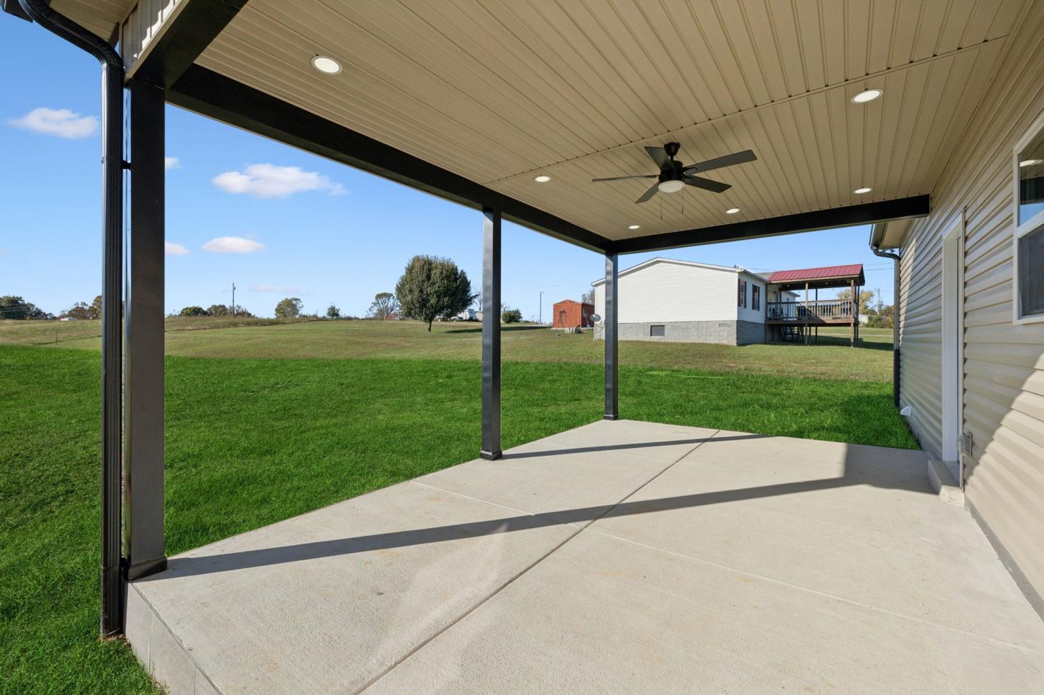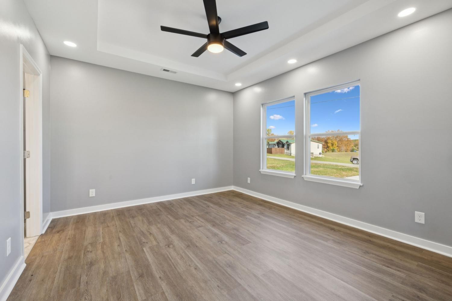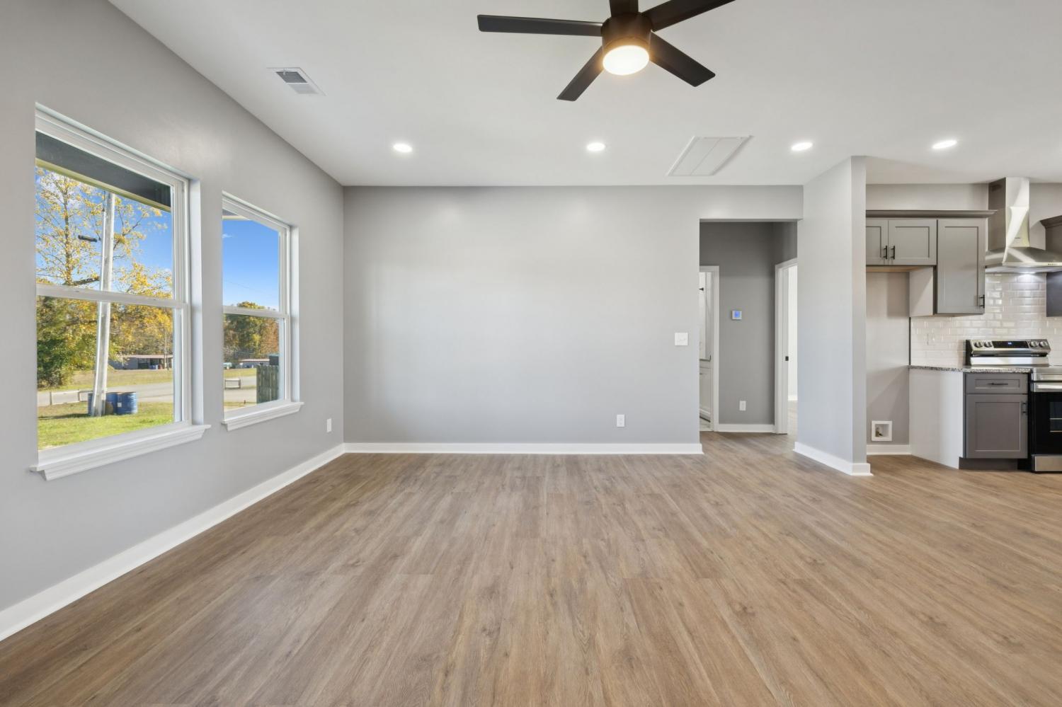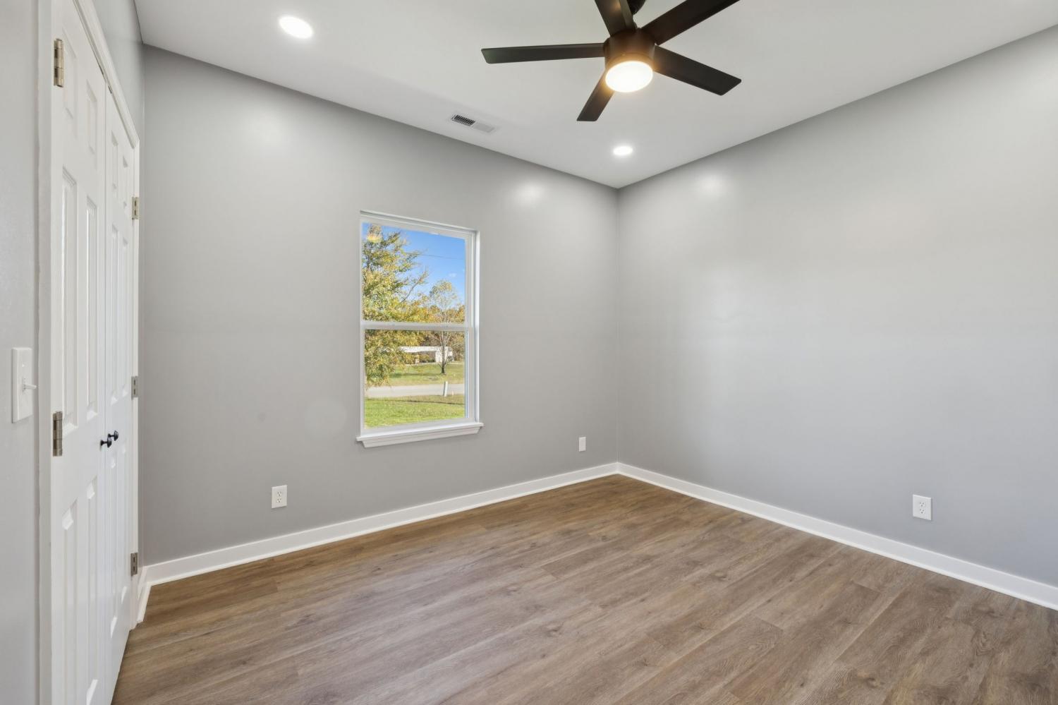 Save up to 1% of your loan amount as a closing cost credit when you use seller's suggested lender! Discover modern country living in this beautifully designed one-story home situated on over half an acre with no HOA! Featuring a split bedroom floor plan and stylish finishes throughout, this home is truly move-in ready. Step inside to an open-concept layout with a spacious living room that seamlessly flows into the dining nook and kitchen. The kitchen boasts gray soft-close cabinetry, granite countertops, a tiled backsplash, and stainless steel appliances. Enjoy low-maintenance living with vinyl flooring throughout the home and tile in all bathrooms and the laundry room—no carpet anywhere. The primary suite offers a coffered ceiling and an ensuite bathroom with double vanities, a tiled walk-in shower, and a large walk-in closet with built-in shelving. Two additional bedrooms feature generous closets with built-in shelves and share a full bathroom. Relax outdoors on the covered front porch or unwind on the covered back patio overlooking the expansive backyard and open land views. This home combines peaceful living with modern comfort—all within a short drive of Nashville.