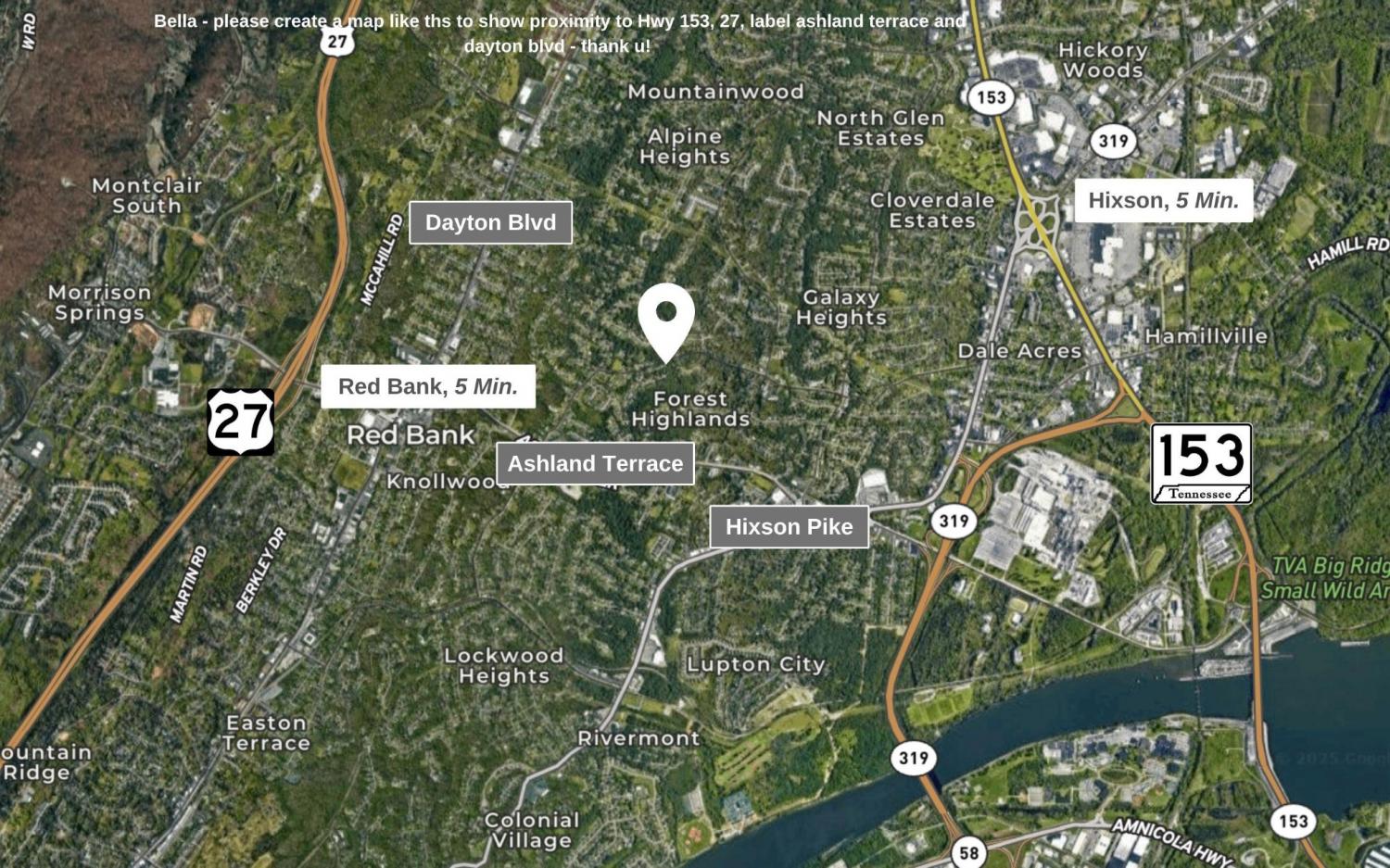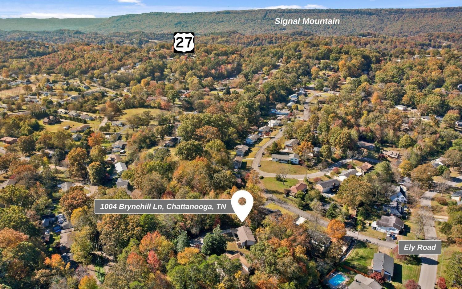 From Downtown Chattanooga: Take Hwy 27 N. Take the Morrison Springs Road exit, turn R toward Red Bank. Use the middle lane to turn L onto Dayton Blvd. Turn R onto Ashland Terrace. Turn L onto Ely Rd. Turn R to stay on Ely Rd. Turn L onto Brynehill Ln. Home will be in the cul-de-sac.