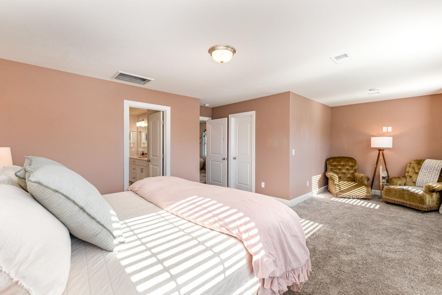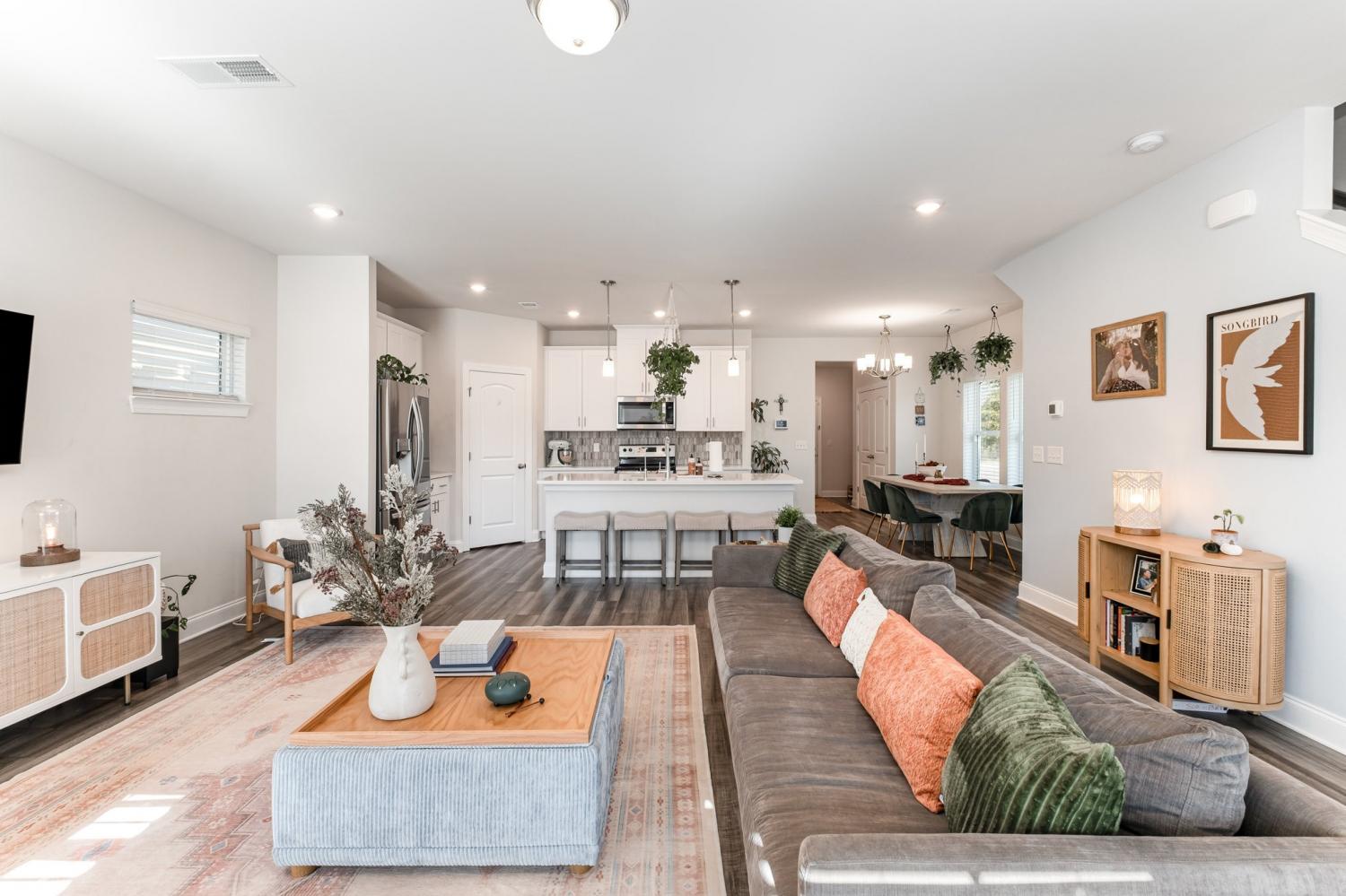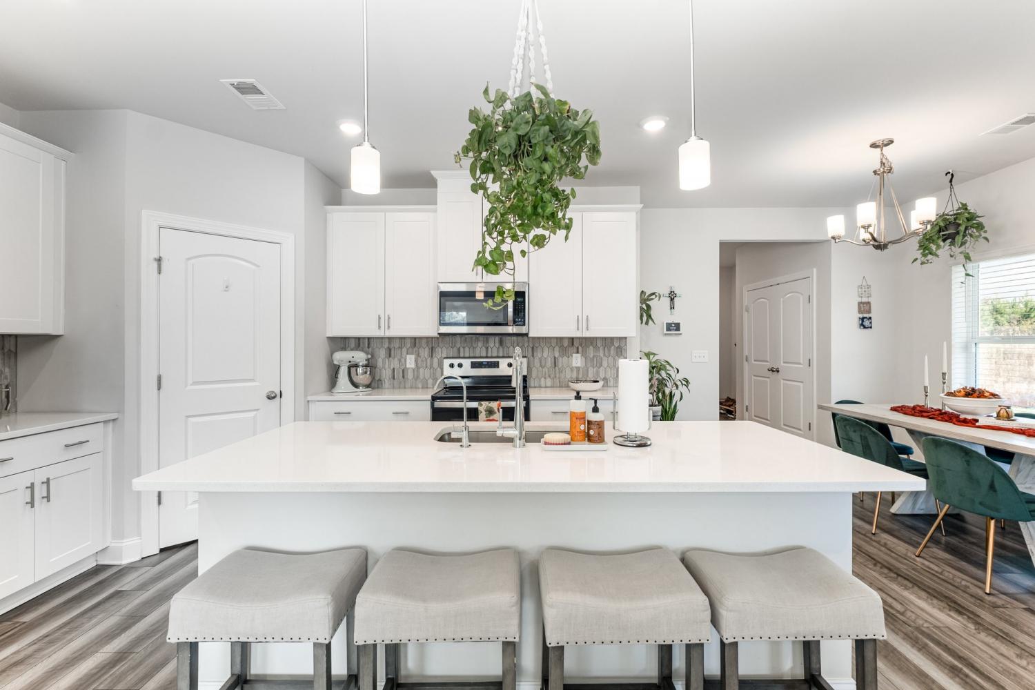 4.875% Assumable FHA with Roam! Welcome to your dream home! Built in 2021, this stunning 5-bedroom, 3-bath corner residence blends modern comfort with thoughtful design and a perfect location near walking trails, dog parks, shops, and everyday amenities. Step inside to an open floor plan filled with natural light and elegant details throughout. The heart of the home is the chef’s kitchen, featuring an oversized quartz island, sleek cabinetry, and premium finishes — perfect for entertaining or family gatherings. Enjoy the ease of a soft water system throughout the home and tile floors and showers in all bathrooms for a clean, modern touch. The main floor includes a convenient in-law suite and full bath, offering flexibility for guests or multigenerational living. Upstairs, relax in your oversized primary bedroom with a cozy sitting area, the ideal retreat after a long day. A spacious open loft provides even more room for a home office, play area, or media space. Outside, you’ll love the full landscaping, covered front porch, and two-car garage for convenience and curb appeal.