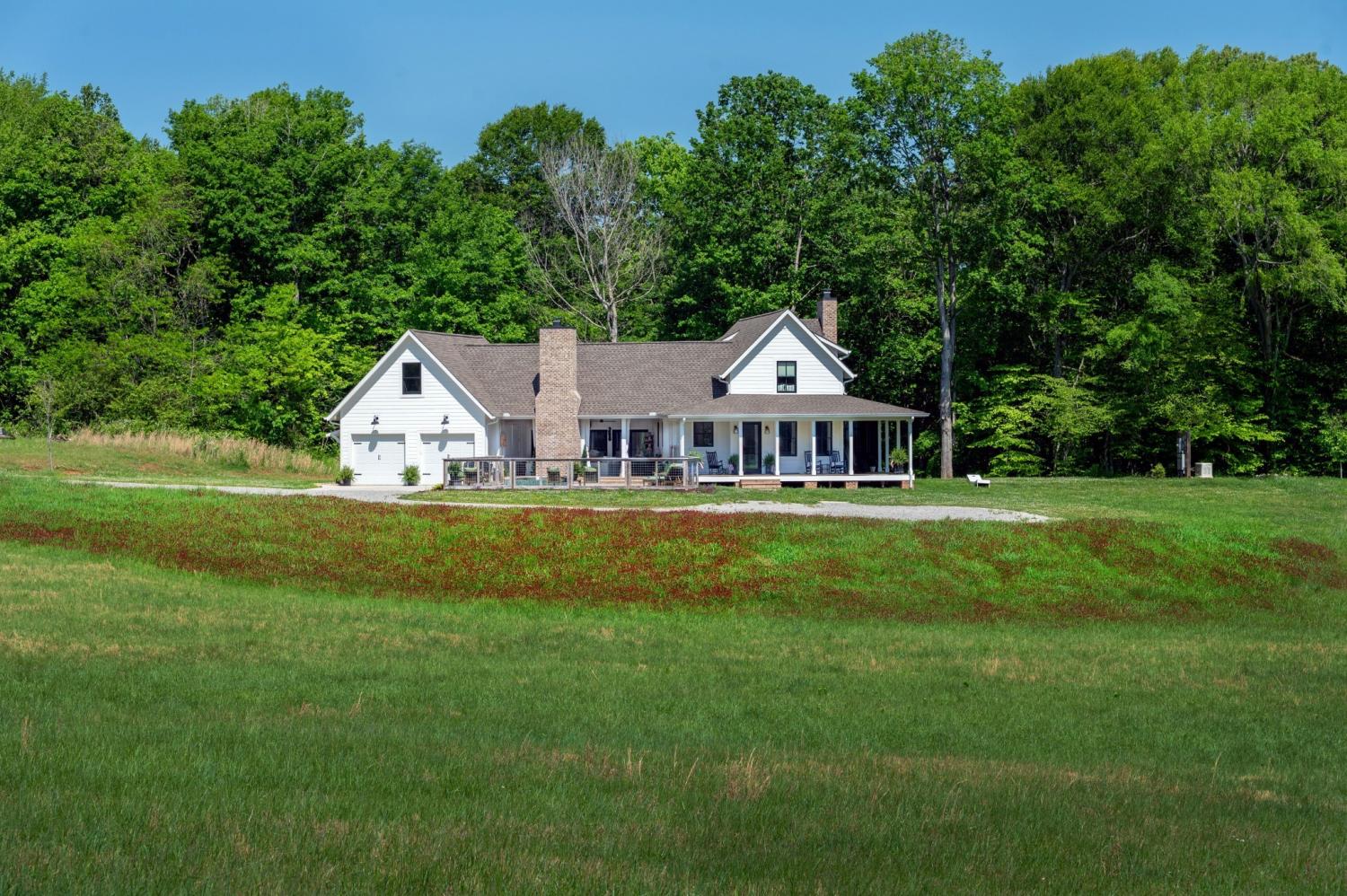 Private Riverbluff Estate on 20+ Acres — Your Personal Countryside Retreat! Welcome to this beautifully crafted custom home nestled along the river and surrounded by more than 20 acres of serene countryside, where luxury meets livability. With spacious surround porches, beautiful covered porches with an outdoor fireplace, outdoor kitchen, pool and hot tub. It's your perfect retreat YEAR-ROUND! Whether it is your primary or vacation home, it is designed for both comfort and connection, this exceptional property offers 4 bedrooms—including 2 private suites—plus an in-law suite and a flexible bonus room ideal for guests, multi-generational living, or a home office. The chef’s kitchen is a true showpiece, featuring a Dacor dual-fuel range, Bosch 800 Series dishwasher and drawer microwave, a built-in Thermador coffee maker, and a KitchenAid ice maker in the wet bar perfectly positioned between the kitchen, living room, and primary suite. Additional highlights include a drive-in access for mower or ATV storage, and a rejuvenated barn/stable ready for animals or hobbies. From the quality cabinetry and high-end finishes throughout to the breathtaking views and peaceful privacy, every detail of this home has been thoughtfully curated for an unparalleled lifestyle. This one-of-a-kind retreat is a must-see—schedule your private tour today!