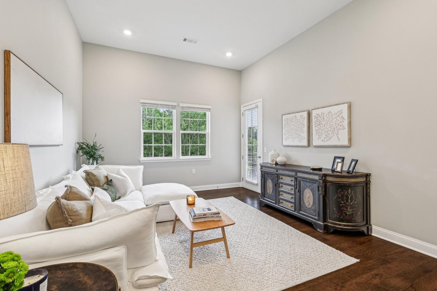 Welcome home to this stunning top-floor/corner condo in the heart of Franklin! Both Enjoy your quiet and peaceful mornings and evenings on one of your two balconies overlooking greenspace and a farm that is unique to this condo. No neighbors above you. Built in 2022, this premium 2-bedroom, 2-bath home offers bright, open living with high ceilings(only available on 3rd floor), custom closets, upgraded bathroom lights/fixtures/mirrors, upgraded kitchen lights, and stylish finishes throughout. Enjoy cooking in the modern kitchen, relaxing in the spacious living area, or sipping coffee on one of your two private balconies(only available on corner unit). You'll love the ease of elevator access—no stairs needed! Personal storage unit on first floor of the building. The Shadow Green community features resort-style amenities including a pool, pavilion, walking trails, and more. All just minutes from downtown Franklin’s shops, dining, and charm. Easy, elegant living in one of Middle Tennessee’s most sought-after locations. Shelves can convey with storage unit.
