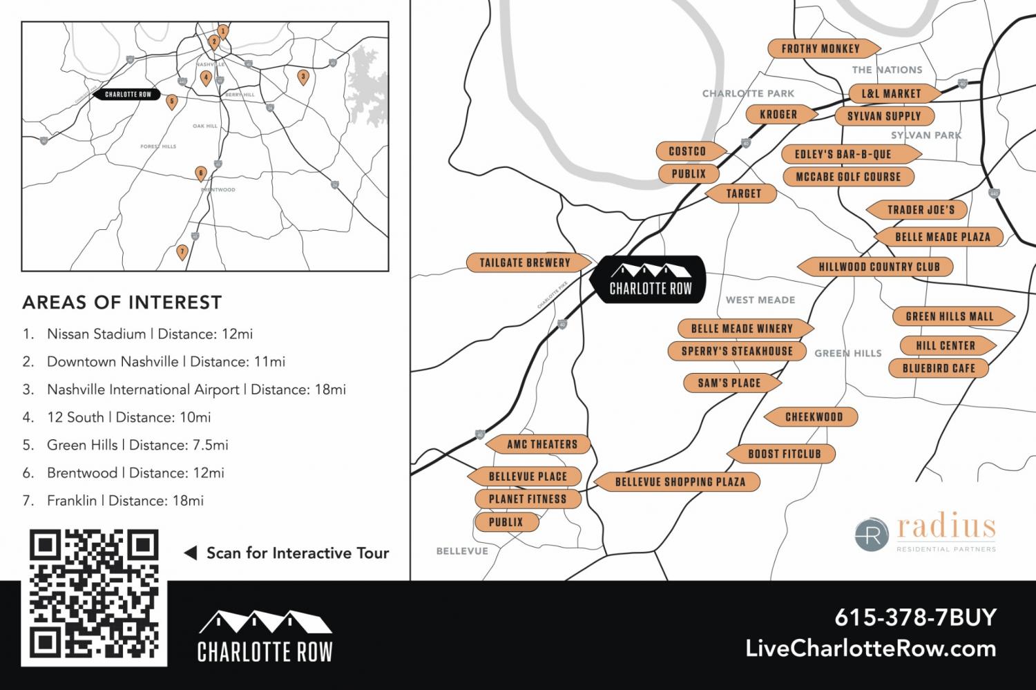 40 West to Old Hickory Blvd Exit. Turn Right onto Old Hickory Blvd to Charlotte Pike. Turn Right onto Charlotte Pike. Charlotte Row will be on your right,