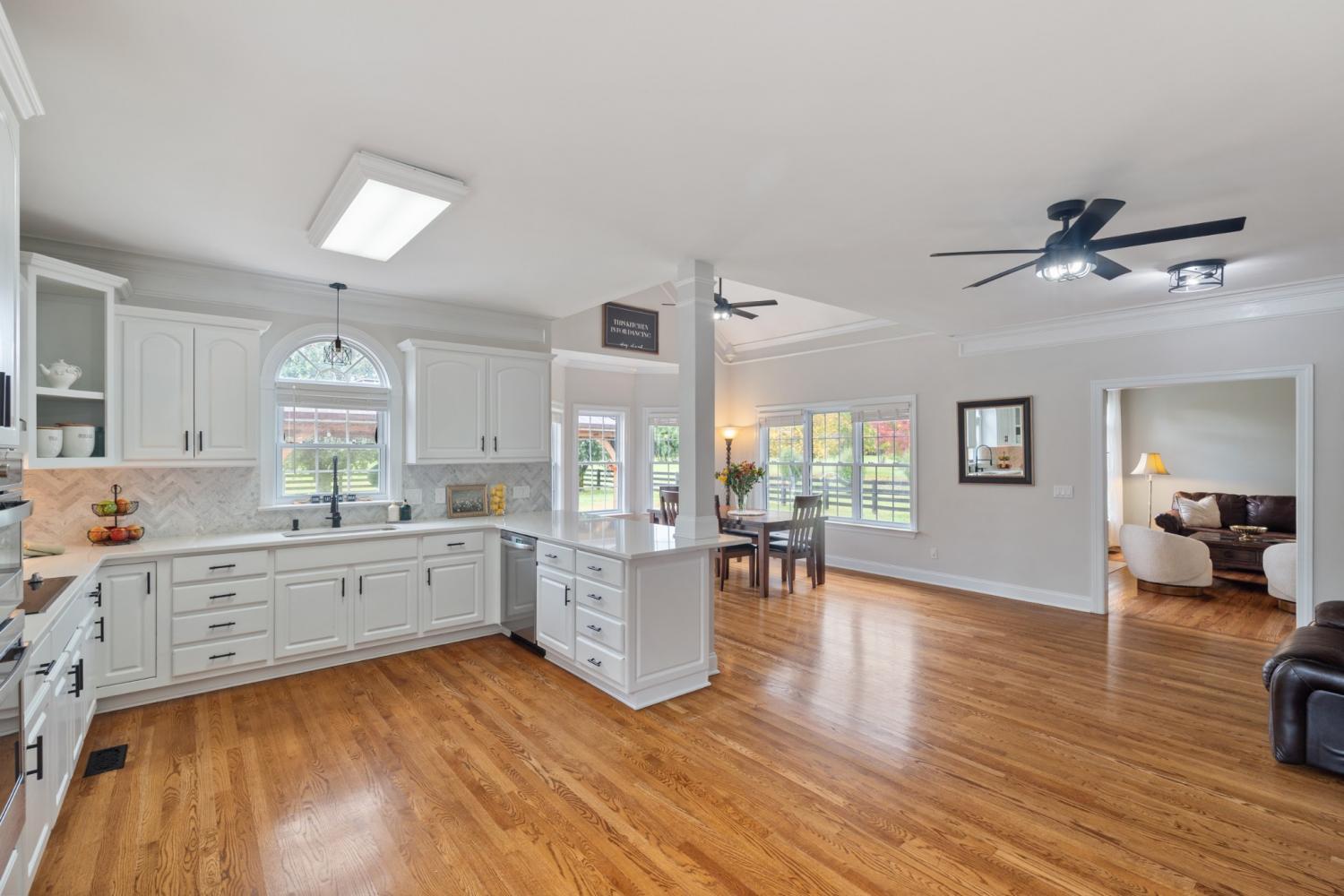 Discover comfortable living and timeless design in this spacious 5-bedroom, 4-bath home with 2 half baths, offering over 5,100 sq ft on two level acres in Murfreesboro. Designed for both everyday living and easy entertaining, this home combines generous spaces with a warm and welcoming feel. Inside, you’ll find a bright, open layout featuring multiple gathering areas, including a formal dining room, a family room with vaulted ceilings and large windows overlooking the peaceful backyard, and private office for remote work days. The renovated kitchen is a true highlight—featuring quartz countertops, stainless appliances, updated lighting, and abundant storage—with an adjoining breakfast area ideal for casual meals and conversation. The main-level primary suite offers comfort and privacy with an adjoining bath, dual vanities, and a spacious walk-in closet. Upstairs, three additional en-suite bedrooms and a large bonus room provide flexibility for guests, hobbies, or a media space. Newer French doors and fresh landscaping enhance the home’s appeal inside and out. Set on over two acres with mature trees with a fenced in yard. The property provides space to garden, play, or simply relax on the covered patio. The expanded driveway and extra parking areas make hosting easy and provide convenience for multiple vehicles, boats, or recreational equipment. Garage is a 4-car tandem style. Located just minutes from shopping, dining, and I-840 access, this home offers the perfect blend of space, privacy, and accessibility—move-in ready with thoughtful updates and room to make it your own.
