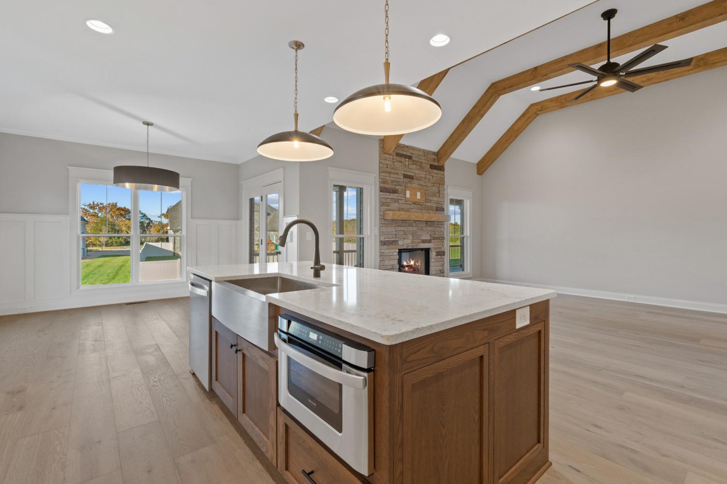 $10,000 toward closing cost and/or rate buy down with Preferred Lender. Exceptional Quality Construction by Eastland Construction Inc. Highland Point Plan, Great 4BR/4Bath plan, Living rm w/ Stone Gas Fireplace & Wood Beams. Hardwood Floors In Living Rm, Kitchen, Eat-In, & Primary BR, Kitchen with Custom Maple Cabinets, Tile Backsplash, Hardwood Floors, Quartz tops, Double Ovens, Microwave, and Dishwasher, Primary BR on Main Level with Large Bath w/ Separate Shower and Large Tub, Double Vanities, & Custom Wood Walk-In Closet. Tile in Baths and Full Utility Rm, 23x18 Recreation Rm w/ built-ins & pre-wired Surround Sound, Oversized Utility Rm, Tankless Water Heater, All Bedrooms have a Full Bath, Irrigation System with all SOD yard, Covered Back porch, and Open Patio Area, Much More!