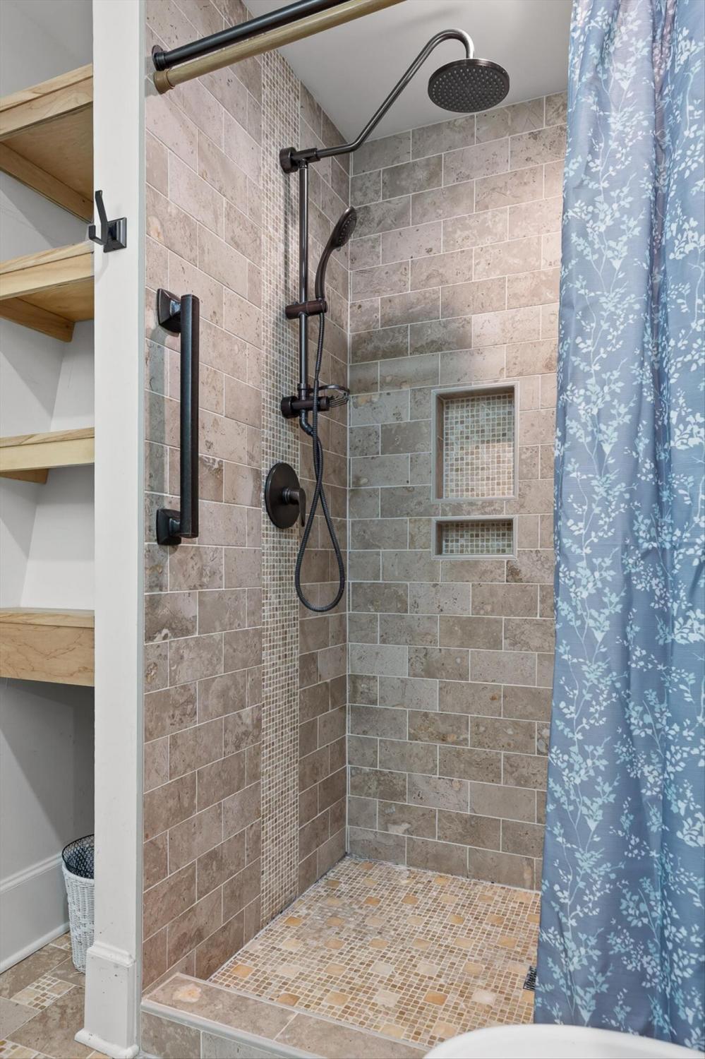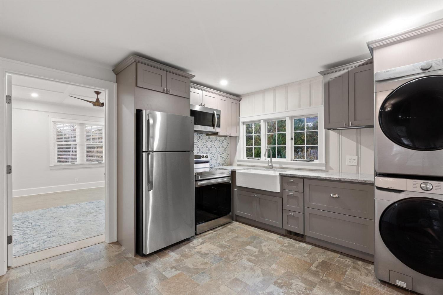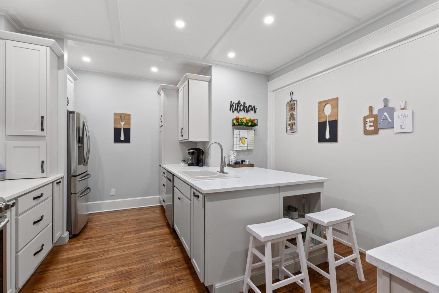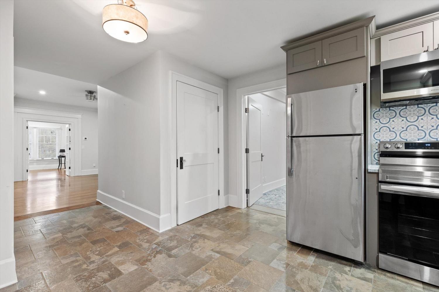 Welcome to 330 Crestway Drive, tucked inside the historic Brainerd Crest community and just minutes from Downtown Chattanooga. This home was taken down to the studs and rebuilt in 2019 with a clear mission: preserve every bit of its original charm while bringing the entire property up to modern standards. Before the renovation even began, all of the original interior doors, wood window sashes, glass knobs, brass hardware, the fireplace mantel, porch swing, and the classic wood paneling were carefully removed, protected, and then reinstalled so the character of the home stayed intact. From the street, the home has a presence you can feel. The architecture pairs perfectly with a professionally designed outdoor space featuring outdoor dining areas and a brick courtyard that gives the property an almost storybook feel. Step inside and you'll immediately notice the tall ceilings and custom-milled oak flooring that runs throughout. The main level offers a formal living room with a direct-vent gas log fireplace, pantry, a kitchen that is spacious, bright, and designed with function in mind—featuring a second wall oven and microwave, wine and beverage center, deep counters, custom metal range hood, light cabinetry, quartz countertops, and a crackle-glaze tile backsplash. The breakfast bar seats two, and the classic porcelain cast-iron sink. A Unique Feature of This Home: The main level currently features a separate living space, with a bedroom, full bath, kitchen and laundry, all wheelchair accessible from the side exterior entrance. A temporary interior wall was added between the main kitchen and the original formal dining room to create a fully separate living space—perfect for a mother-in-law suite or even a rental opportunity. This wall does not contain any plumbing or electrical and was only installed to divide the space. The formal dining room essentially became the living room for the separate suite but could easily be restored to its original purpose.