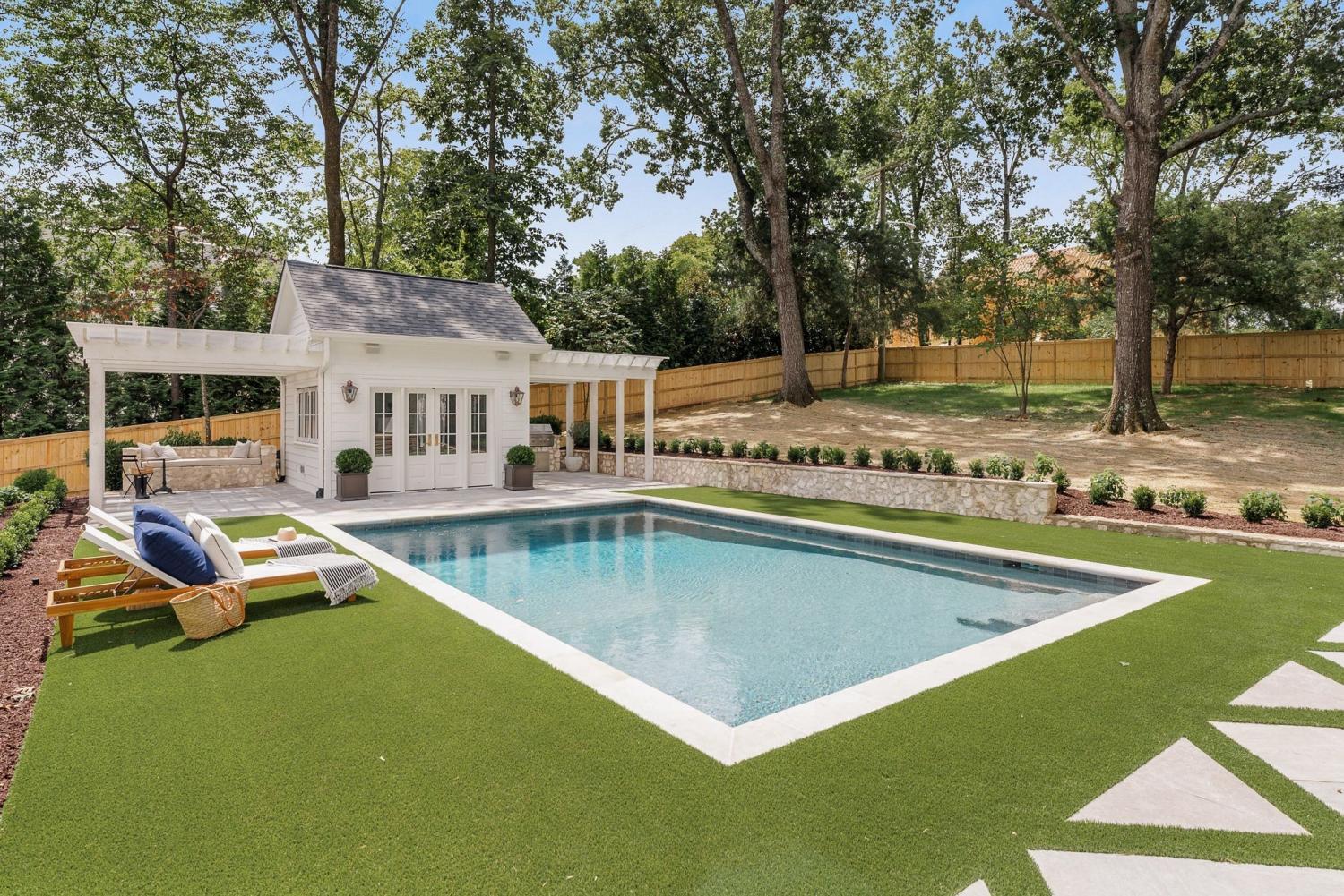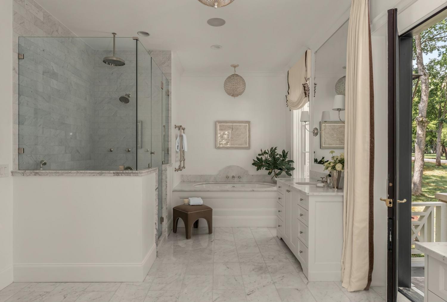 Welcome to 6137 Bresslyn Rd., a gated home created by Manor Designs in beautiful West Meade. Nestled on a spacious .97 acre corner lot you will be swept away under a canopy of trees to a french country inspired home that is nothing short of breathtaking. Every detail reflects elegance, comfort & livability. The beauty starts outside where you are welcomed by a grand stone staircase and gas lanterns setting the tone for the custom finishes found throughout including three fireplaces, curated lighting, built in speakers in several zones, custom draperies & top of the line materials and appliances that elevate daily living. Ground level offers EV charging outlet in garage while inside sits a theatre, guest bedroom & bath, french cobblestone floored mudroom with elevator to main floor. Once on the main level enter into the light filled luxury gourmet kitchen & living room that opens seamlessly to the full length all season veranda with built in smart enabled heaters, fans & stone fireplace that leads to a large backyard with pool & pool house. Pool house includes, built in kitchen & dining while inside offers heated and cooled sitting area with bathroom & changing room. Back inside your main level you will find a powder room w/ italian calacatta marble sink, dining room, office , 1 of 2 laundry rooms, primary suite w/fireplace & primary bath that offers heated flooring, custom closet, marble surround tub with stunning balcony. Upstairs includes 5 bedrooms all with a uniquely designed bathroom, secondary laundry & living space with custom built-ins. Outside the possibilities are endless from a garden, to a sport court or anything you can dream . This is more than a home, it's a lifestyle of refinement, ease and unforgettable gatherings.