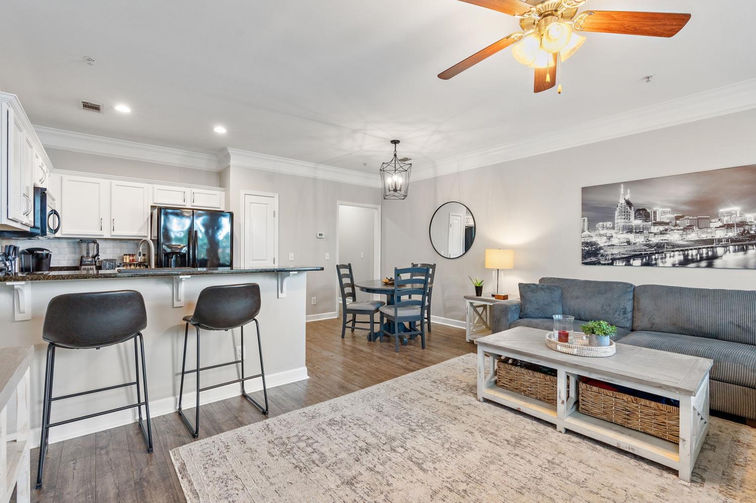 Discover this surprisingly spacious (UNFURNISHED) 1B/1B condo offering 864 sq. ft. of stylish living in one of Nashville's most desirable locations. Step inside to find new wood flooring throughout, freshly painted cabinets, new HVAC and new tile flooring in the bathroom. The bright and airy living area features oversized windows that flood the space with natural light and offer a view of Hattie B's and Publix...minutes to 12 South, Vandy, Belmont & The Gulch. Amenities include a newly remodeled gym and oversized pool. The unit comes with two parking passes plus on street parking for guests. Google fiber was recently installed. All appliances are included (refrigerator, washer & dryer..no gas). Furniture shown in photos does not convey. Condo is being rented vacant/unfurnished. Pets allowed on a case by case basis. Contact property owner/agent directly with questions/inquiries/showing requests: Marna Craig 615.319.9998
