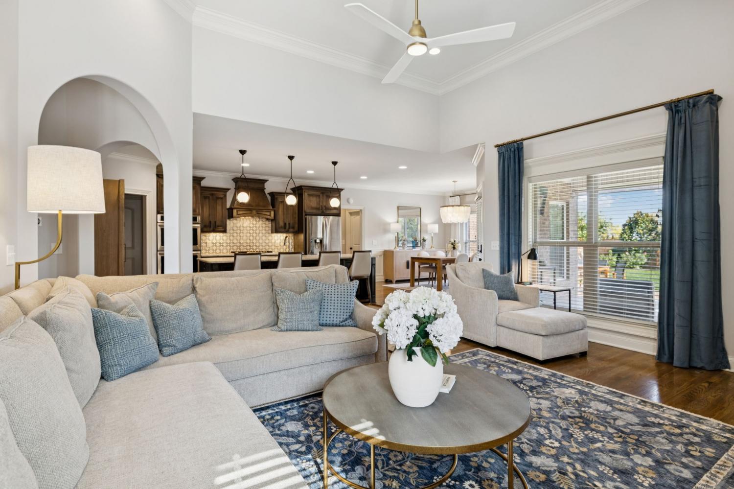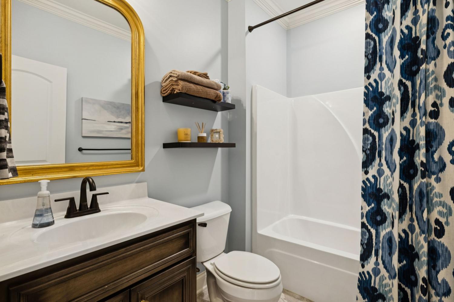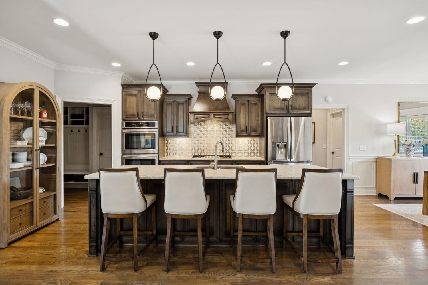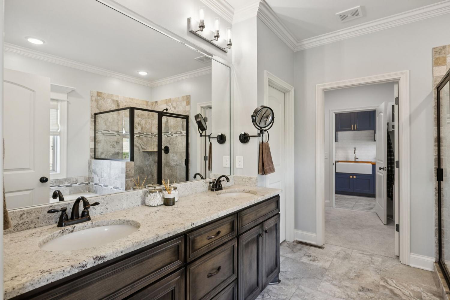 This stunning 4-bedroom, 3-bath Eastland Construction home has been thoughtfully updated and is move-in ready! Step inside to an open and inviting layout featuring a gourmet kitchen with gorgeous granite countertops, double wall ovens, soft-close cabinetry, and a spacious island that’s perfect for gathering and entertaining. The main-level primary suite is a true retreat, complete with a custom-designed walk-in closet and direct access to a beautifully remodeled laundry room with designer wallpaper and built-ins. Upstairs, the oversized bonus room has been transformed into the ultimate mancave and golf simulator lounge/home theater screen, wired for entertainment, Ethernet, and HDMI. The space also includes a work area and mini bar, making it ideal for relaxing, working, or hosting friends. Also upstairs are 2 bedrooms, a full bathroom, an office, and attic access with SO much storage space! Outside, enjoy the covered back porch with sunshades overlooking the beautifully landscaped, fenced-in yard. The 3-car garage features a granite epoxy floor, Trex steps with aluminum railing, added storage racks, and organized tool systems—every detail has been thoughtfully updated. Additional features include an 11-zone irrigation system, ADT alarm with Nest cameras, remote-controlled access to lighting, sprinklers, garage doors, and thermostats, an active radon system, designer wallpaper, new carpet and paint, and custom closets throughout. Located in the desirable Nichols Vale community, this all-brick beauty perfectly balances luxury and livability. Schedule your private showing today to experience the exceptional lifestyle waiting at 435 Whitley Way.