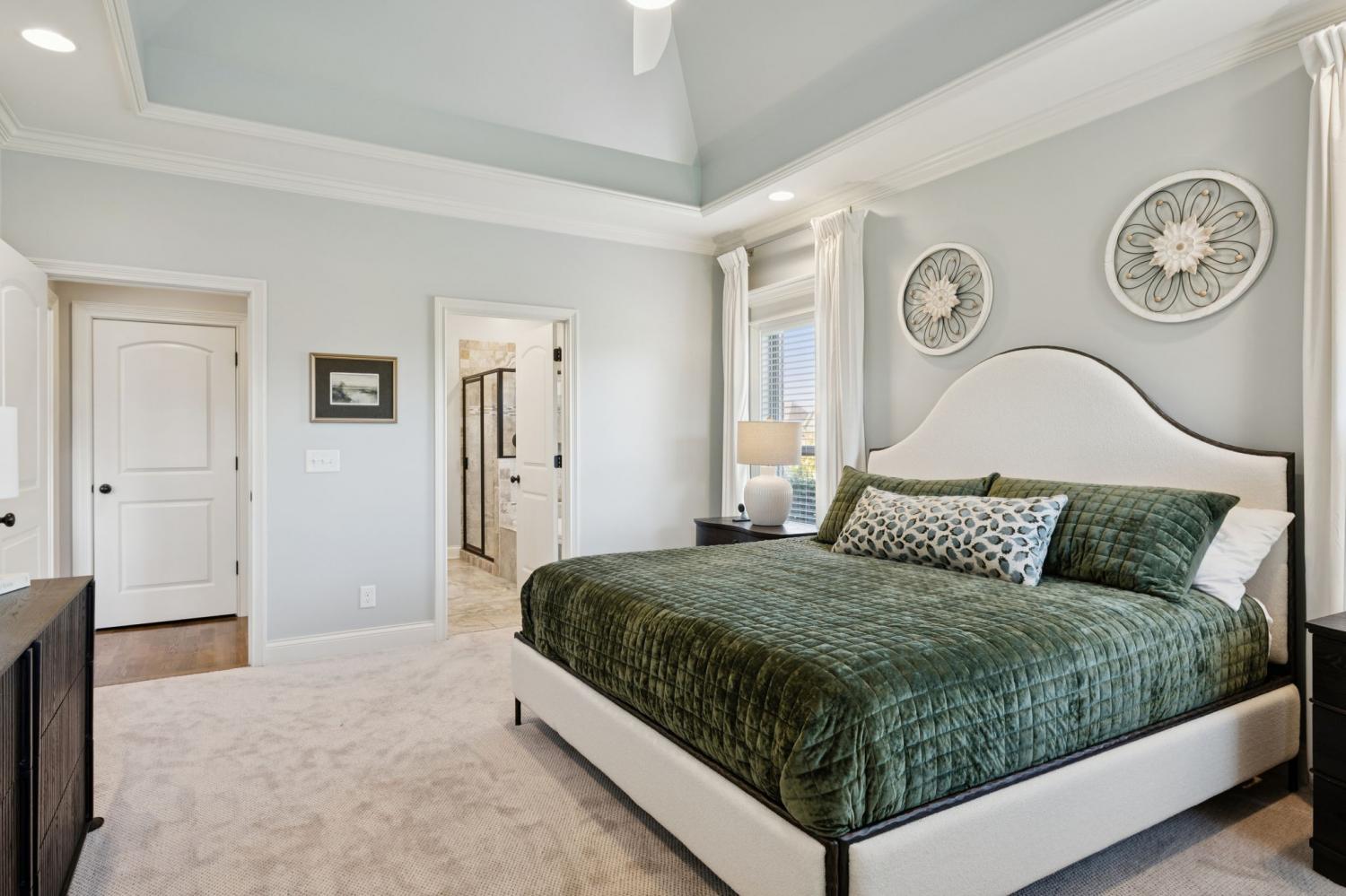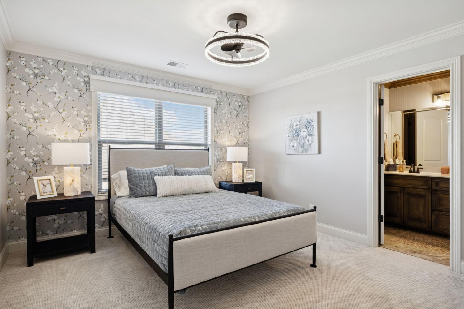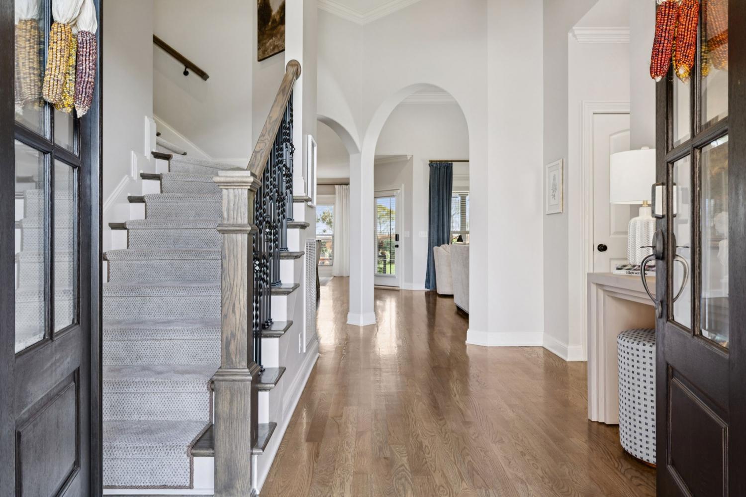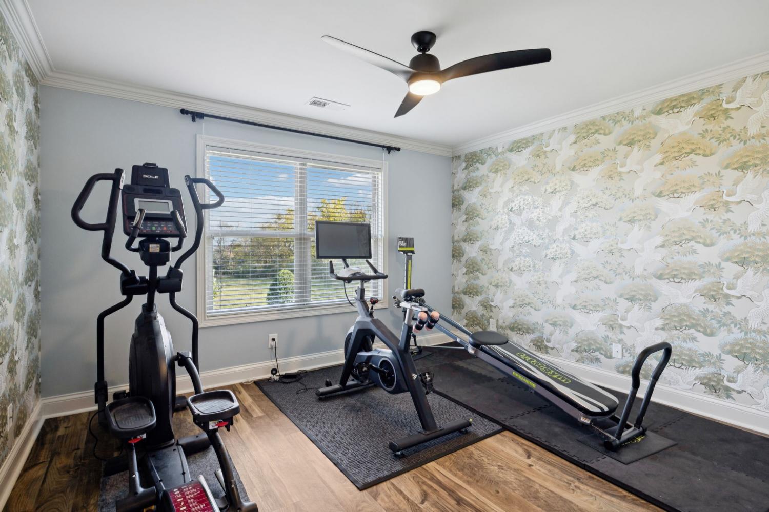 This stunning 4-bedroom, 3-bath Eastland Construction home has been thoughtfully updated and is move-in ready! Step inside to an open and inviting layout featuring a gourmet kitchen with gorgeous granite countertops, double wall ovens, soft-close cabinetry, and a spacious island that’s perfect for gathering and entertaining. The main-level primary suite is a true retreat, complete with a custom-designed walk-in closet and direct access to a beautifully remodeled laundry room with designer wallpaper and built-ins. Upstairs, the oversized bonus room has been transformed into the ultimate mancave and golf simulator lounge/home theater screen, wired for entertainment, Ethernet, and HDMI. The space also includes a work area and mini bar, making it ideal for relaxing, working, or hosting friends. Also upstairs are 2 bedrooms, a full bathroom, an office, and attic access with SO much storage space! Outside, enjoy the covered back porch with sunshades overlooking the beautifully landscaped, fenced-in yard. The 3-car garage features a granite epoxy floor, Trex steps with aluminum railing, added storage racks, and organized tool systems—every detail has been thoughtfully updated. Additional features include an 11-zone irrigation system, ADT alarm with Nest cameras, remote-controlled access to lighting, sprinklers, garage doors, and thermostats, an active radon system, designer wallpaper, new carpet and paint, and custom closets throughout. Located in the desirable Nichols Vale community, this all-brick beauty perfectly balances luxury and livability. Schedule your private showing today to experience the exceptional lifestyle waiting at 435 Whitley Way.