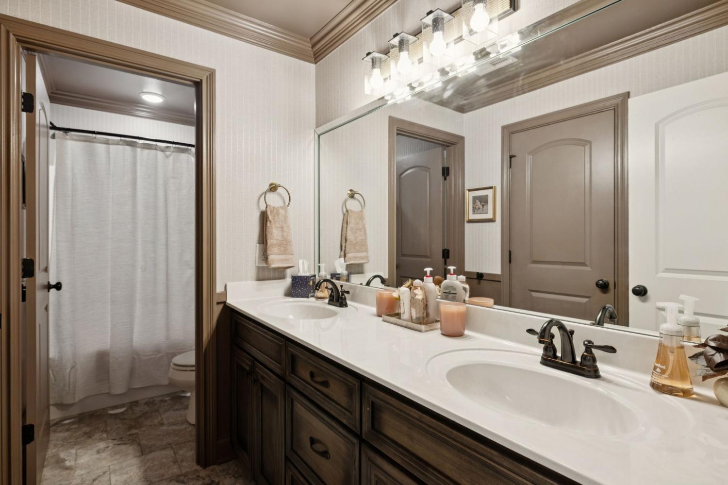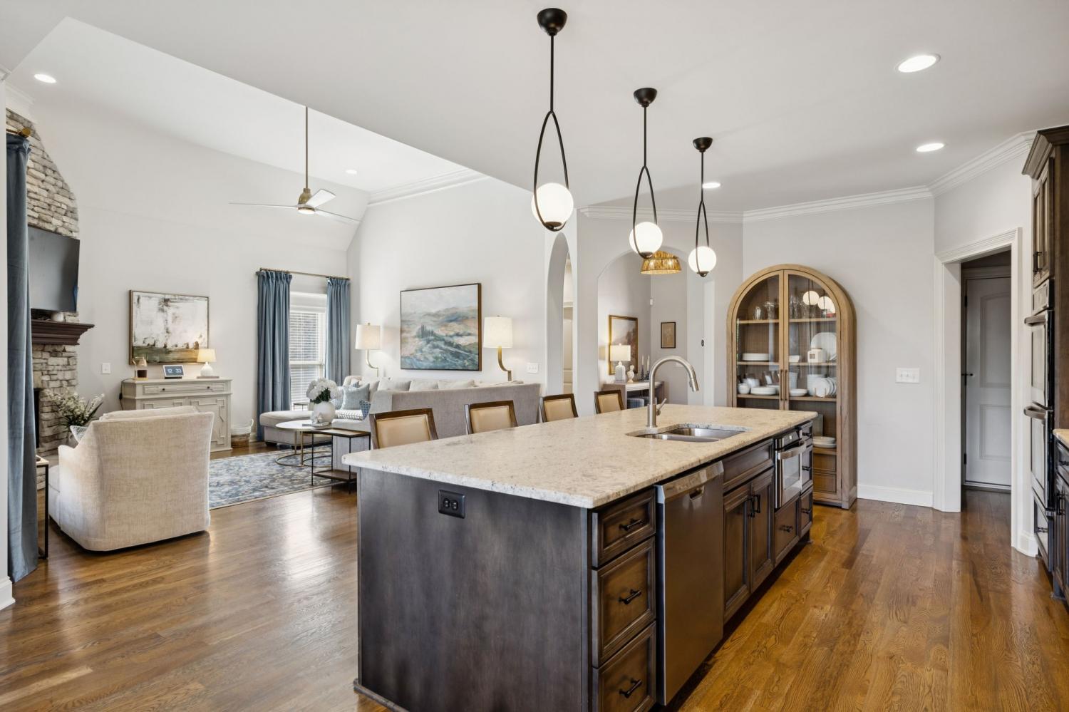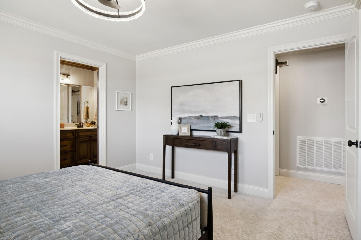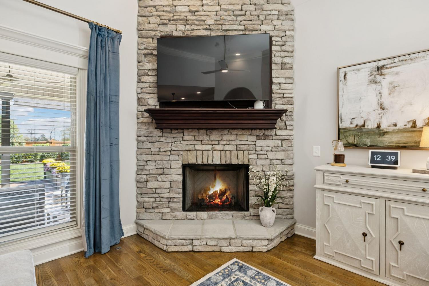 This stunning 4-bedroom, 3-bath Eastland Construction home has been thoughtfully updated and is move-in ready! Step inside to an open and inviting layout featuring a gourmet kitchen with gorgeous granite countertops, double wall ovens, soft-close cabinetry, and a spacious island that’s perfect for gathering and entertaining. The main-level primary suite is a true retreat, complete with a custom-designed walk-in closet and direct access to a beautifully remodeled laundry room with designer wallpaper and built-ins. Upstairs, the oversized bonus room has been transformed into the ultimate mancave and golf simulator lounge/home theater screen, wired for entertainment, Ethernet, and HDMI. The space also includes a work area and mini bar, making it ideal for relaxing, working, or hosting friends. Also upstairs are 2 bedrooms, a full bathroom, an office, and attic access with SO much storage space! Outside, enjoy the covered back porch with sunshades overlooking the beautifully landscaped, fenced-in yard. The 3-car garage features a granite epoxy floor, Trex steps with aluminum railing, added storage racks, and organized tool systems—every detail has been thoughtfully updated. Additional features include an 11-zone irrigation system, ADT alarm with Nest cameras, remote-controlled access to lighting, sprinklers, garage doors, and thermostats, an active radon system, designer wallpaper, new carpet and paint, and custom closets throughout. Located in the desirable Nichols Vale community, this all-brick beauty perfectly balances luxury and livability. Schedule your private showing today to experience the exceptional lifestyle waiting at 435 Whitley Way.