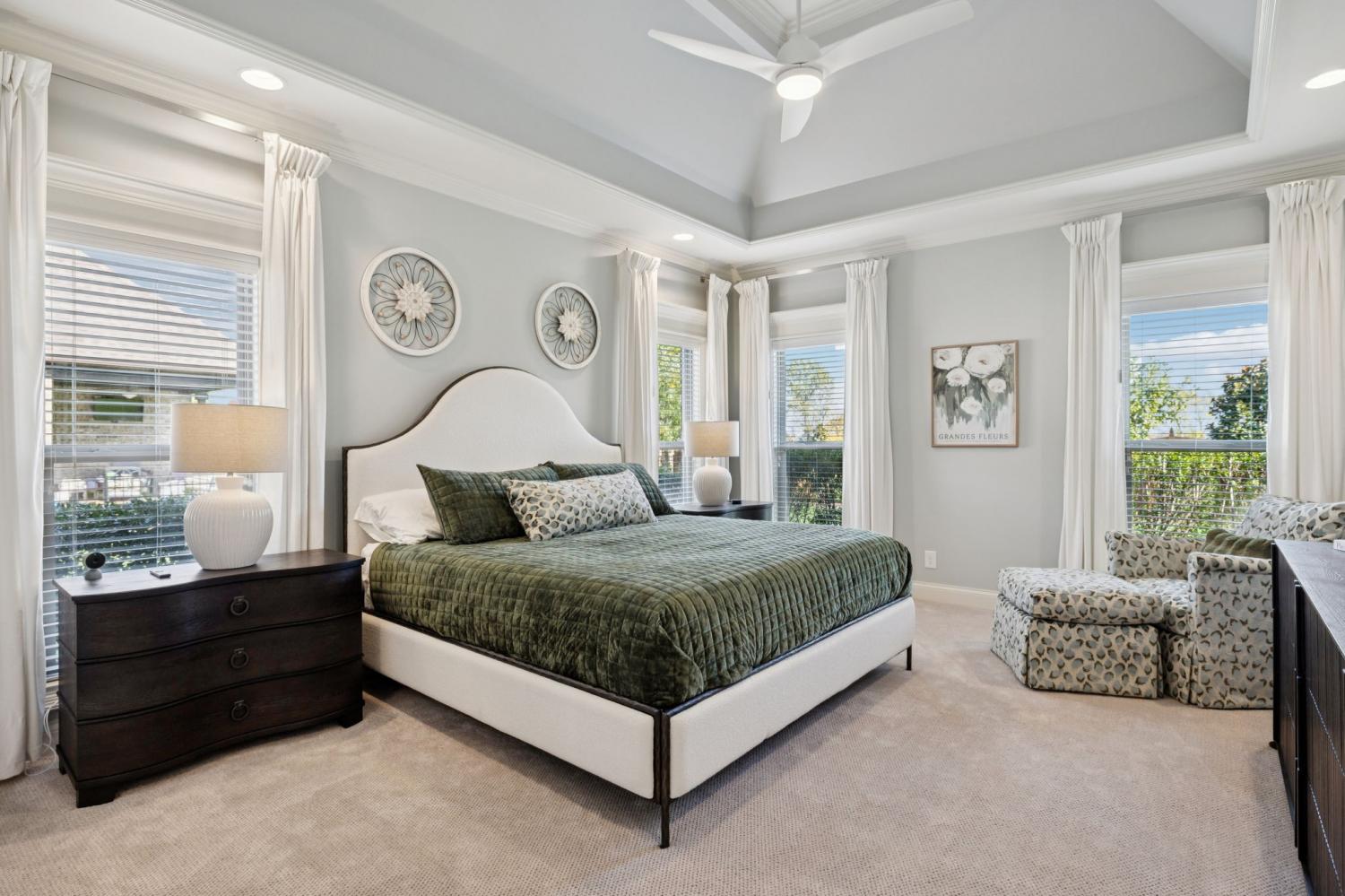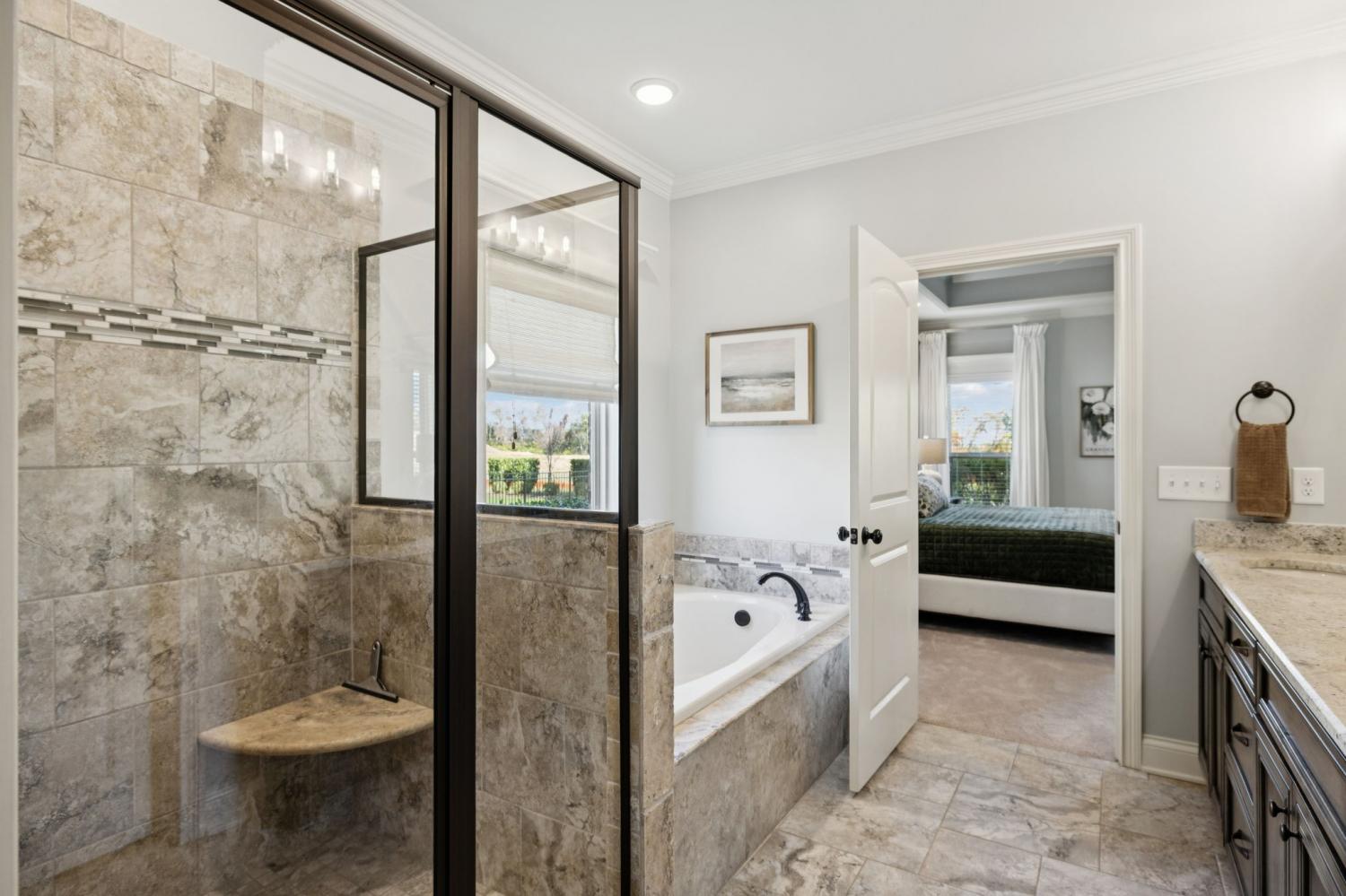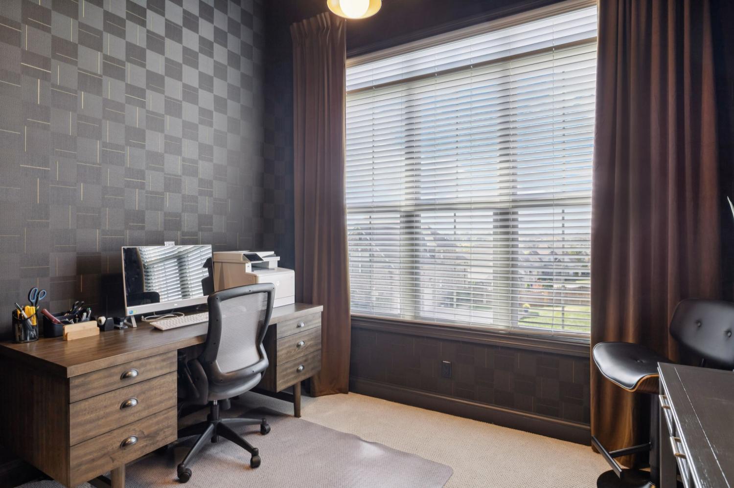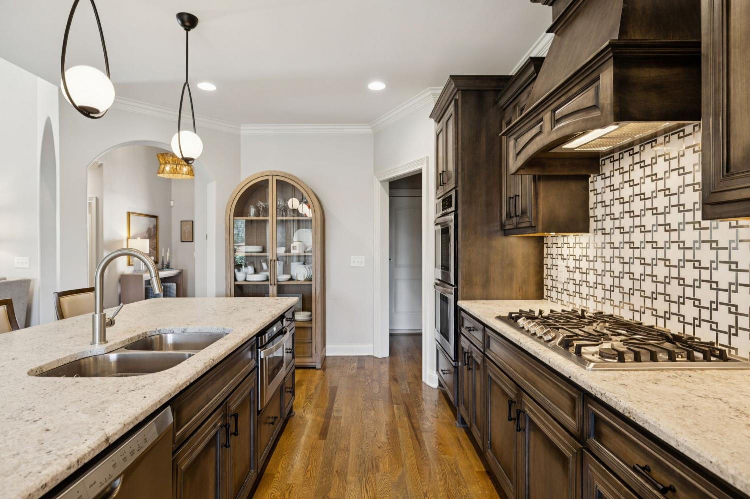 This stunning 4-bedroom, 3-bath Eastland Construction home has been thoughtfully updated and is move-in ready! Step inside to an open and inviting layout featuring a gourmet kitchen with gorgeous granite countertops, double wall ovens, soft-close cabinetry, and a spacious island that’s perfect for gathering and entertaining. The main-level primary suite is a true retreat, complete with a custom-designed walk-in closet and direct access to a beautifully remodeled laundry room with designer wallpaper and built-ins. Upstairs, the oversized bonus room has been transformed into the ultimate mancave and golf simulator lounge/home theater screen, wired for entertainment, Ethernet, and HDMI. The space also includes a work area and mini bar, making it ideal for relaxing, working, or hosting friends. Also upstairs are 2 bedrooms, a full bathroom, an office, and attic access with SO much storage space! Outside, enjoy the covered back porch with sunshades overlooking the beautifully landscaped, fenced-in yard. The 3-car garage features a granite epoxy floor, Trex steps with aluminum railing, added storage racks, and organized tool systems—every detail has been thoughtfully updated. Additional features include an 11-zone irrigation system, ADT alarm with Nest cameras, remote-controlled access to lighting, sprinklers, garage doors, and thermostats, an active radon system, designer wallpaper, new carpet and paint, and custom closets throughout. Located in the desirable Nichols Vale community, this all-brick beauty perfectly balances luxury and livability. Schedule your private showing today to experience the exceptional lifestyle waiting at 435 Whitley Way.