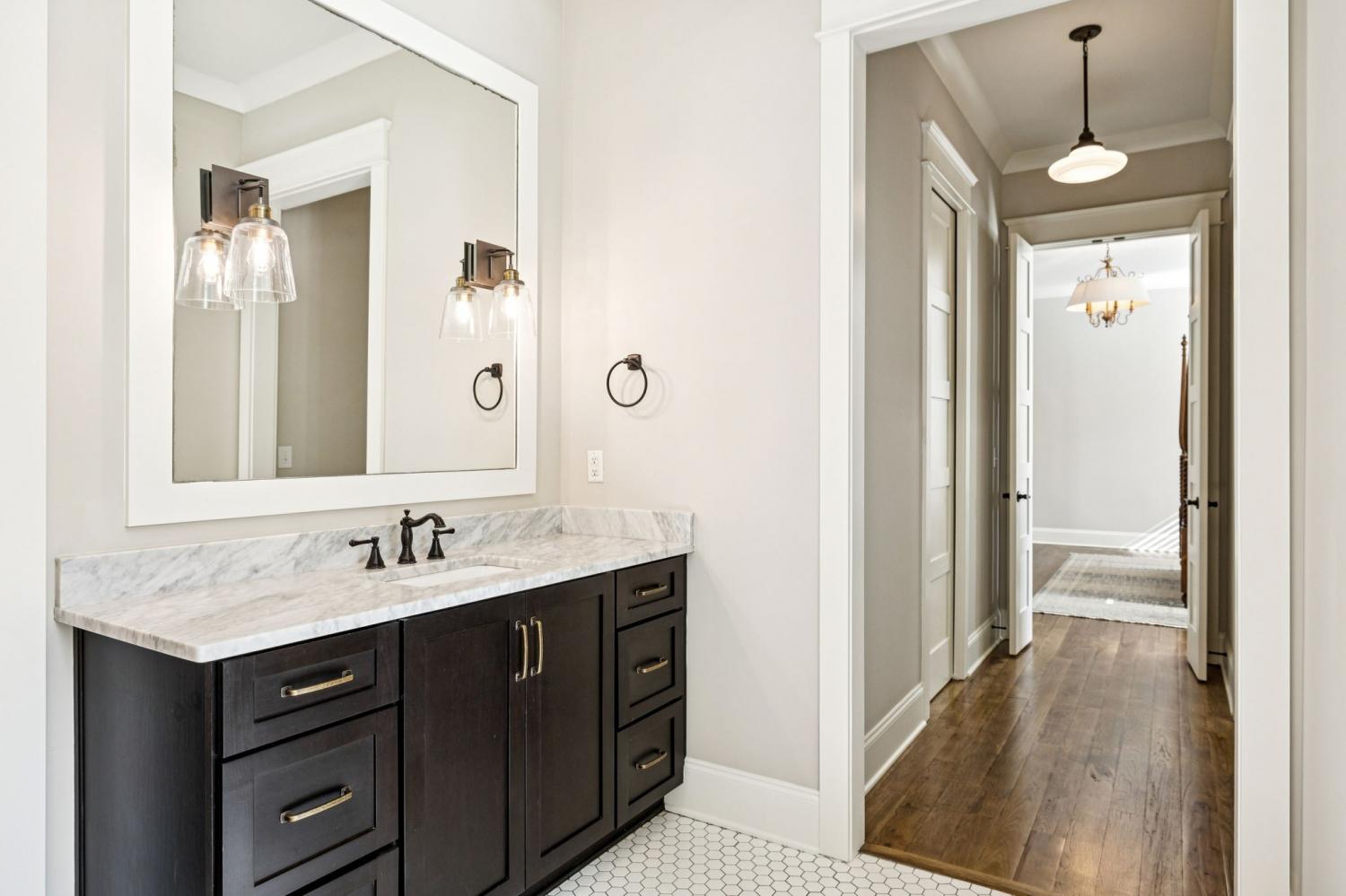 Boutique luxury meets everyday ease just beyond the Brentwood line in Gilchrist South—a small, custom-home enclave prized for privacy, presence, and convenience. Designed and built by Ridgemont Homes—an award-winning, high-touch custom builder—this modern farmhouse pairs timeless materials with thoughtful engineering to live beautifully today and age gracefully tomorrow. Inside, character takes the lead: 4" kiln-dried hickory floors sourced from an Amish farm in Etheridge, TN; reclaimed Nolensville cabin wood reimagined as the powder room wash stand, kitchen-island posts, and a statement fireplace mantle. The plan flows for entertaining and daily life alike—formal dining, inspiring great room, a hearth room with a see-through fireplace to a handsome study/memorabilia room, a generous basement rec room, plus a large hobby/studio and ~330 SF of basement storage. Comfort and confidence are built-in: a private irrigation well (goodbye, summer water bills), whole-home surge protection, a humidifier, and comprehensive water filtration/conditioning. Out front, wave to neighbors from the 36’ x 7’ covered porch; out back, unwind on the covered deck or step down to your 33’ x 16’ in-ground pool with automatic locking cover—made for sunny Tennessee weekends. Location seals the case. You’re minutes to historic Nolensville, Brentwood, and Franklin—and zoned to acclaimed Williamson County schools, including Sunset Elementary & Middle and Nolensville High. Even better, Nolensville’s next chapter is unfolding nearby: the new Nolensville Town Square mixed-use district, a Publix-anchored Village Green opening mid-November 2025, and a planned Kroger-anchored mixed-use project—all adding everyday convenience and long-term upside to this address. Ridgemont Homes’ reputation for elevated craftsmanship and design excellence shows at every turn—this is dignified living in an exceptional boutique community.