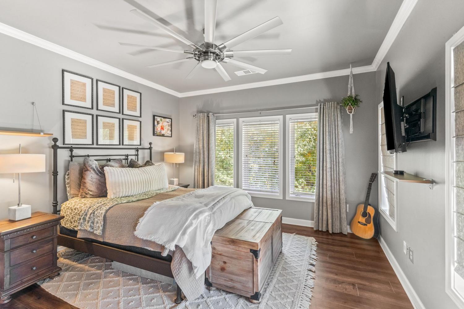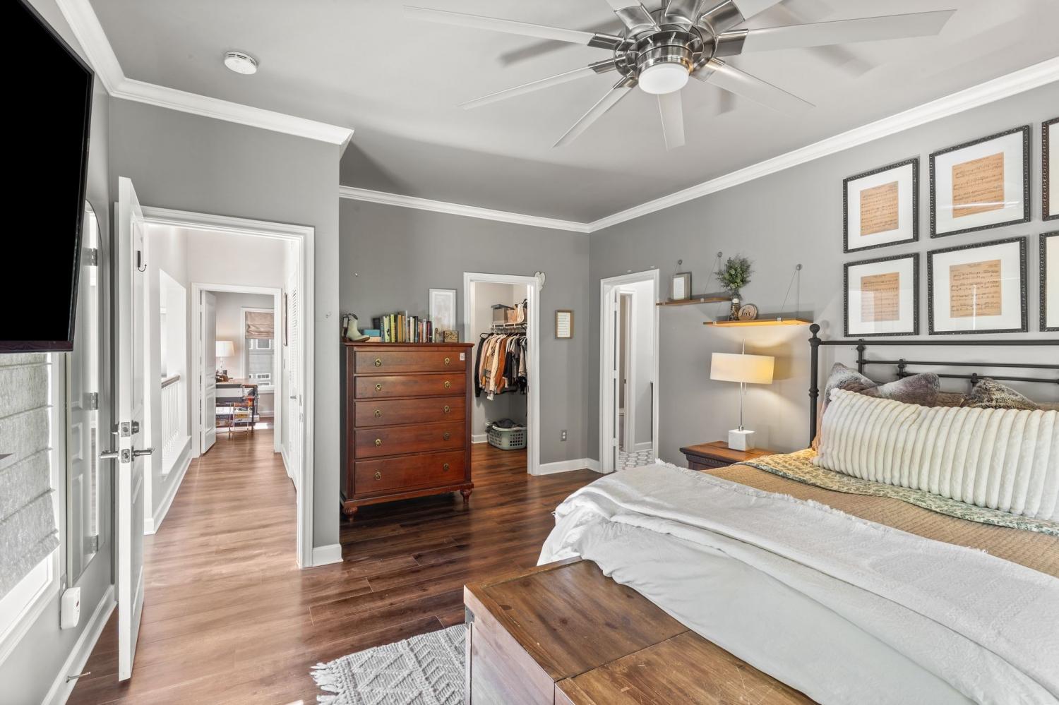 Modern contemporary 3 Bedroom Condo in desirable area only minutes to downtown Nashville. Custom renovated Kitchen with sleek finishes including beautiful glass tile backsplash , quartz countertops, and glass cabinet panels perfect for cooking and entertaining. The open modern floor plan flows with gorgeous expensive laminate floors throughout the home. Each bedroom includes its own private updated bath with high end tile and finishes, offering comfort and privacy for everyone. Enjoy your morning coffee or evening unwind on the balcony or the covered porch. the amenities include a fabulous workout from with a kitchen and bath. Enjoy resort style living with an expansive oversized pool surrounded by plenty of lounging space. All bedrooms have walk-in closet . Fabulous oversize, two car garage in this end unit. One of the bedrooms is currently a studio seller will change the sound booth back to a closet.