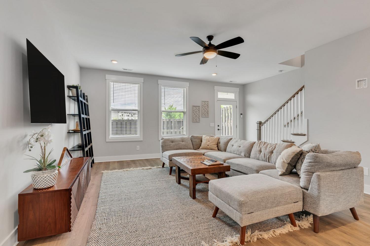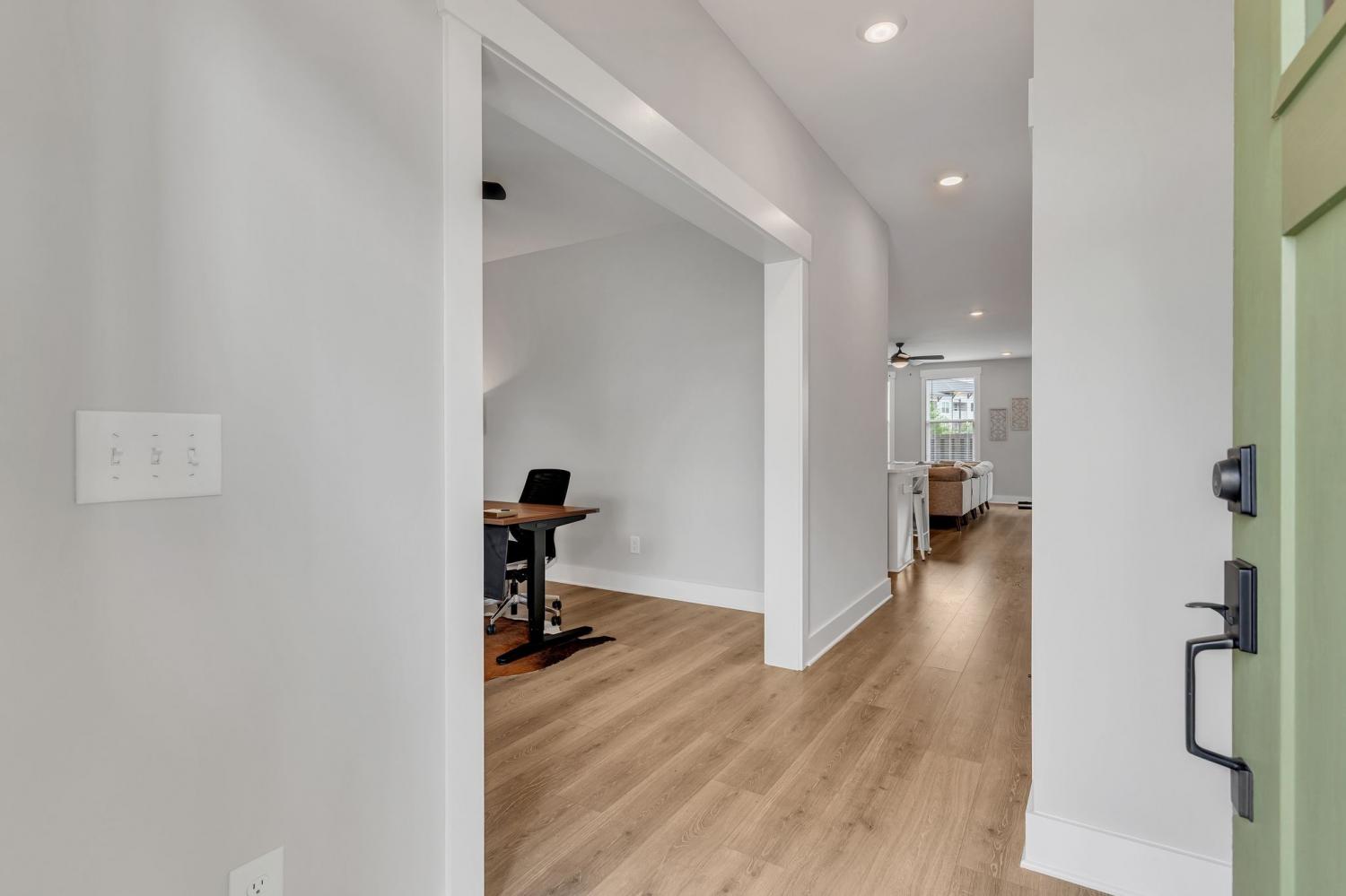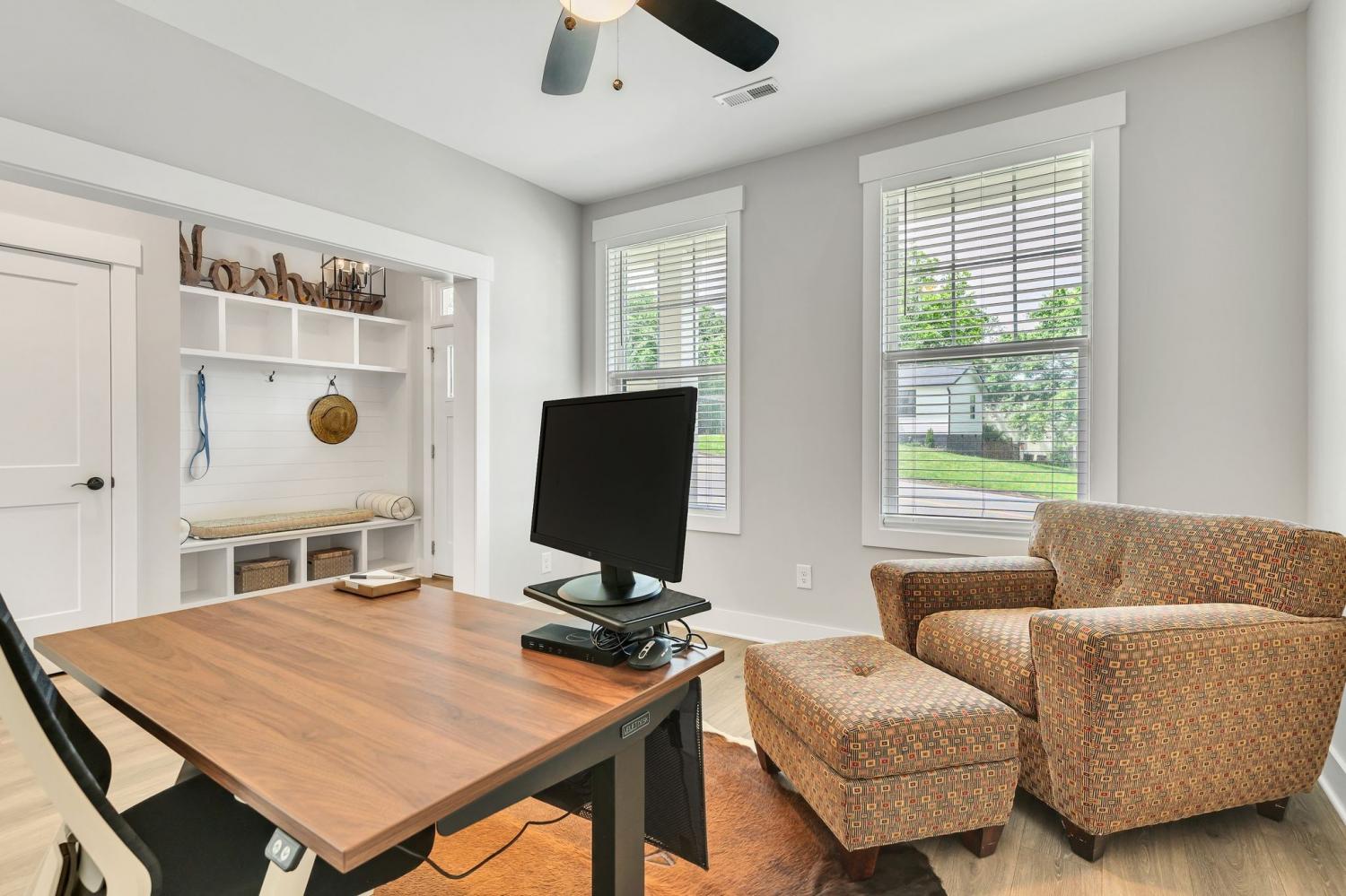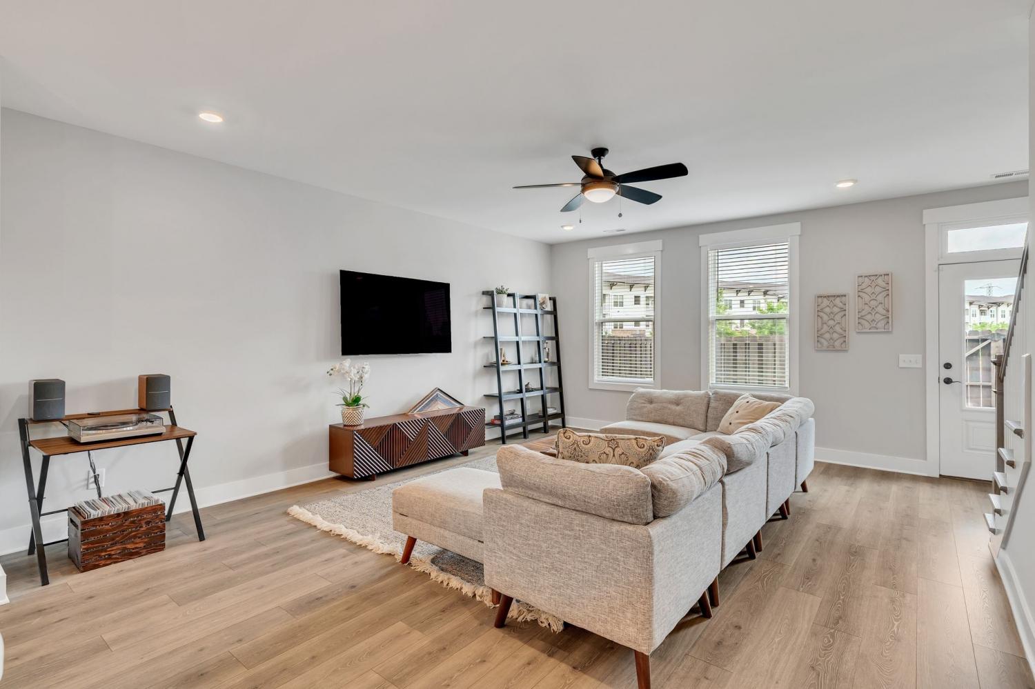 Get ready to fall in love with this stylish, move-in-ready home that checks all the boxes. From the open floor plan and chic finishes to the fabulous natural light, incredible storage and thoughtful design, this one is made for real life and good times. The kitchen is a total showstopper - bright white cabinetry, tons of quartz countertops, and a chevron marble backsplash that adds just the right touch of wow. The oversized island is perfect for gathering with friends, accented with sleek pendant lighting. Plus, the walk-in pantry is ready to handle Costco runs with ease. The living room? HUGE. Think game days, movie nights, and space to relax. Work from home? You’ll love the dedicated office (or use it as a 3rd bedroom if you need flexibility). The foyer niche keeps backpacks, keys and daily stuff in check. Durable, neutral LVP flooring runs throughout the main level—aka style without the stress. Upstairs, both bedrooms have en-suites and fabulous closets. The primary suite spoils you with TWO well-designed closets, a spa-like bath with a large tiled shower, dual sinks, and a linen closet. The secondary suite has its own marble-accented bath with tub/shower combo. The laundry room is conveniently located upstairs too. Storage lovers - don’t miss the floored attic space. And yes, the whole house just got a fresh coat of paint, so it feels new! Outside, enjoy a covered front porch and a fenced-in backyard (HOA maintains the front and rear lawns for you). Parking? No problem - your private driveway fits two cars plus guest spots in front and back. The location seals the deal: minutes to Germantown fun, East Nashville restaurants and nightlife, Nissan Stadium, Bridgestone, Broadway, and the future Oracle campus. This 2021 build gives you a true lock-and-leave lifestyle with all the trendy hot spots just minutes away. Stylish, smart, and seriously move-in ready—don’t miss it!