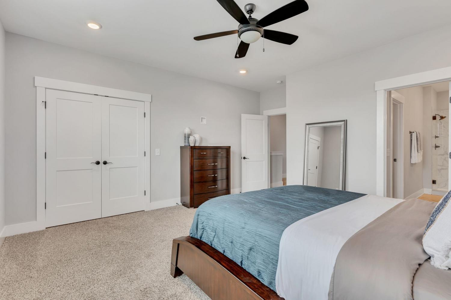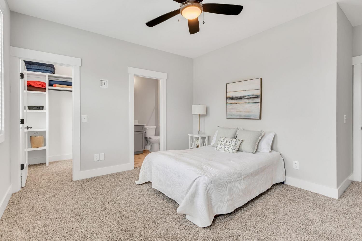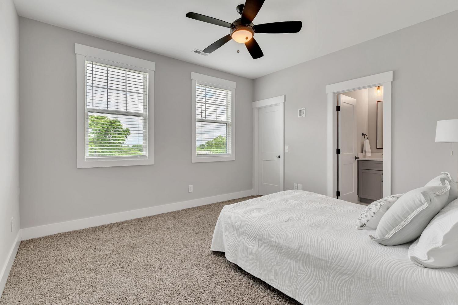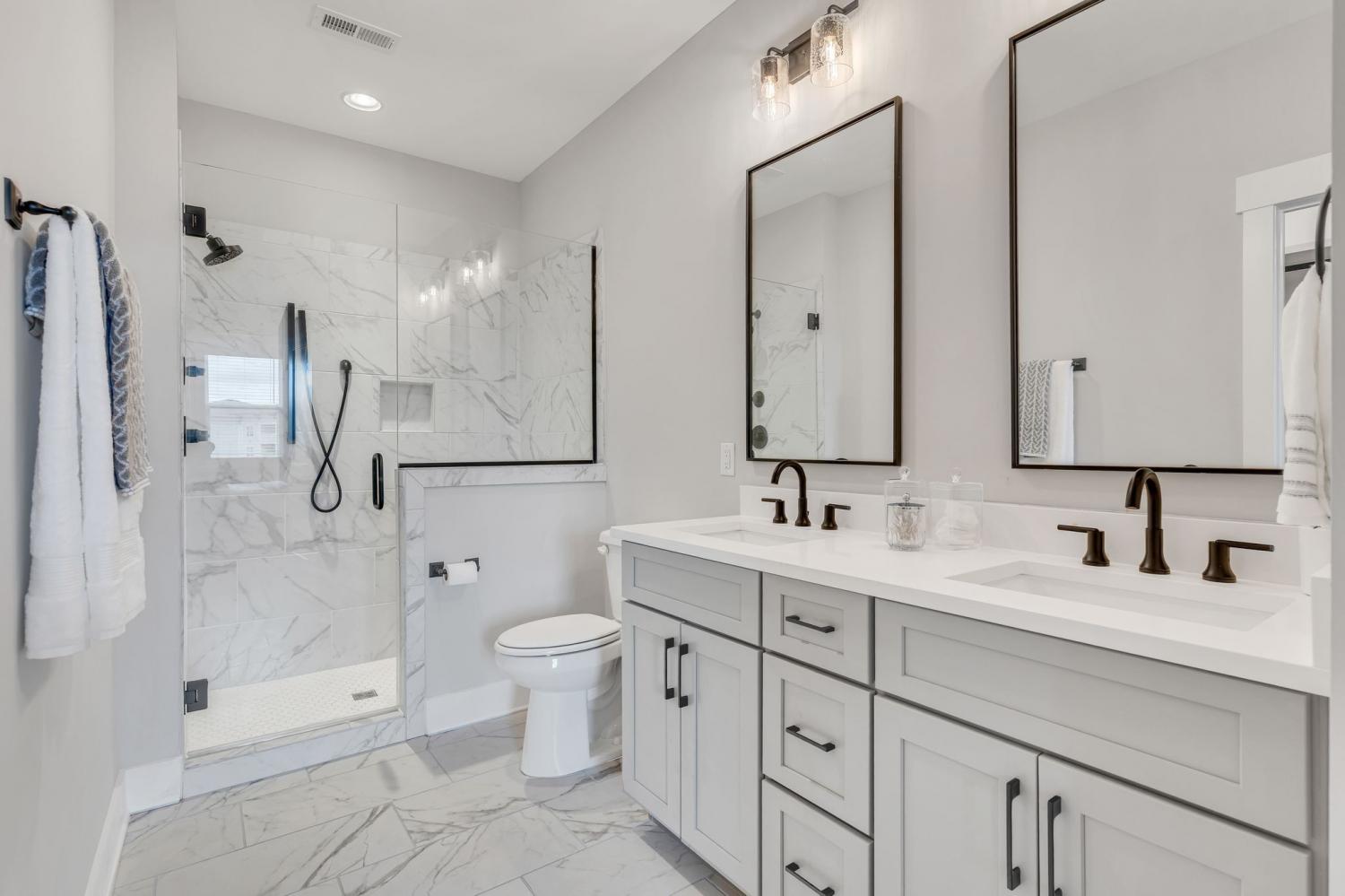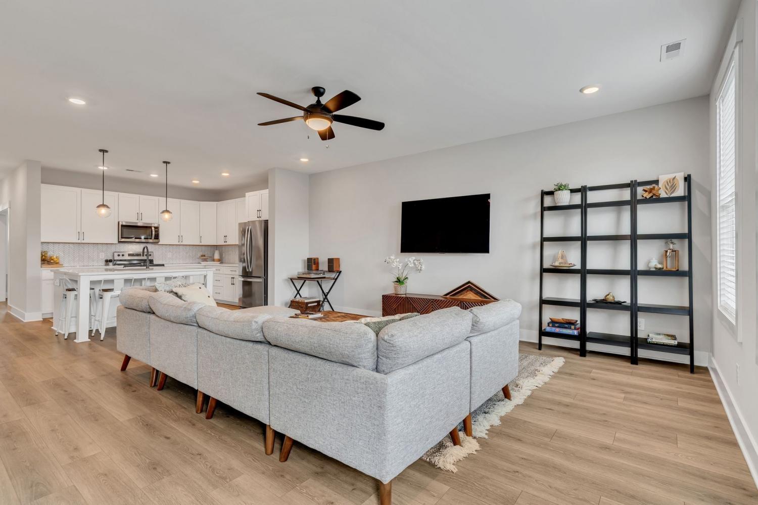 Get ready to fall in love with this stylish, move-in-ready home that checks all the boxes. From the open floor plan and chic finishes to the fabulous natural light, incredible storage and thoughtful design, this one is made for real life and good times. The kitchen is a total showstopper - bright white cabinetry, tons of quartz countertops, and a chevron marble backsplash that adds just the right touch of wow. The oversized island is perfect for gathering with friends, accented with sleek pendant lighting. Plus, the walk-in pantry is ready to handle Costco runs with ease. The living room? HUGE. Think game days, movie nights, and space to relax. Work from home? You’ll love the dedicated office (or use it as a 3rd bedroom if you need flexibility). The foyer niche keeps backpacks, keys and daily stuff in check. Durable, neutral LVP flooring runs throughout the main level—aka style without the stress. Upstairs, both bedrooms have en-suites and fabulous closets. The primary suite spoils you with TWO well-designed closets, a spa-like bath with a large tiled shower, dual sinks, and a linen closet. The secondary suite has its own marble-accented bath with tub/shower combo. The laundry room is conveniently located upstairs too. Storage lovers - don’t miss the floored attic space. And yes, the whole house just got a fresh coat of paint, so it feels new! Outside, enjoy a covered front porch and a fenced-in backyard (HOA maintains the front and rear lawns for you). Parking? No problem - your private driveway fits two cars plus guest spots in front and back. The location seals the deal: minutes to Germantown fun, East Nashville restaurants and nightlife, Nissan Stadium, Bridgestone, Broadway, and the future Oracle campus. This 2021 build gives you a true lock-and-leave lifestyle with all the trendy hot spots just minutes away. Stylish, smart, and seriously move-in ready—don’t miss it!